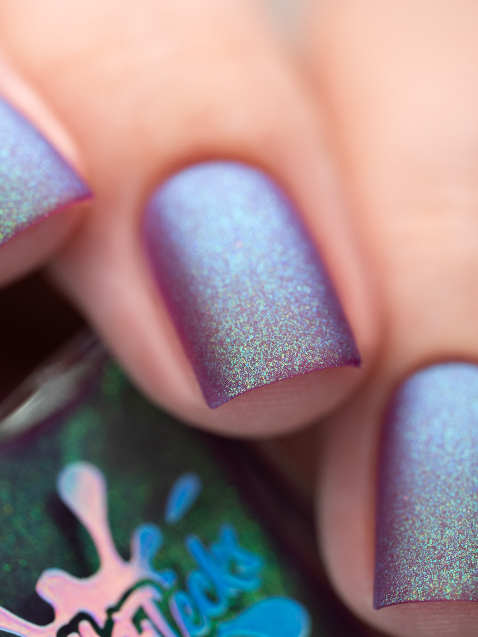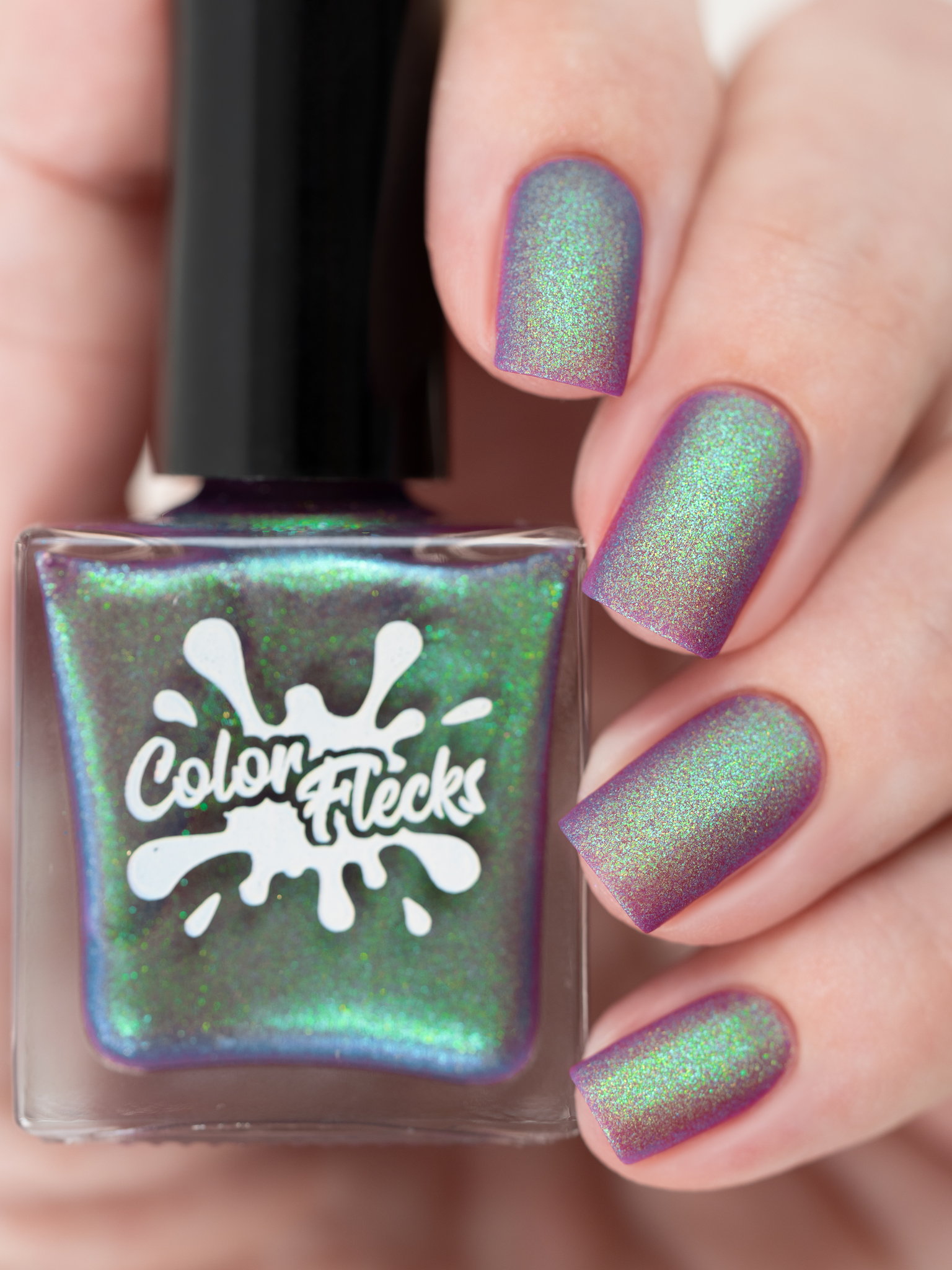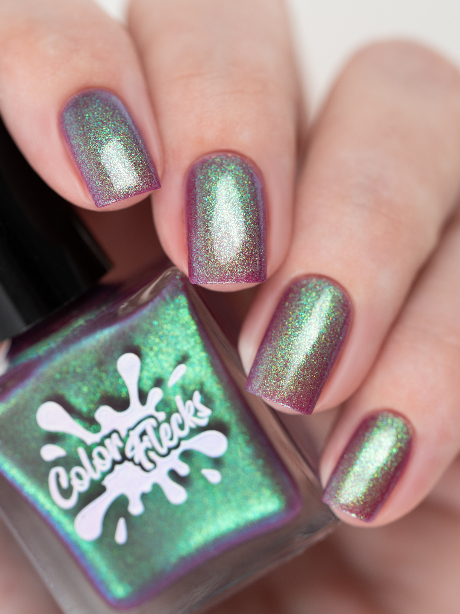 Матовая фиолетово-бордовая база с крупным зелёным шиммером