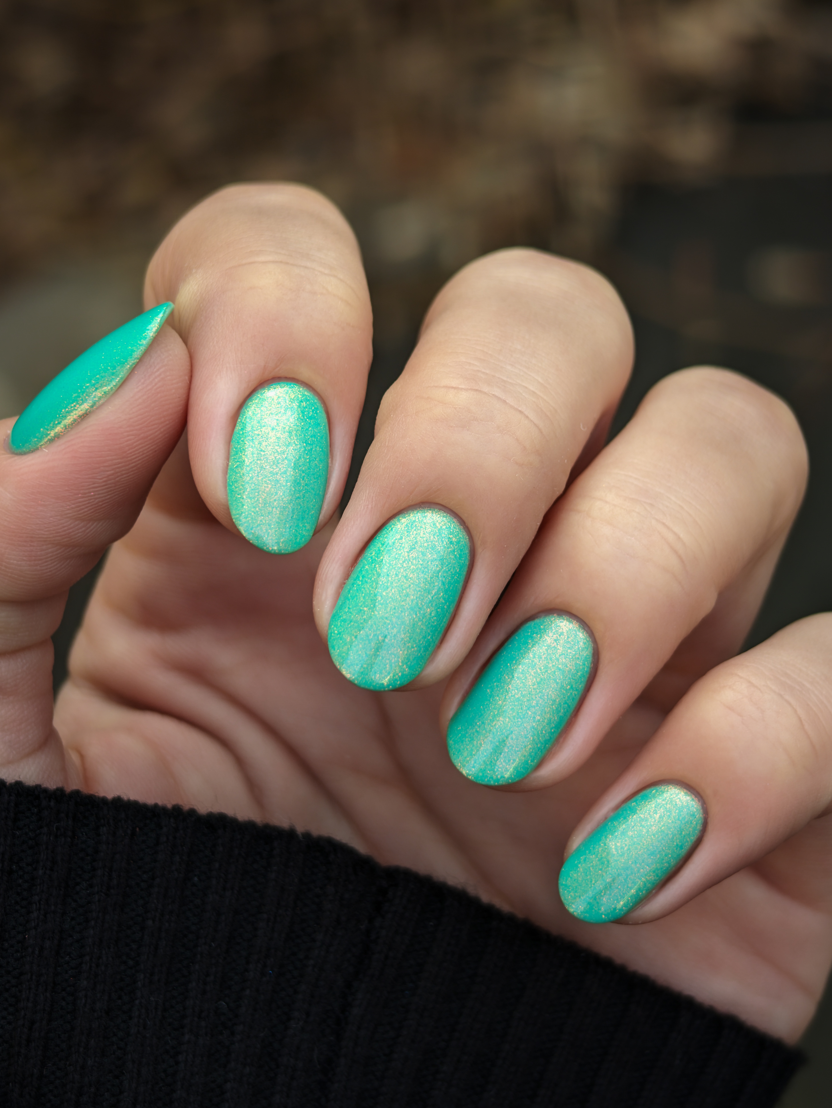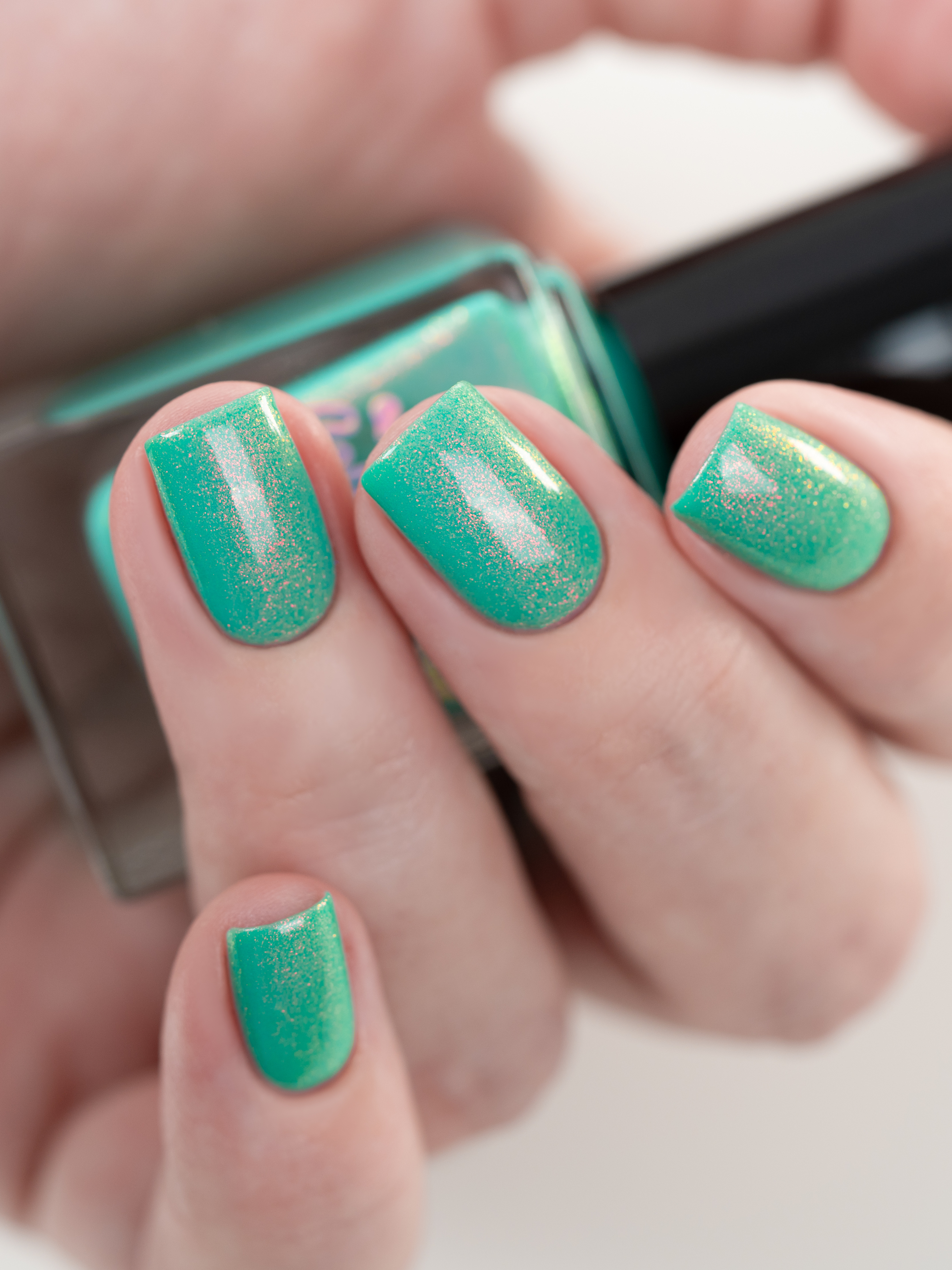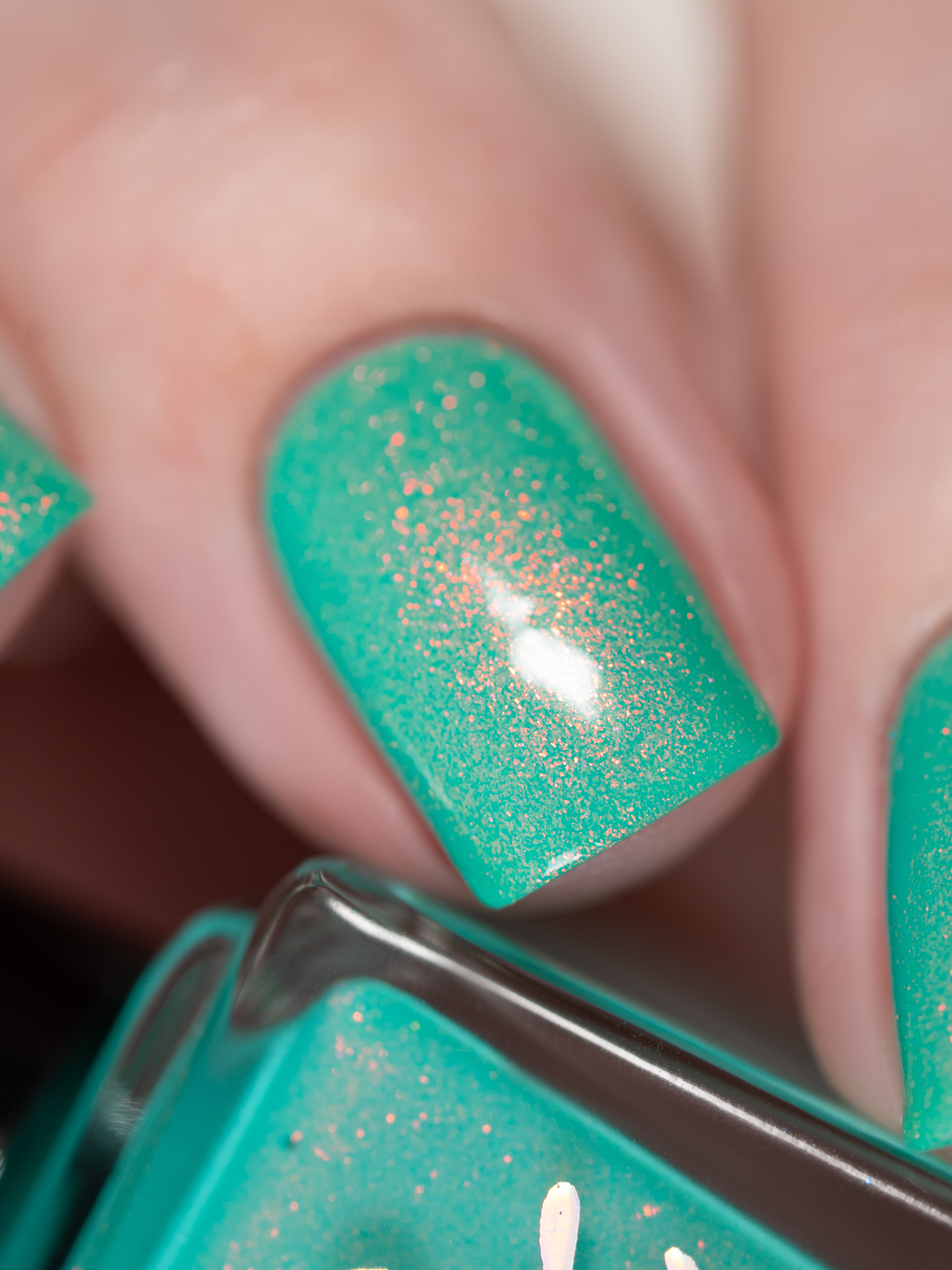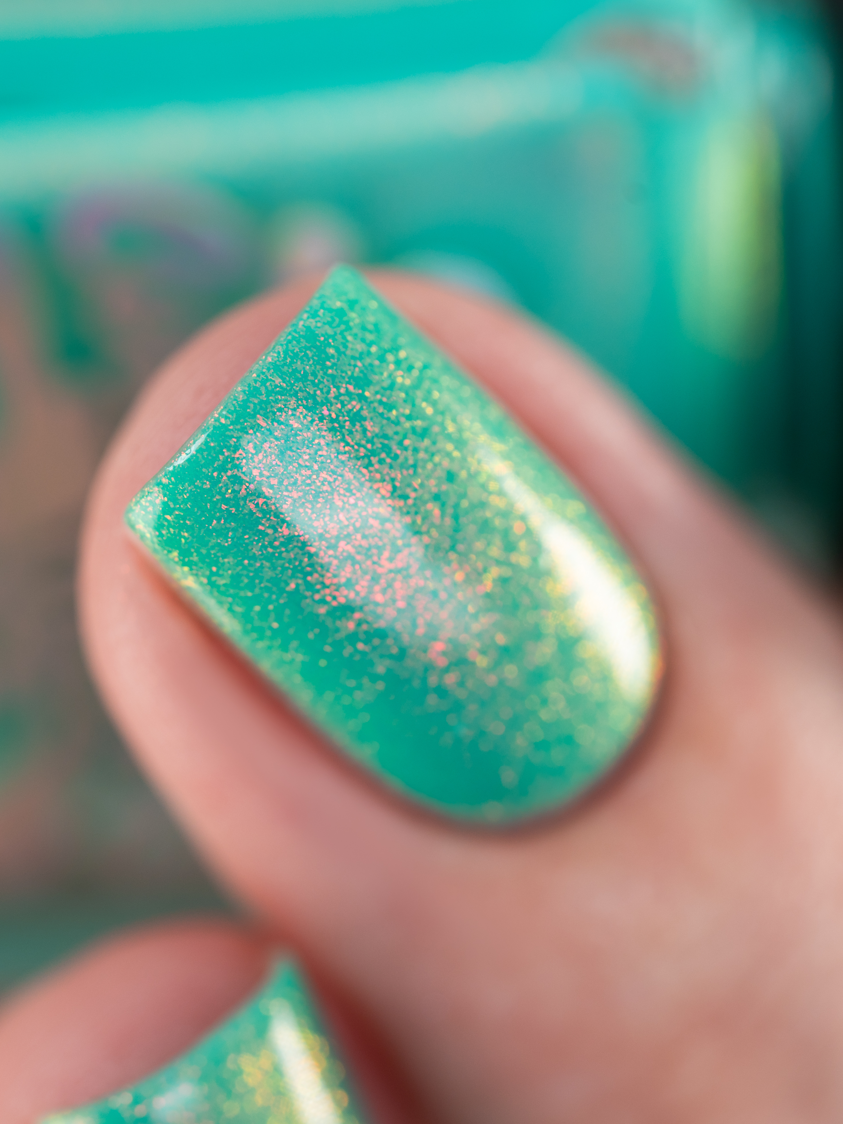 Бирюзовое желе со светящимся в темноте зелёным пигментом и ярким красно-оранжевым шиммером
