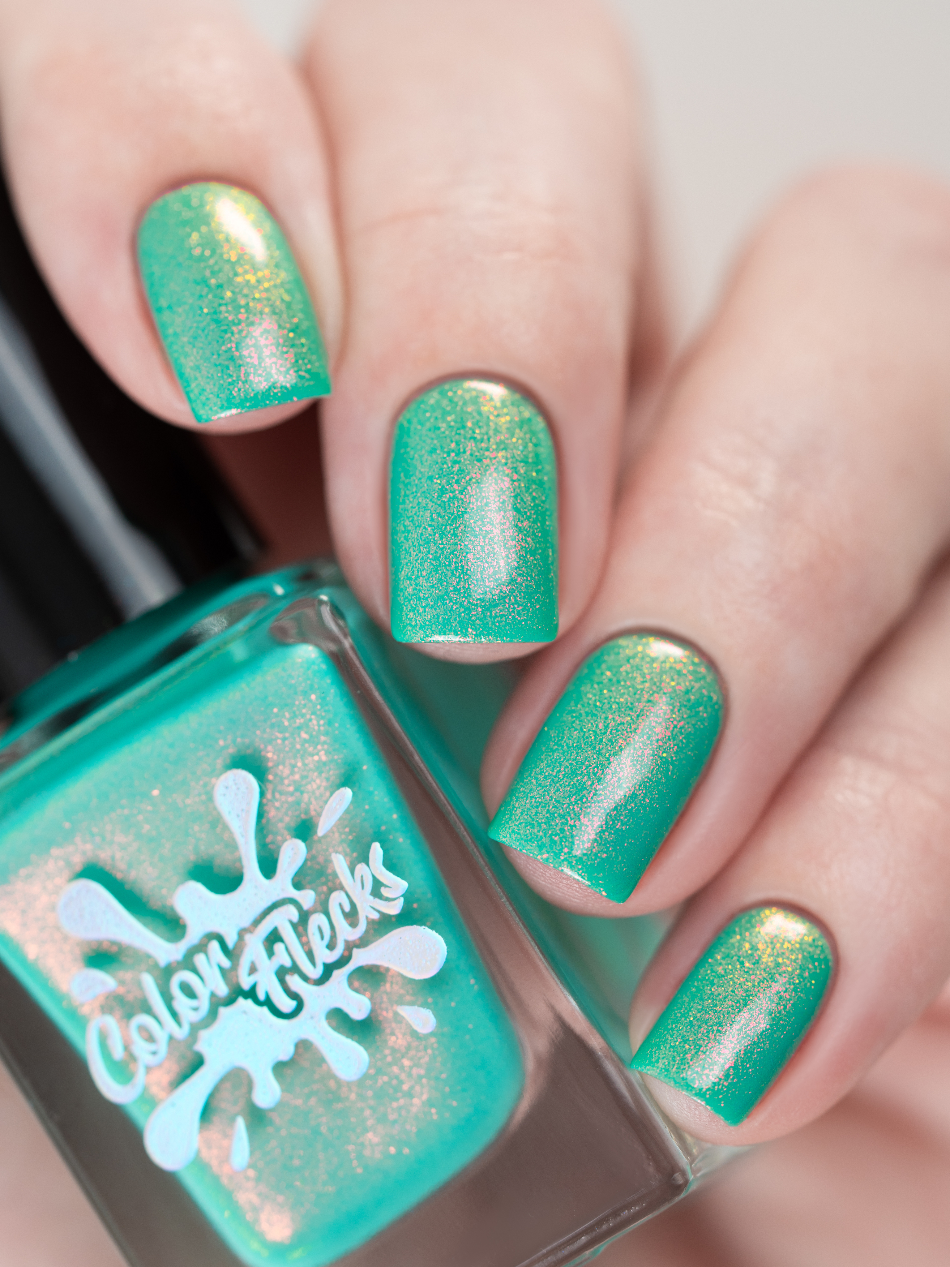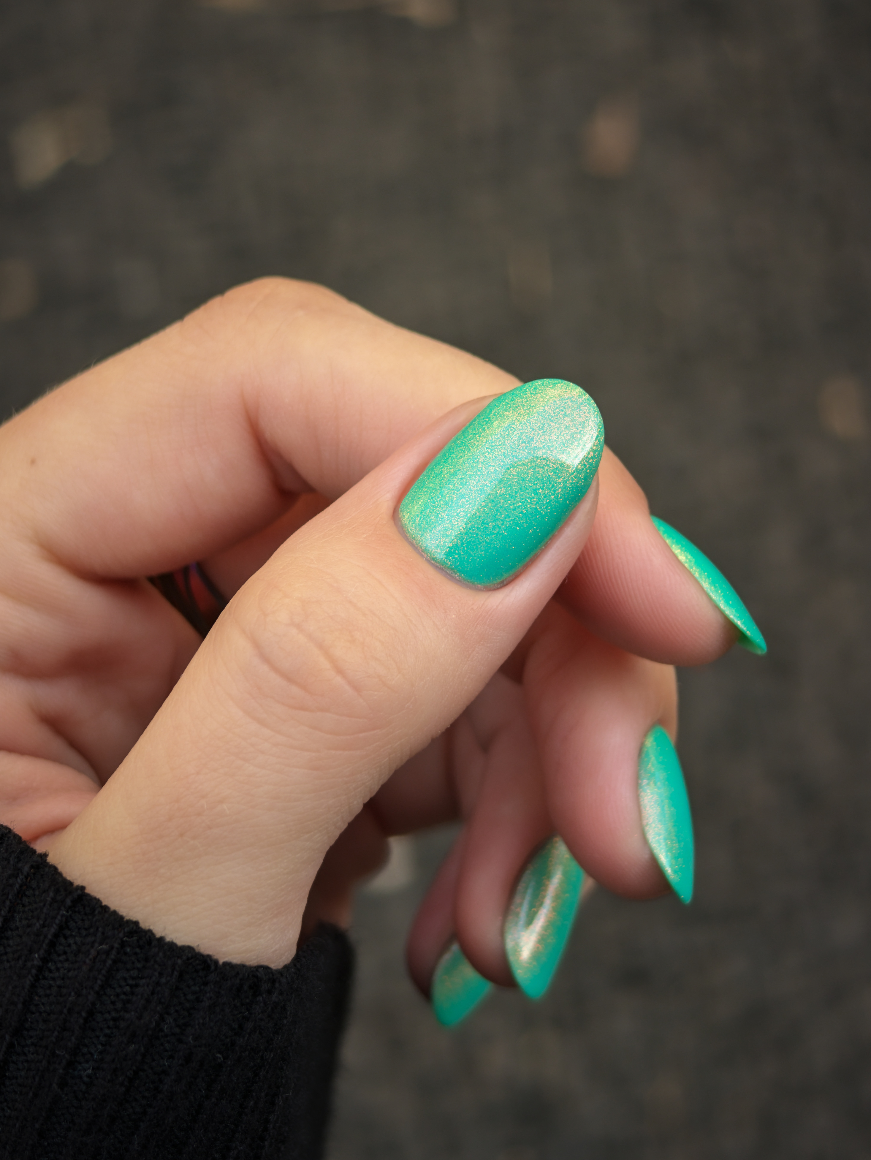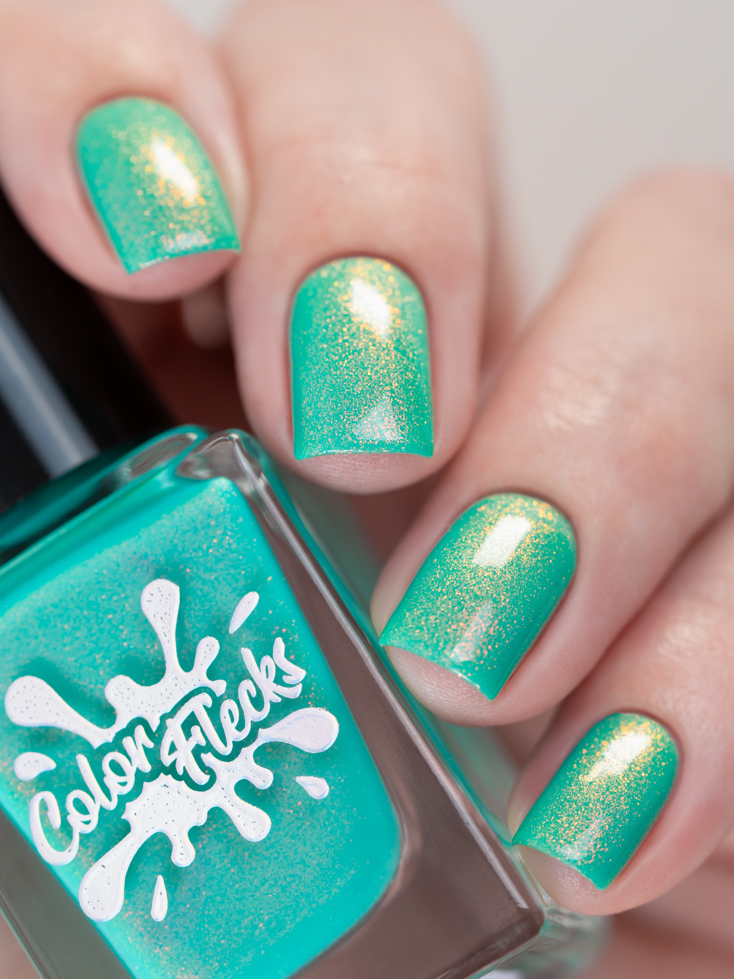 Бирюзовое желе со светящимся в темноте зелёным пигментом и ярким красно-оранжевым шиммером