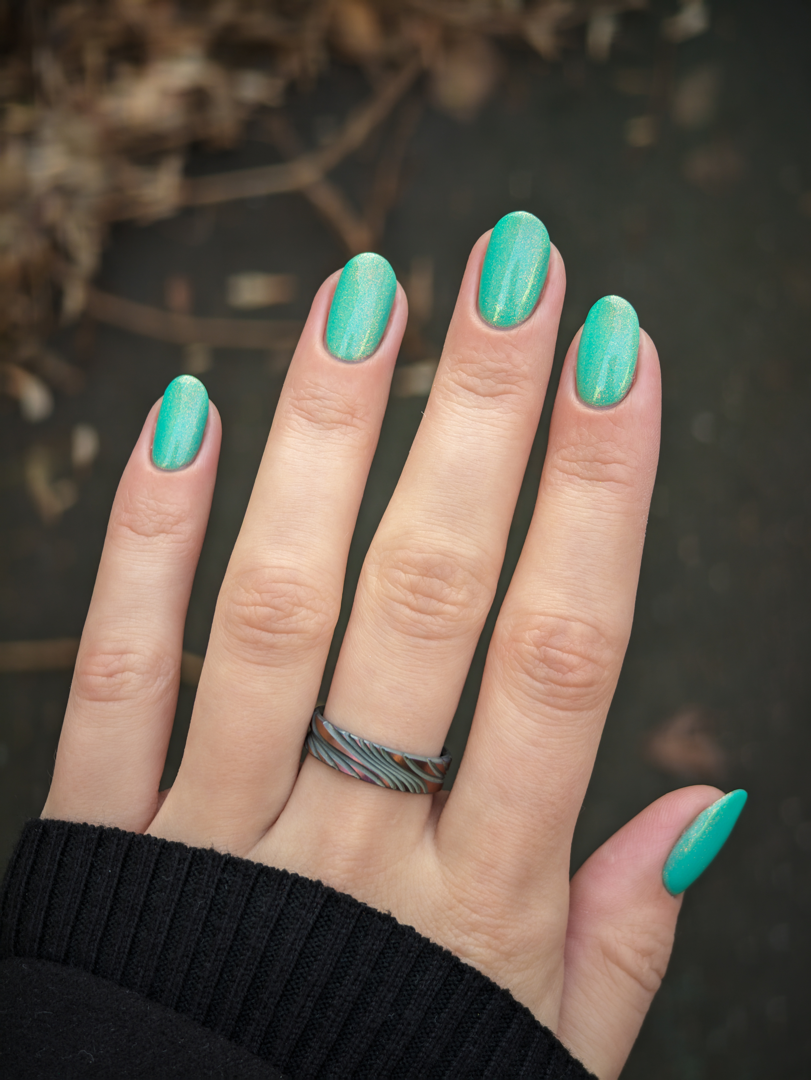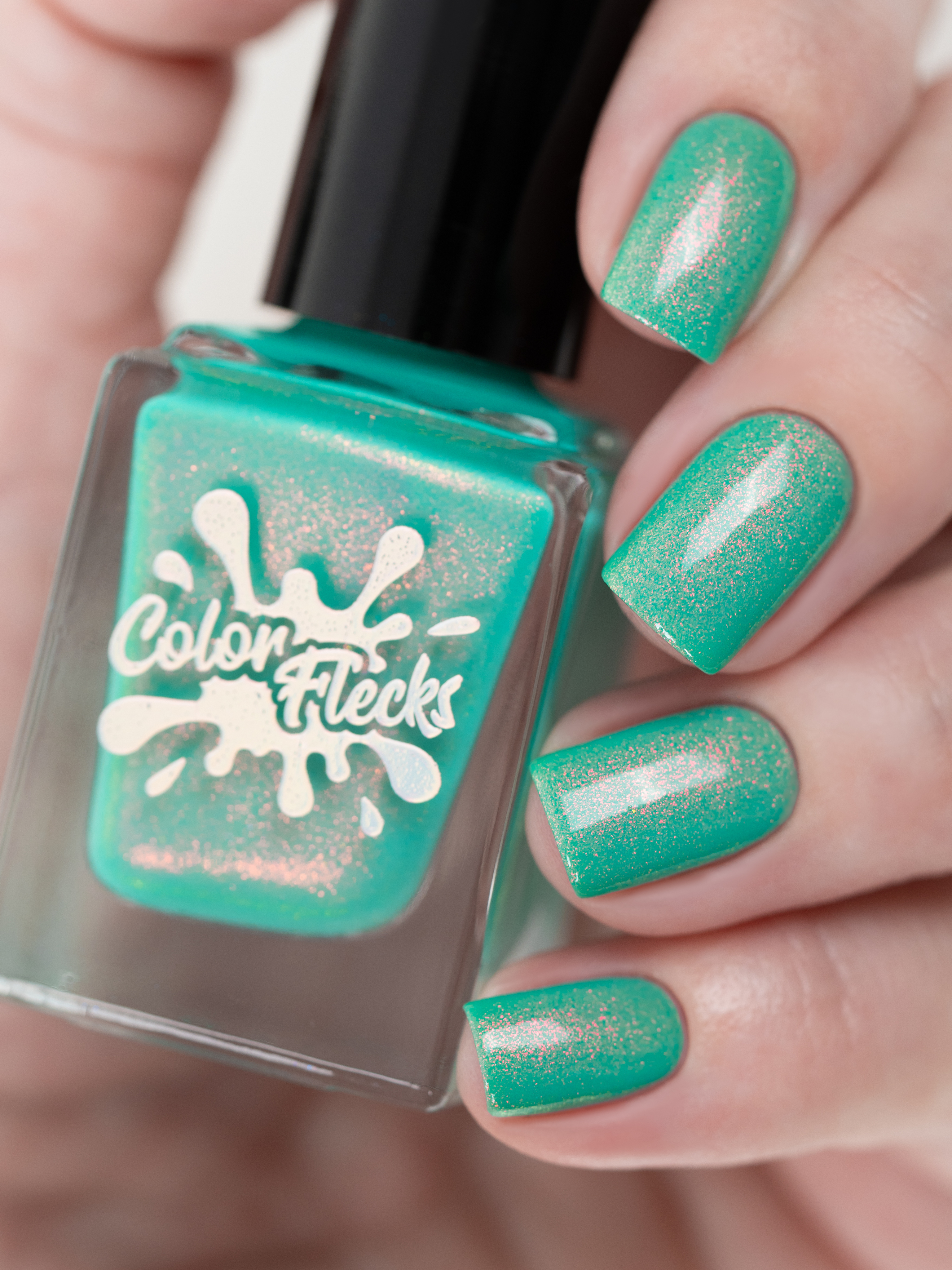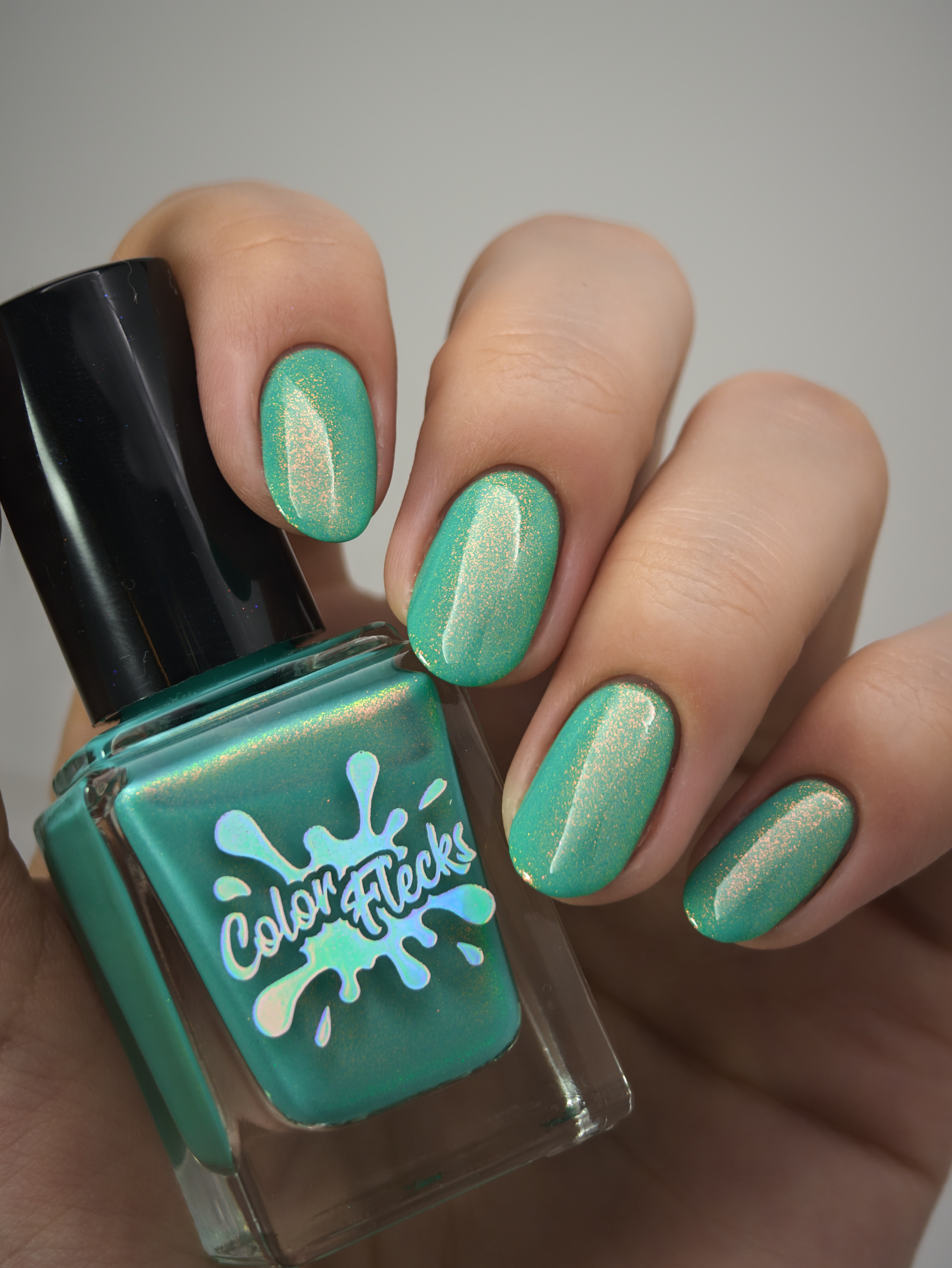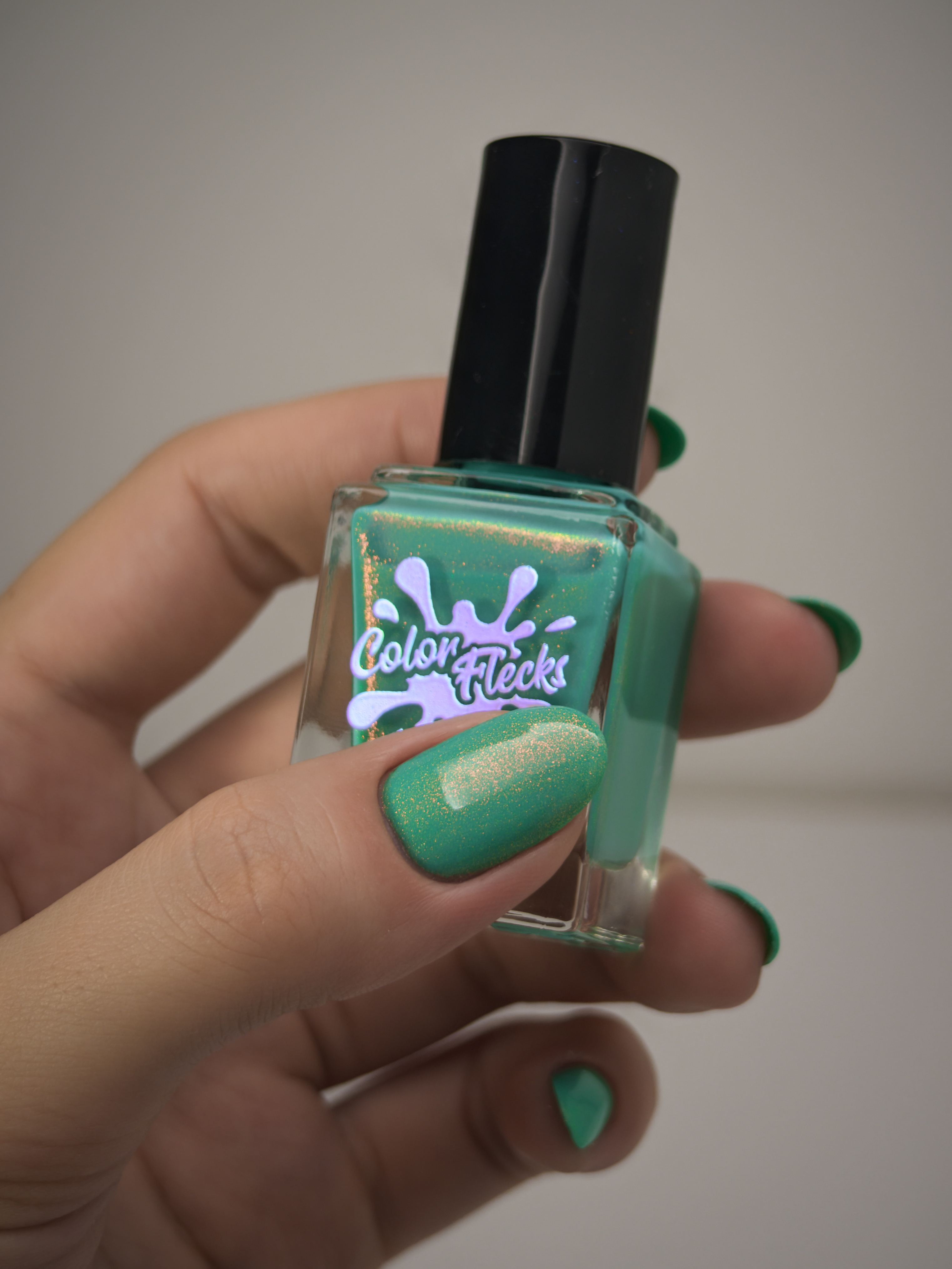 Бирюзовое желе со светящимся в темноте зелёным пигментом и ярким красно-оранжевым шиммером