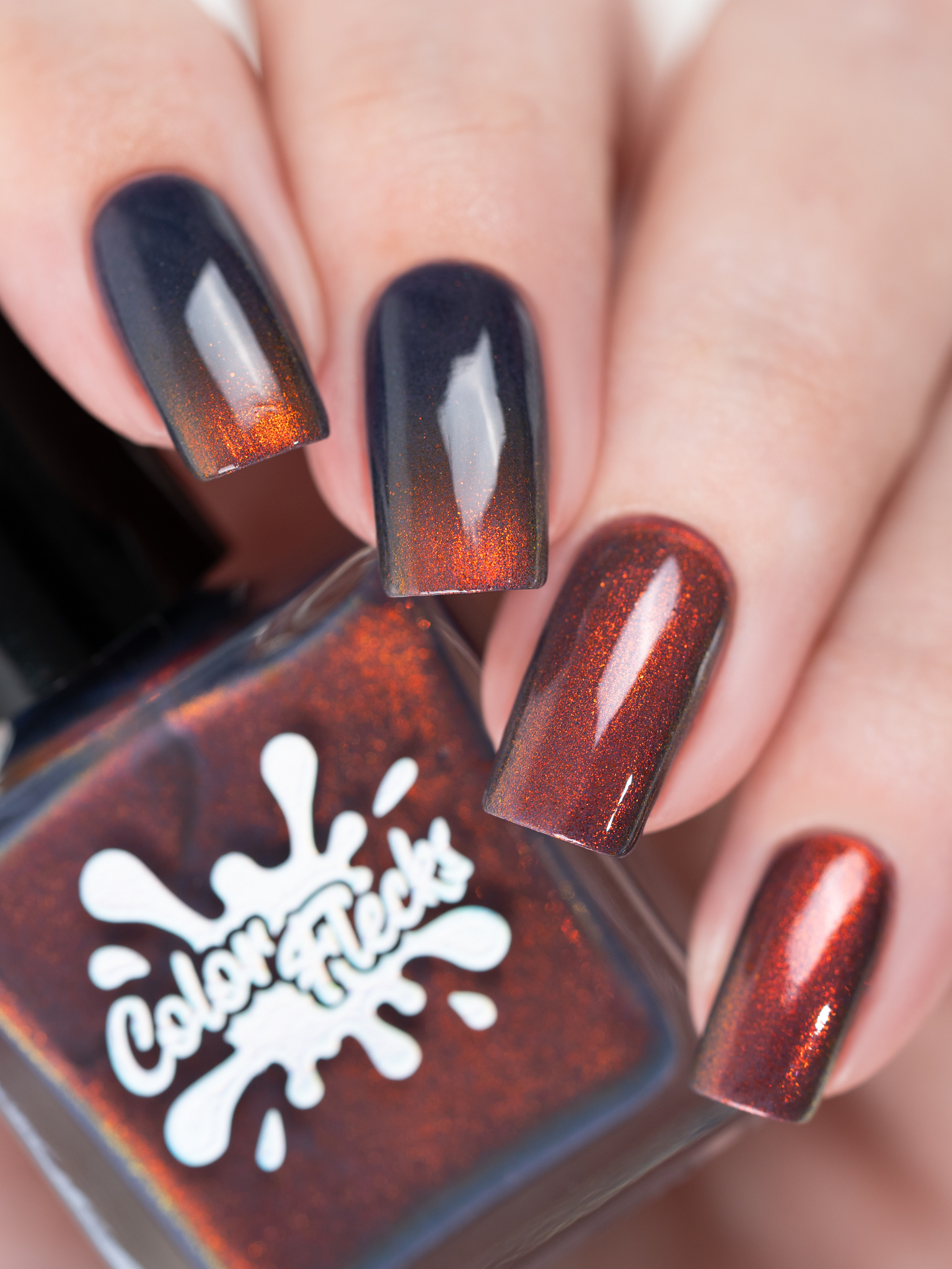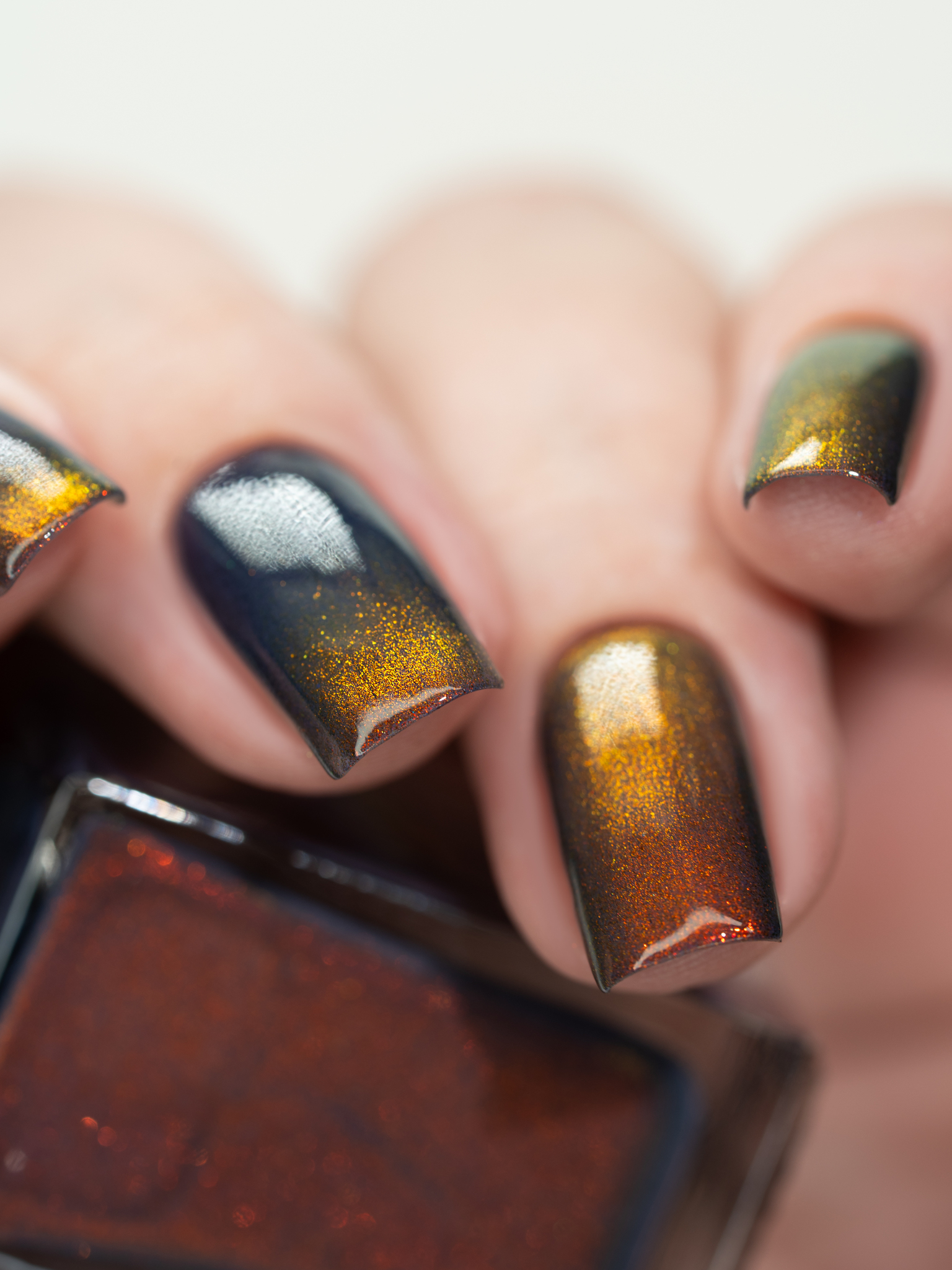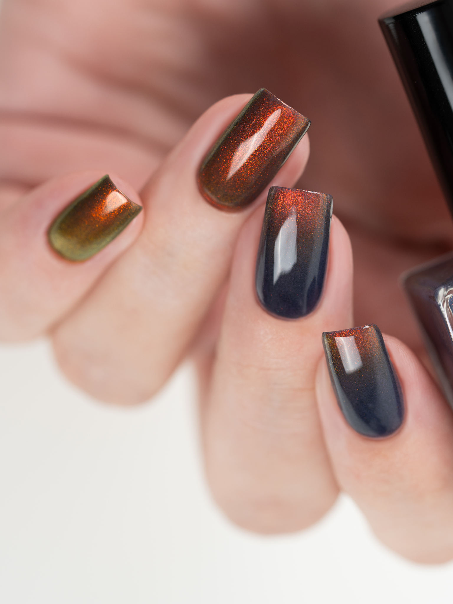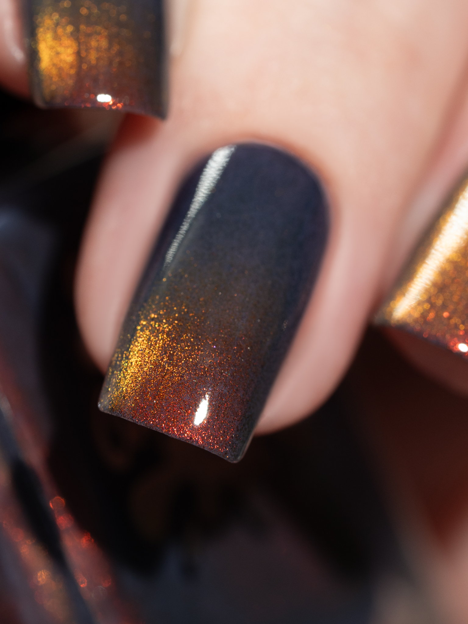 Яркий оранжево-желтый магнит в темной сине-фиолетовой базе.