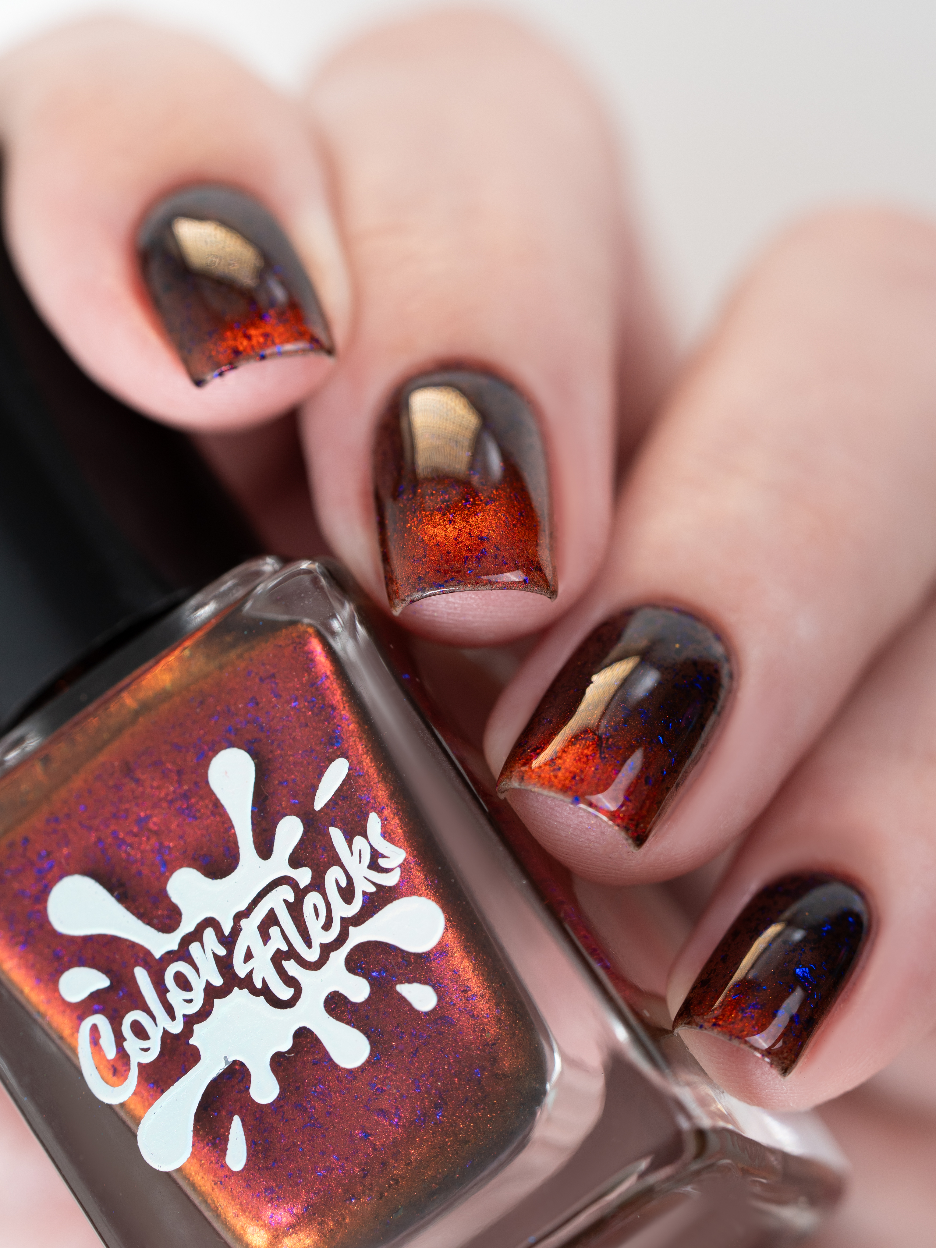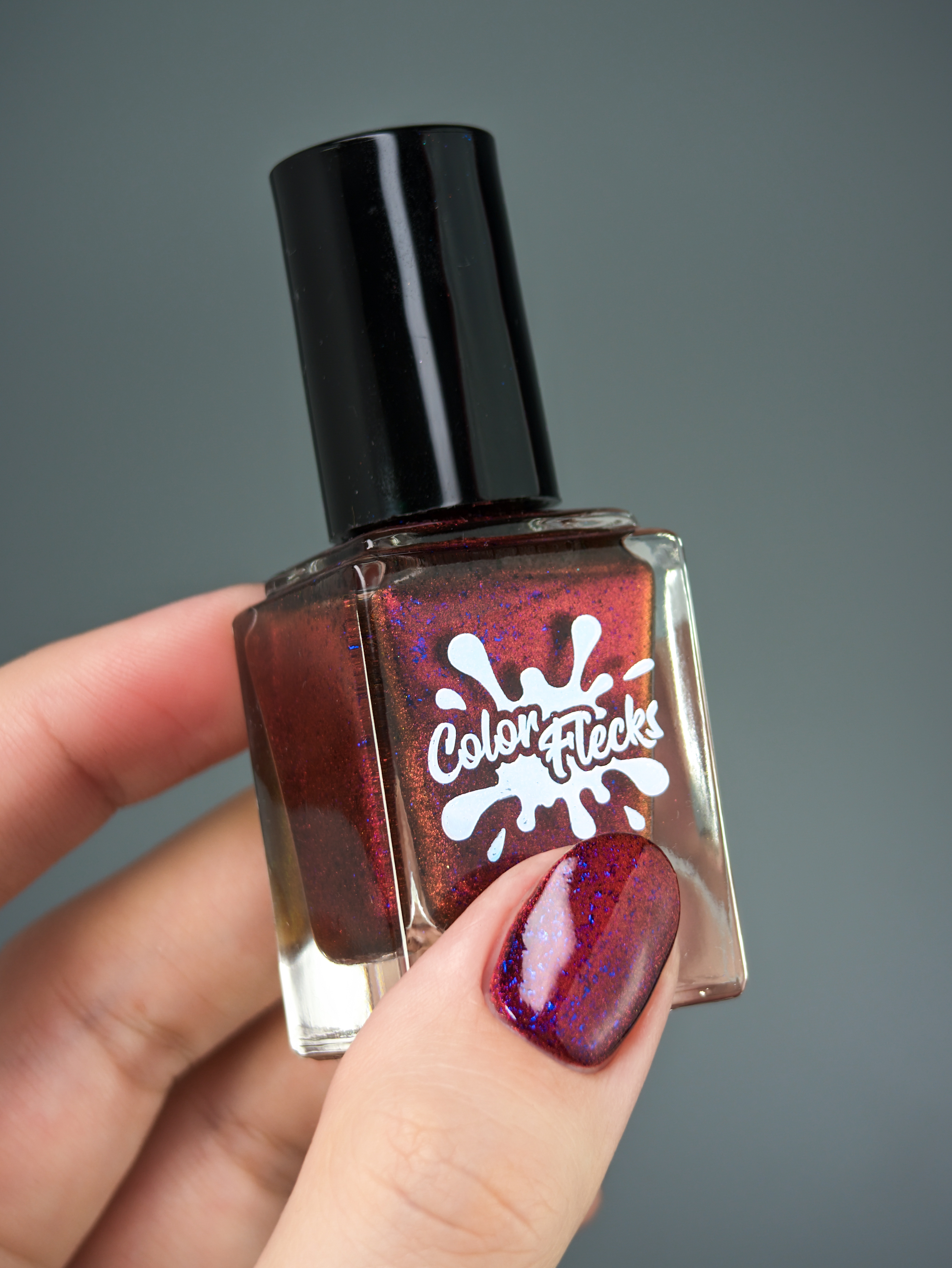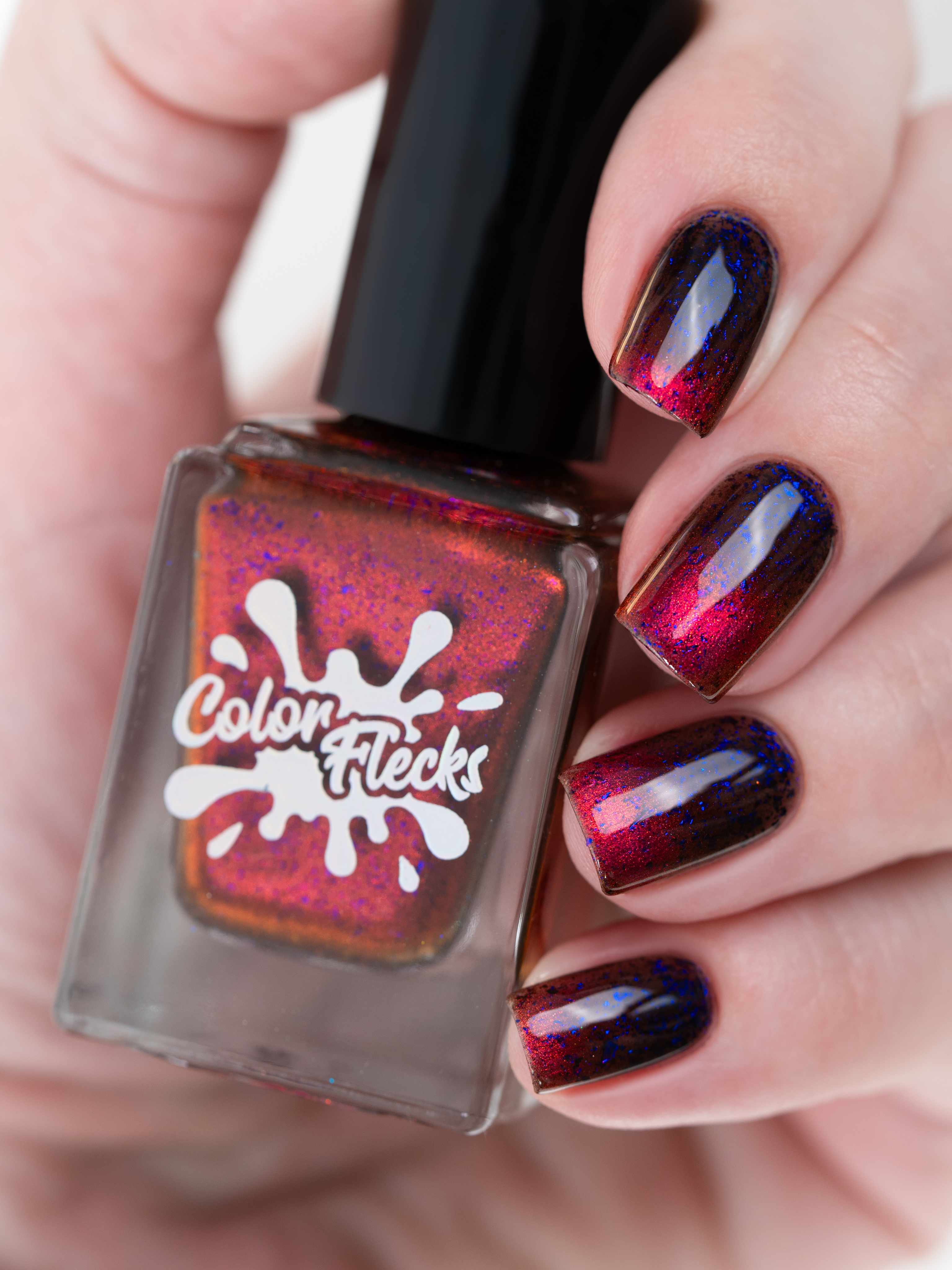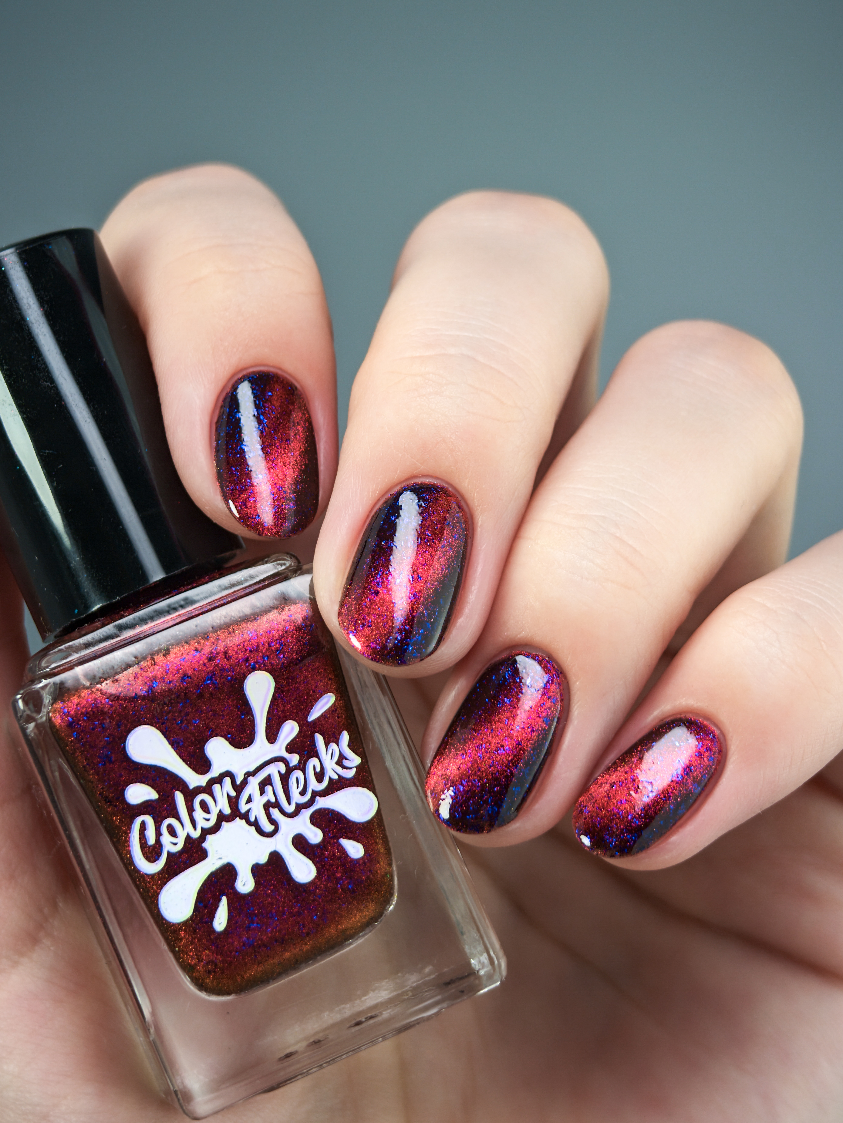 Красный магнит и сине-черные хлопья в прозрачной базе. Имеет неплотную текстуру и "колготочный" эффект.