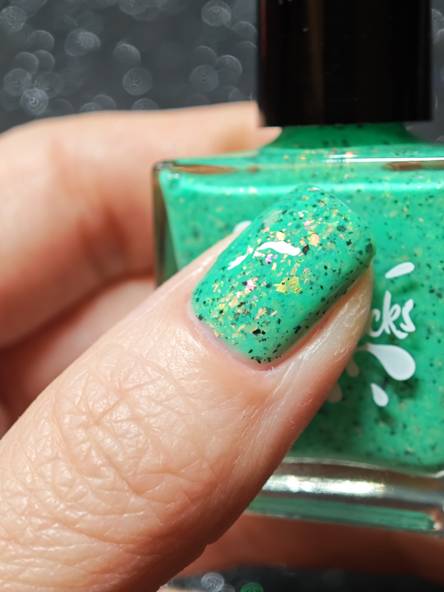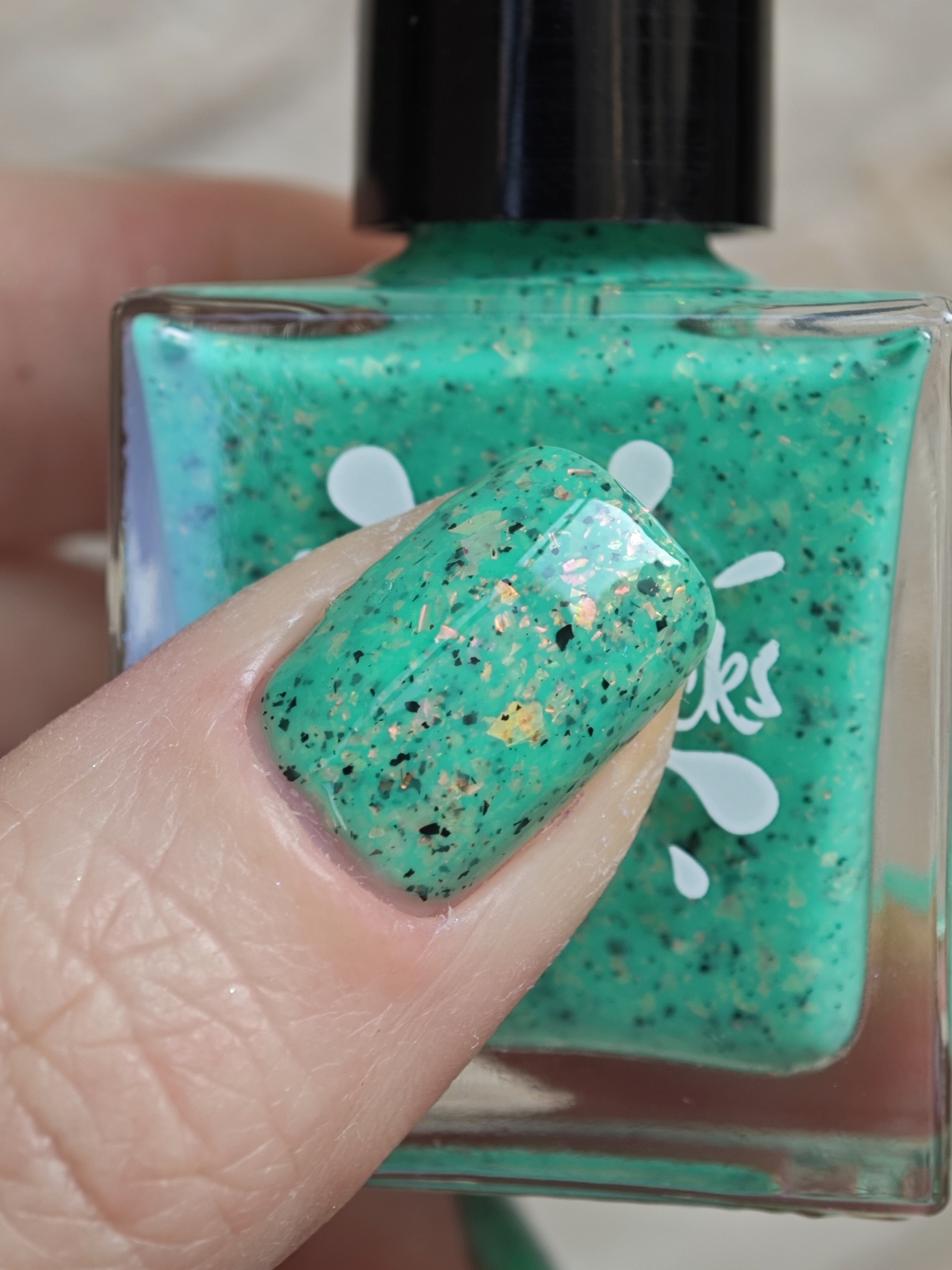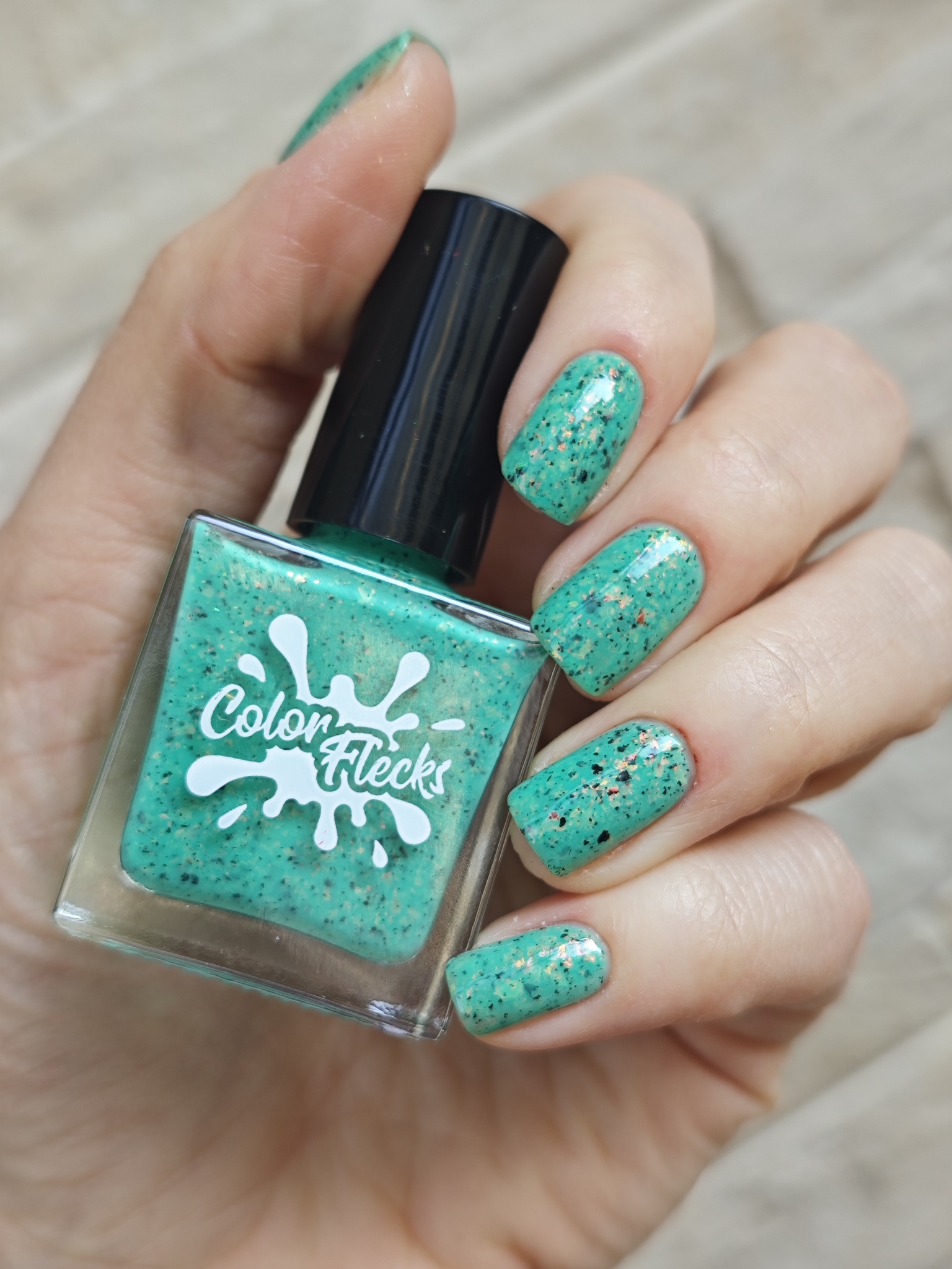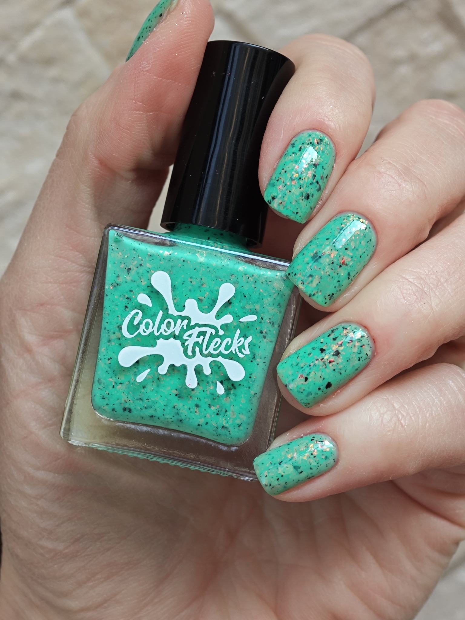 Бирюзово-зеленый пастельный неон с желто-оранжево-розовой слюдой и черной пталью