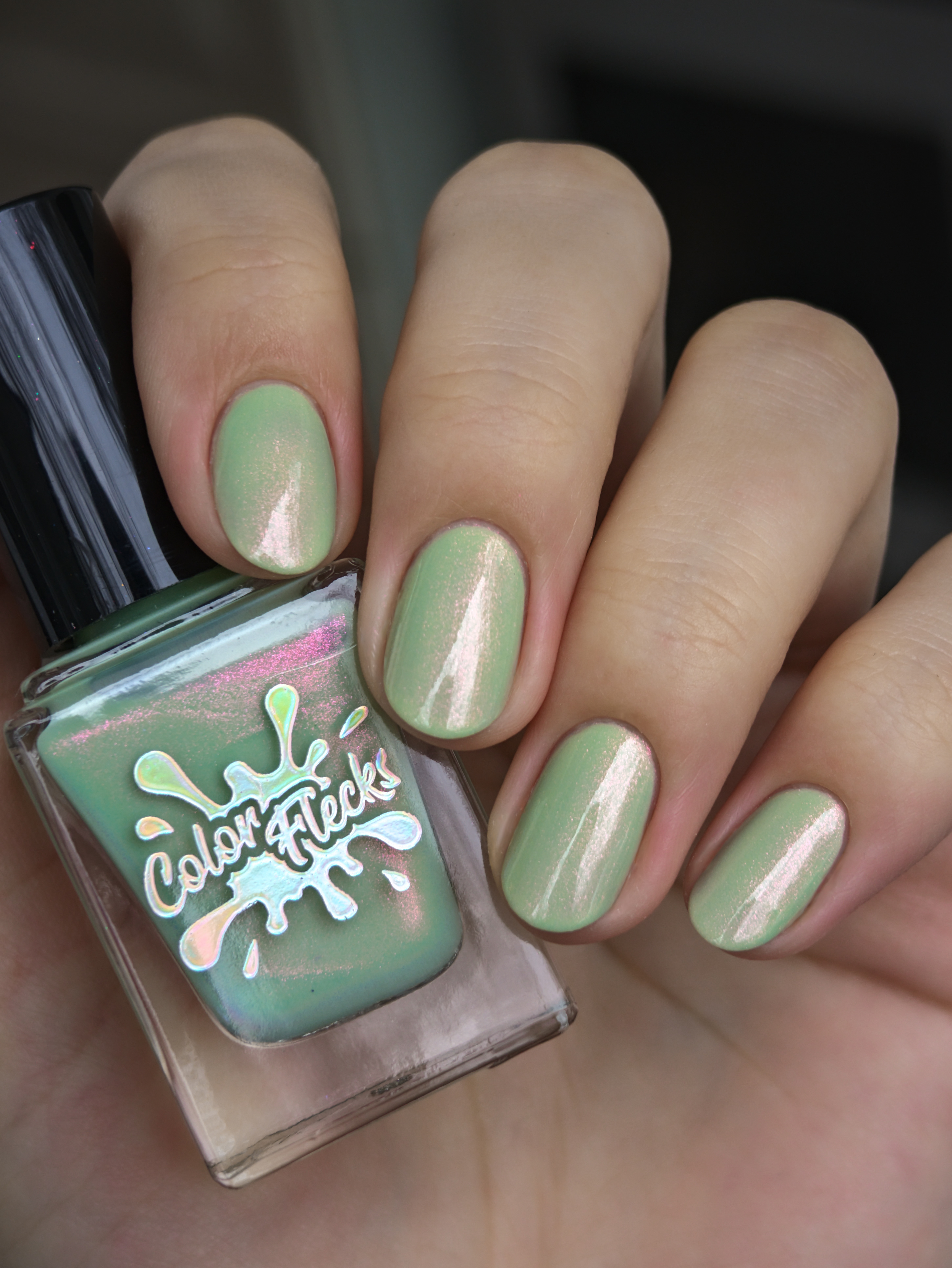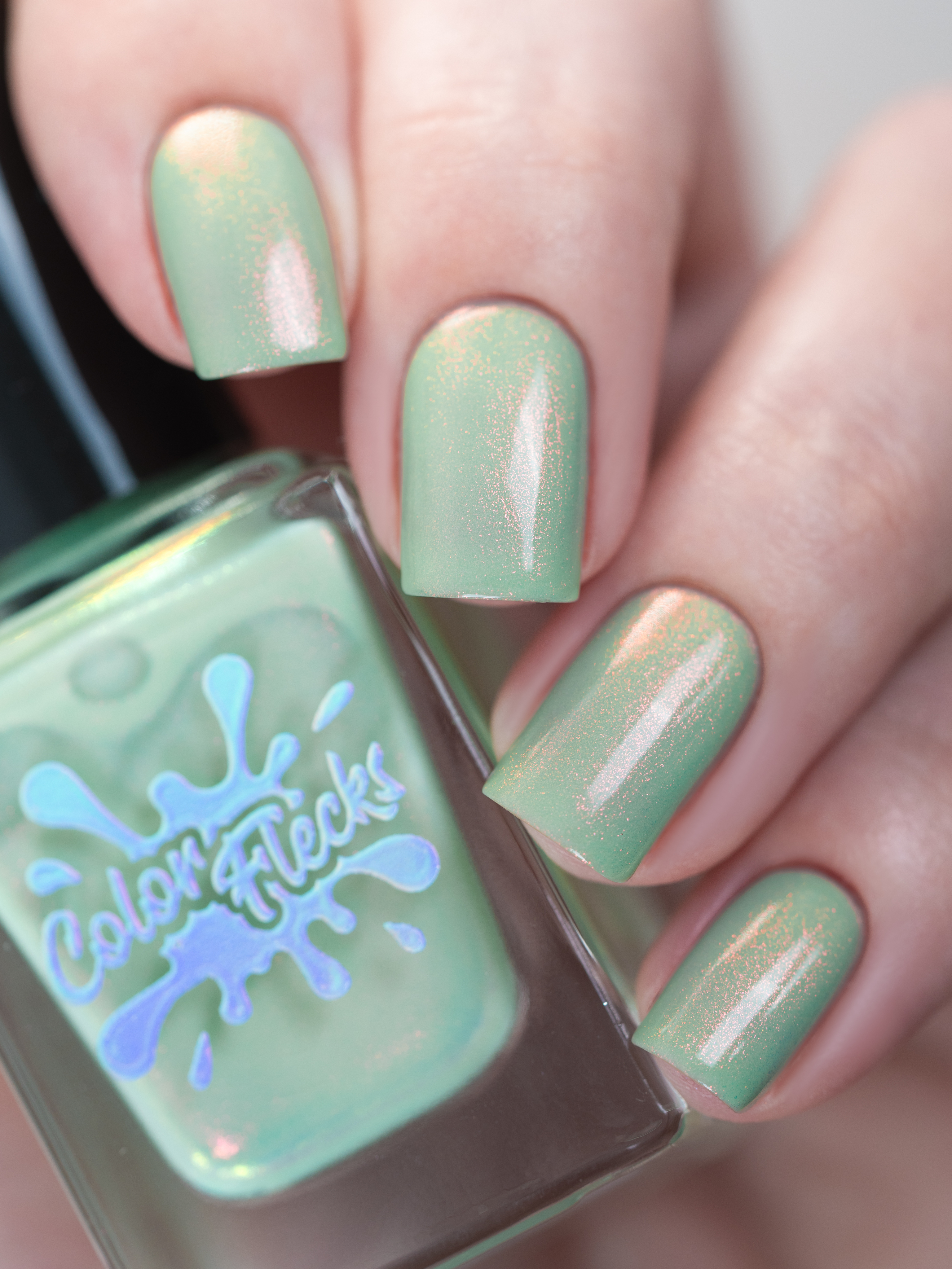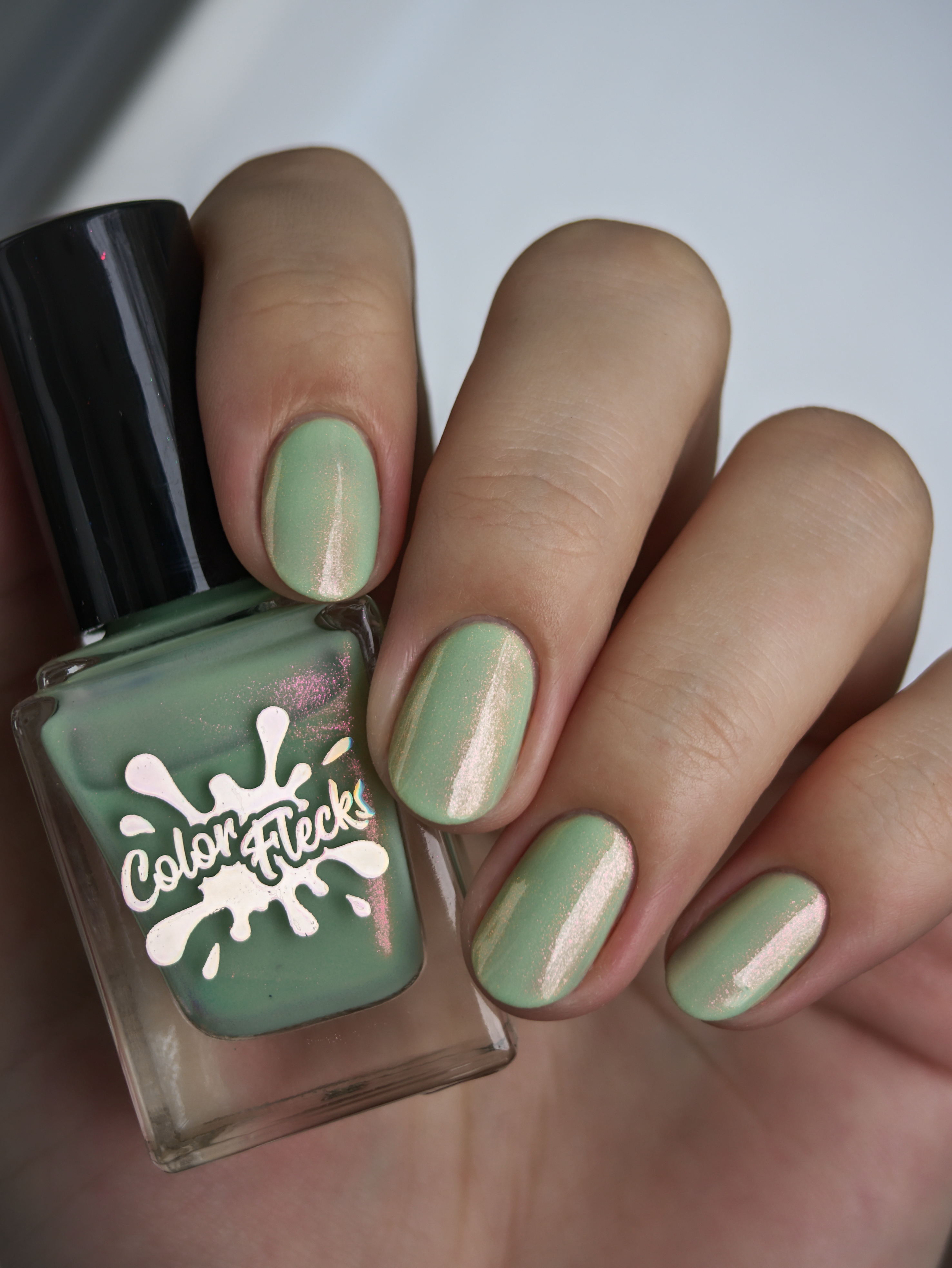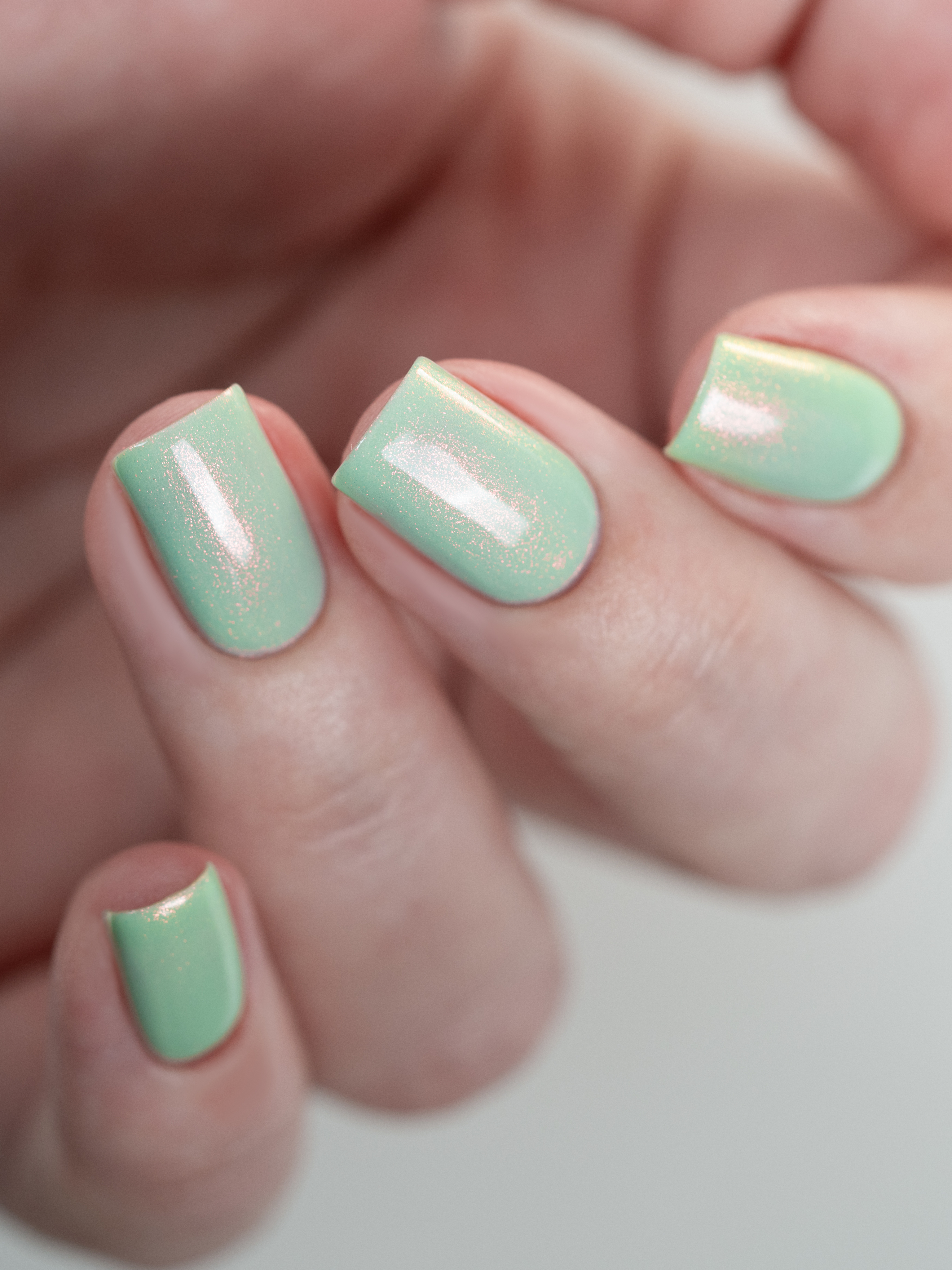 Нежное, пастельное креле цвета шалфей с розово-оранжево-золотым шиммером
