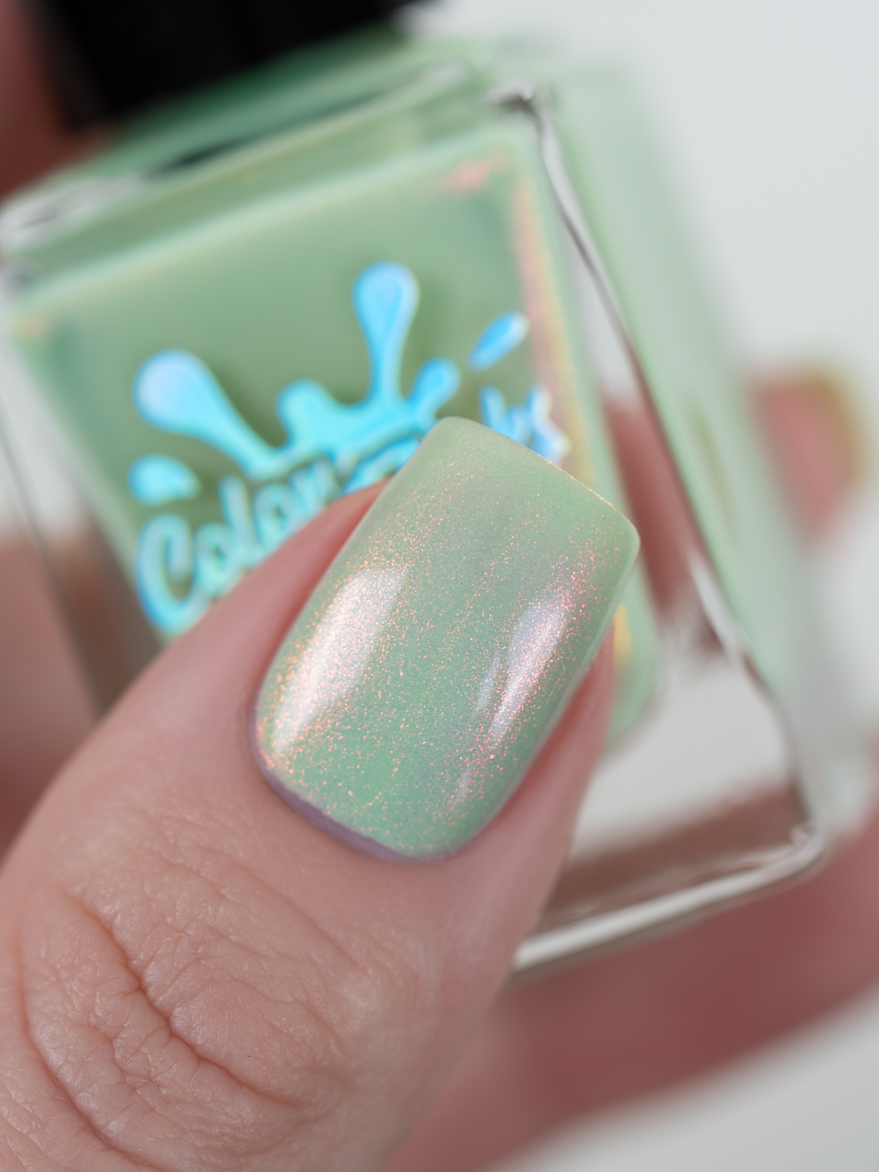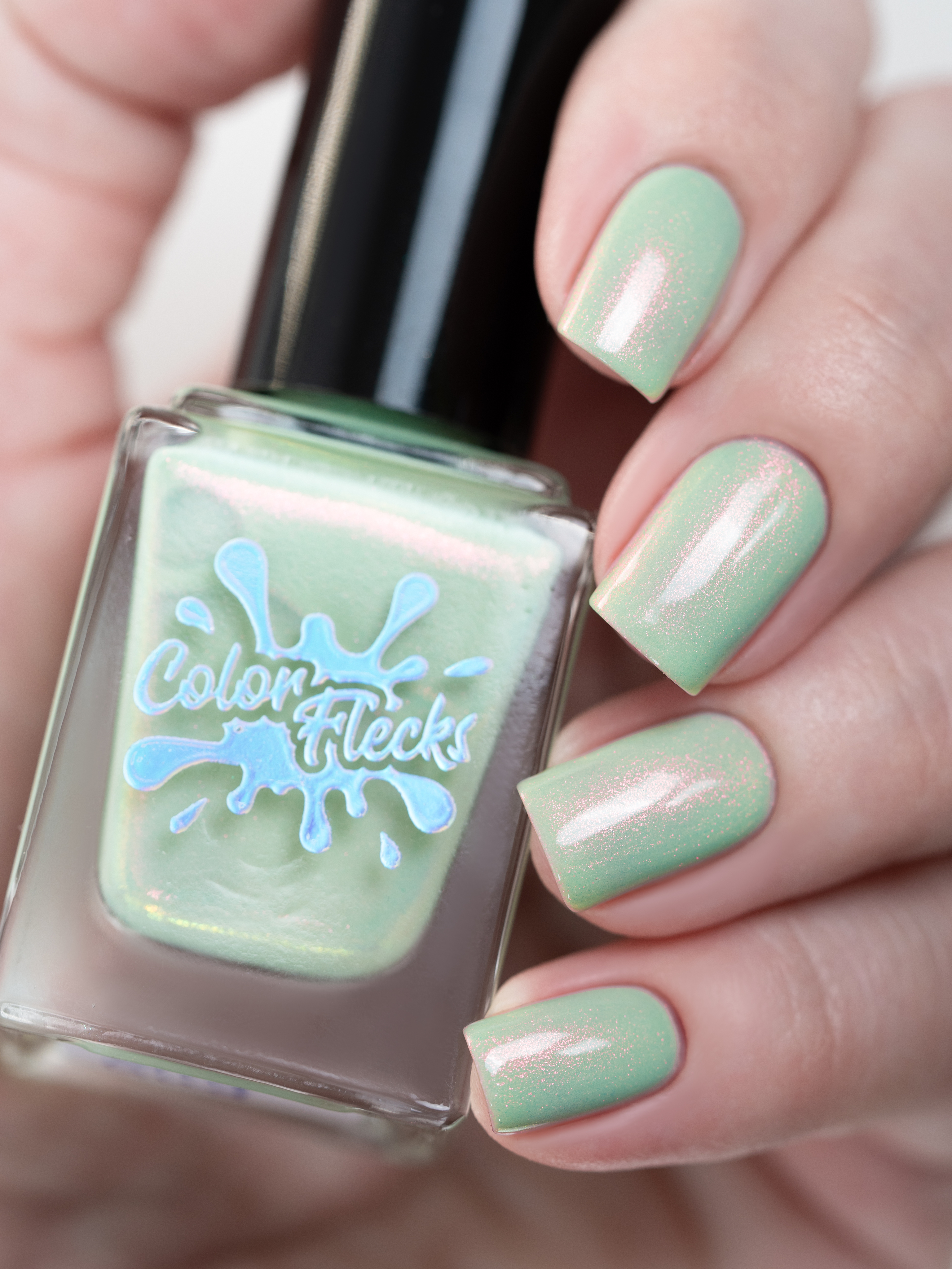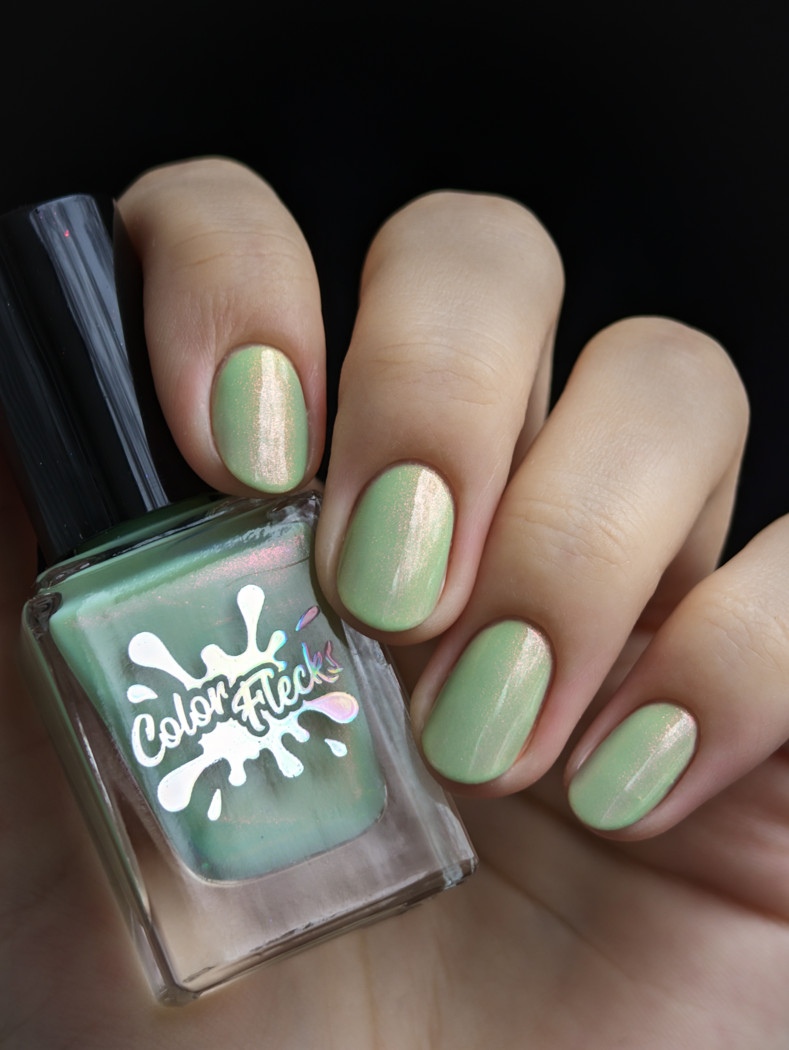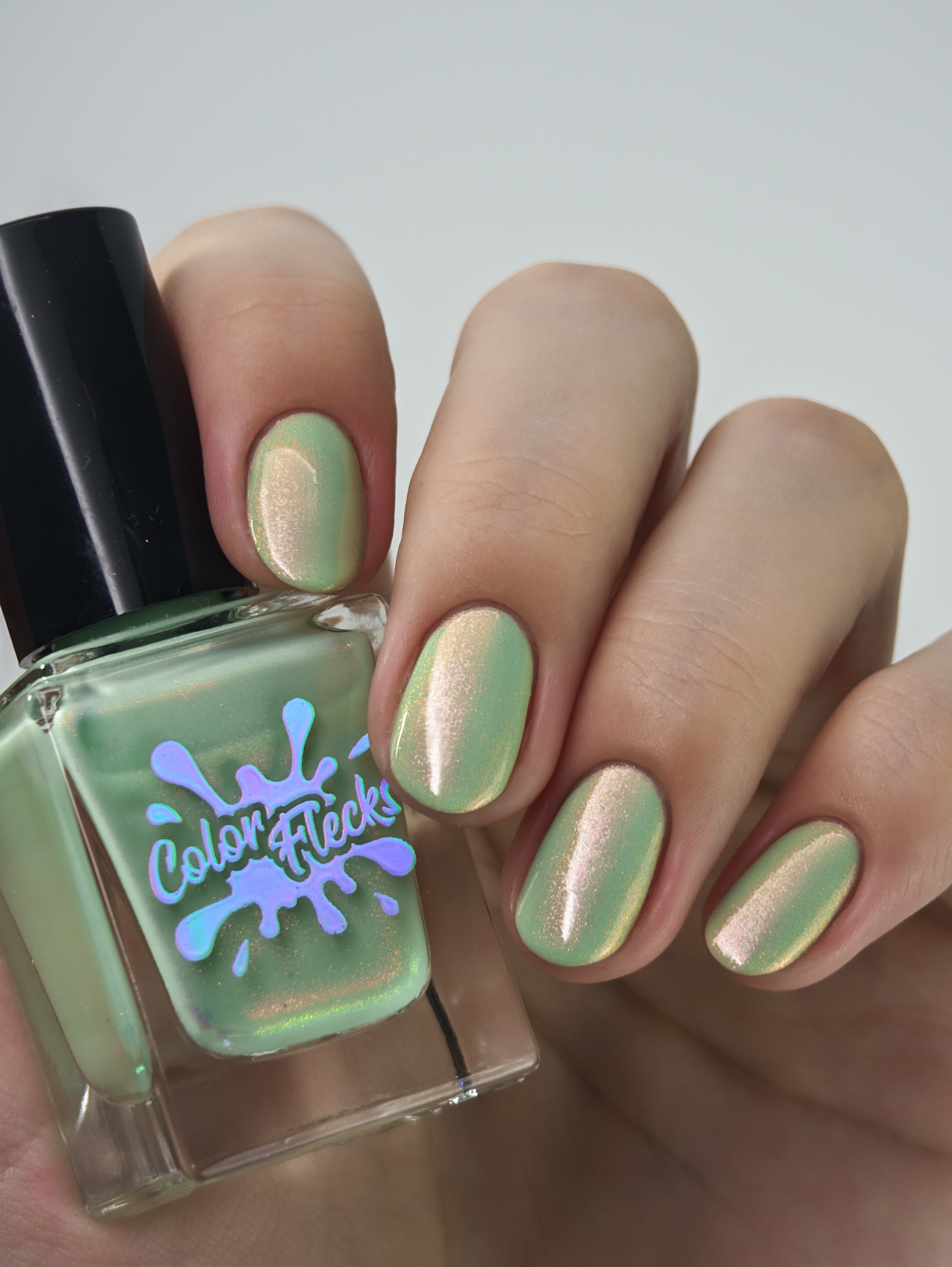 Нежное, пастельное креле цвета шалфей с розово-оранжево-золотым шиммером