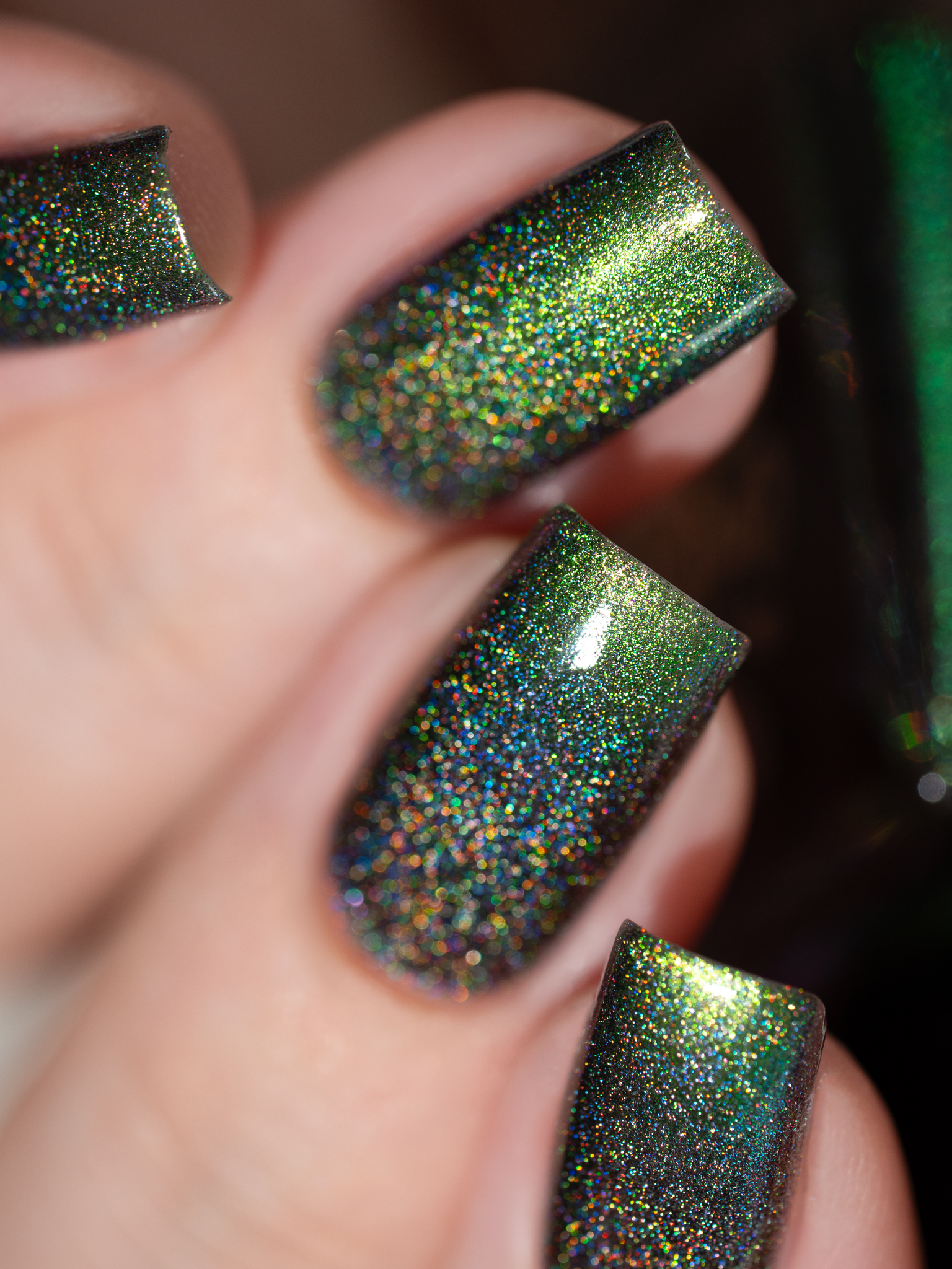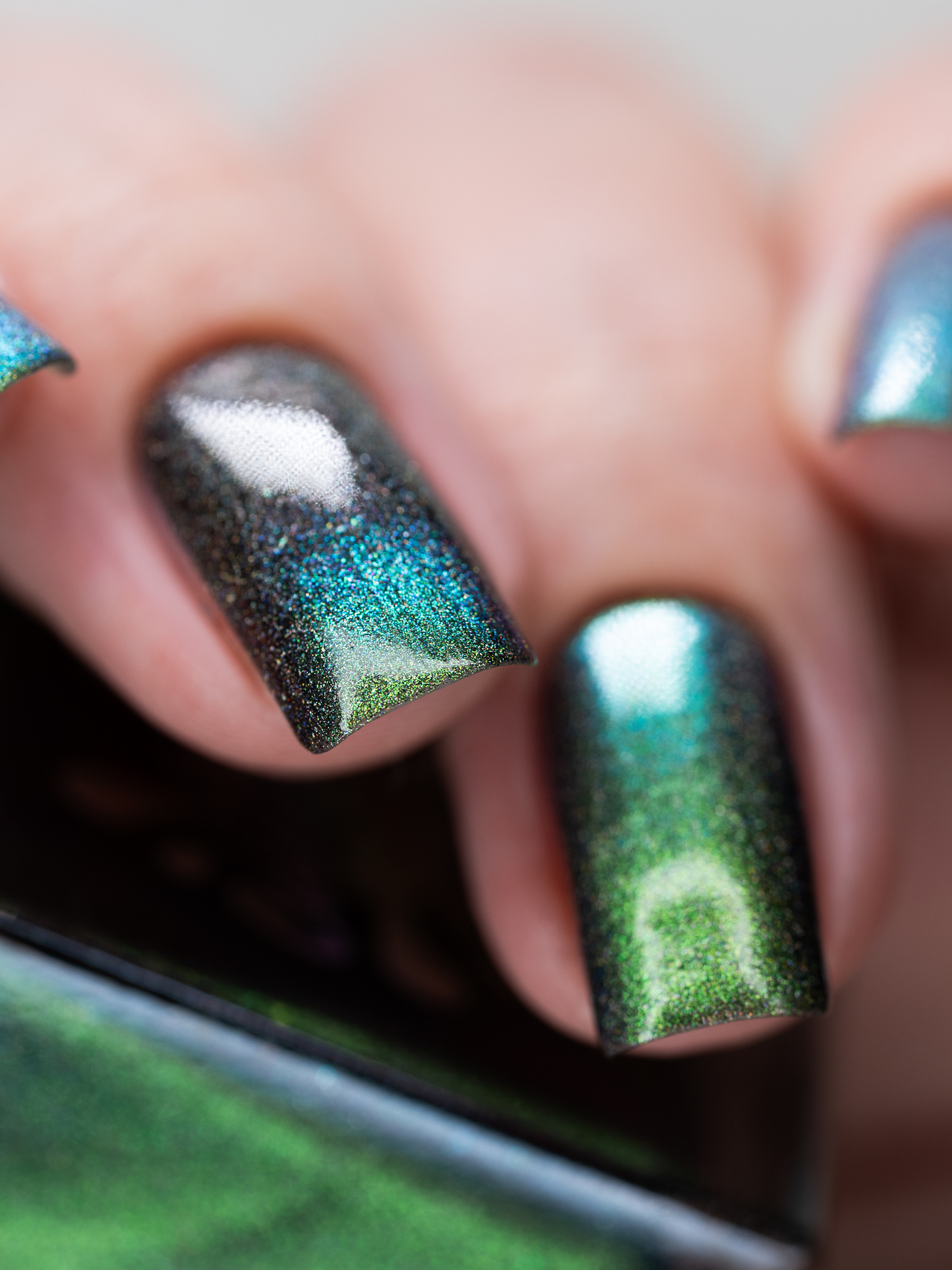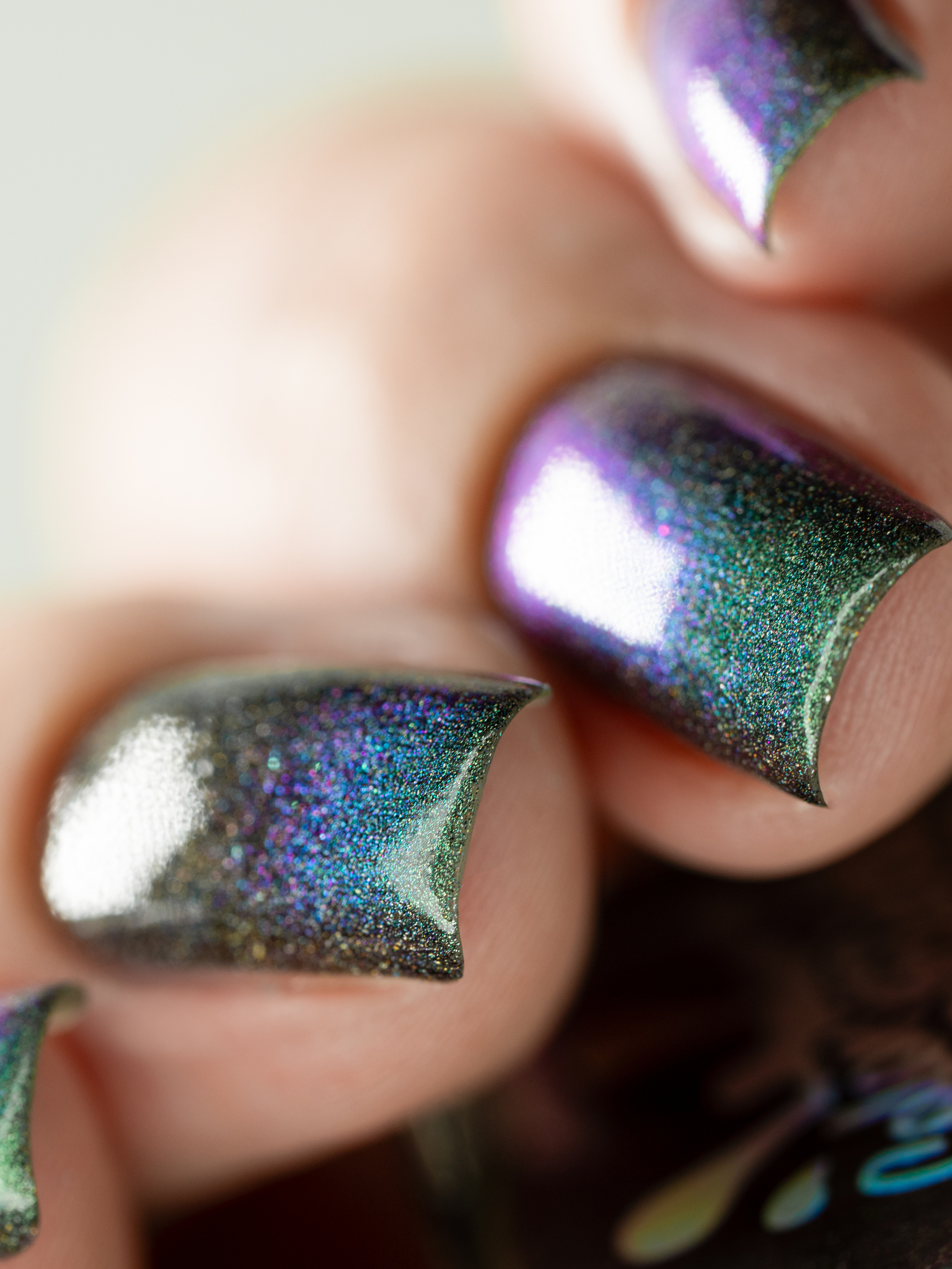 Зелено-сине-фиолетовый мультихромный магнит с голографией в черной базе