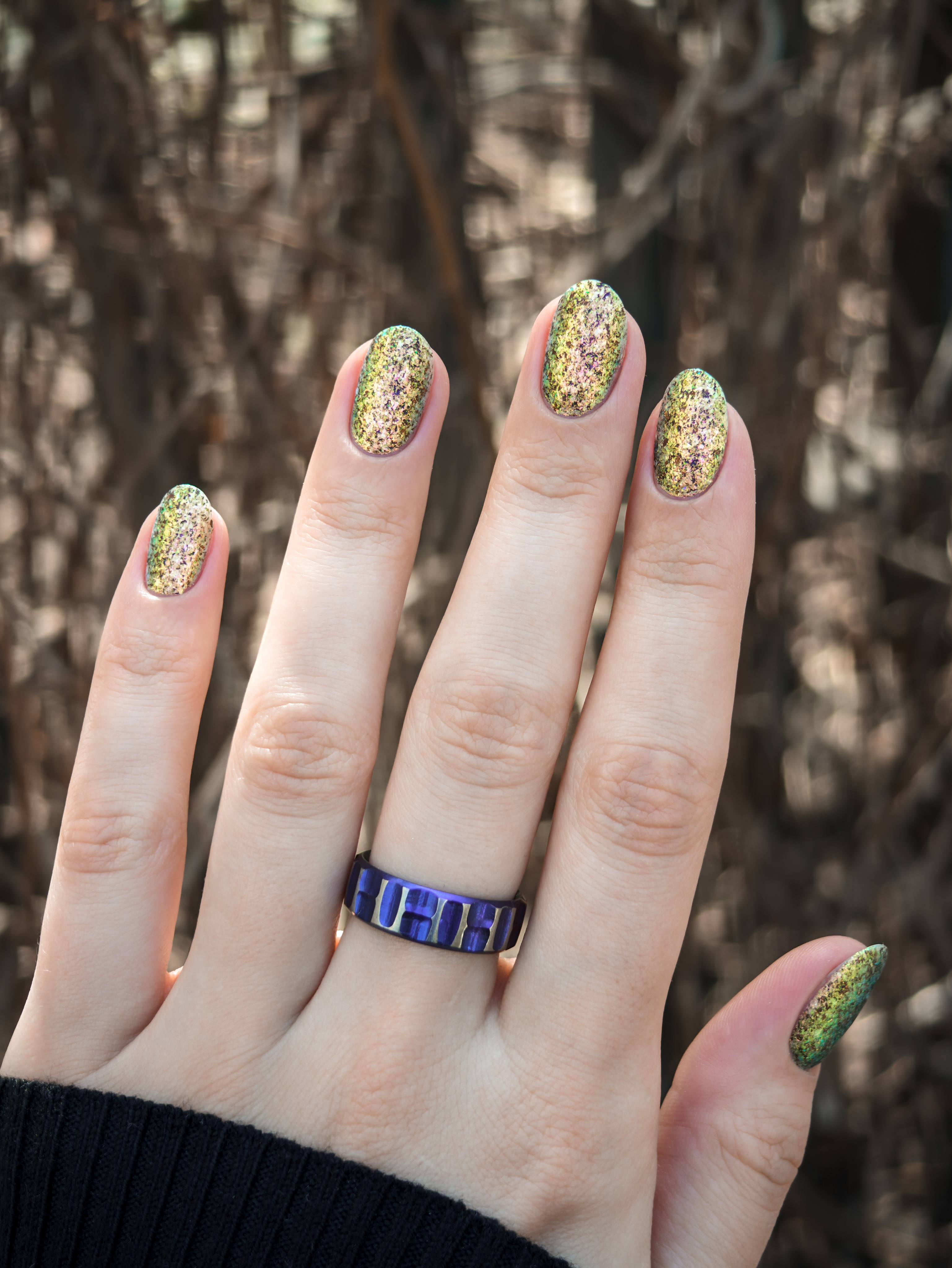 Золотисто-зелено-голубая микрослюда и черно-красные хлопья в матовой базе