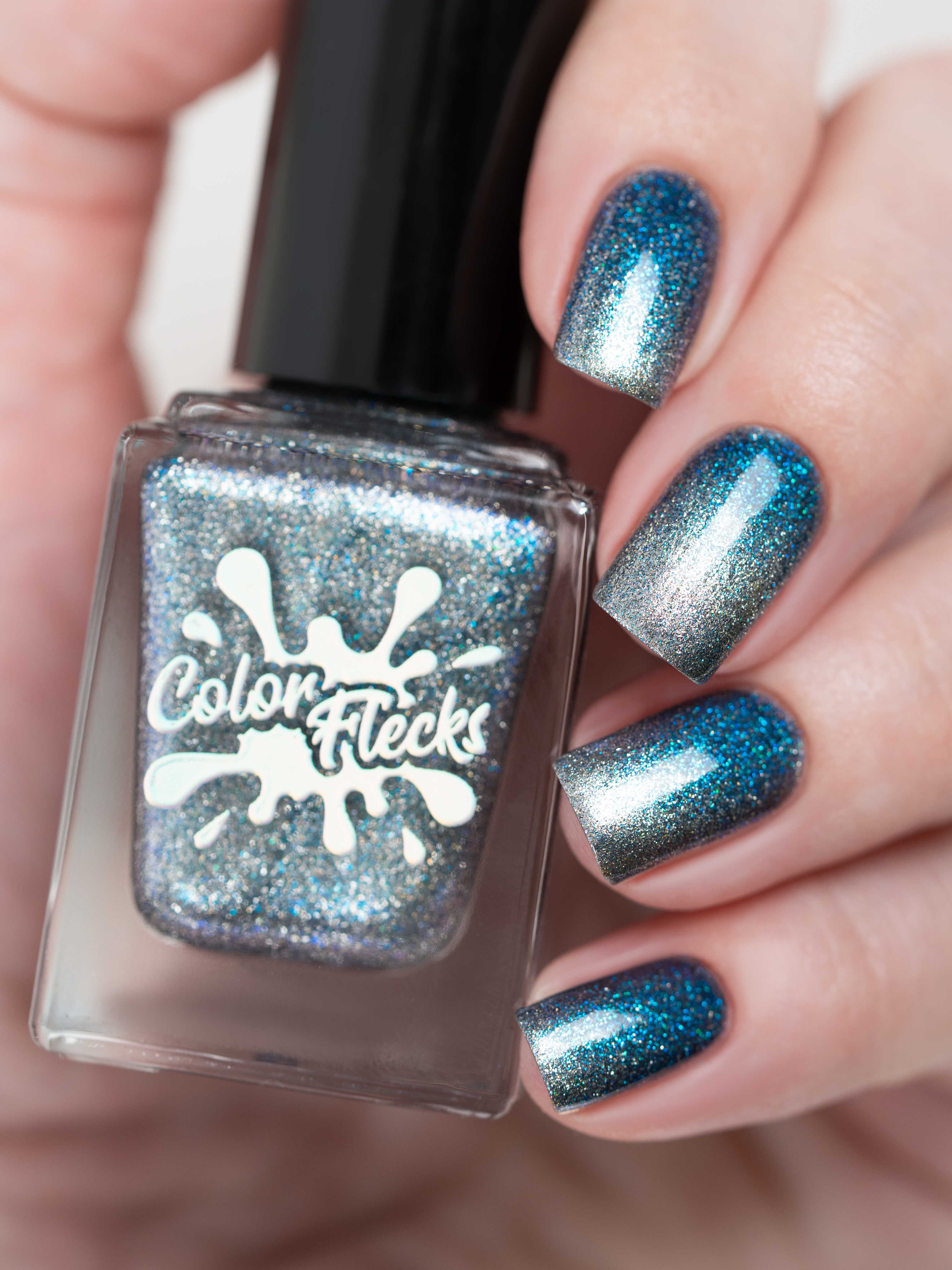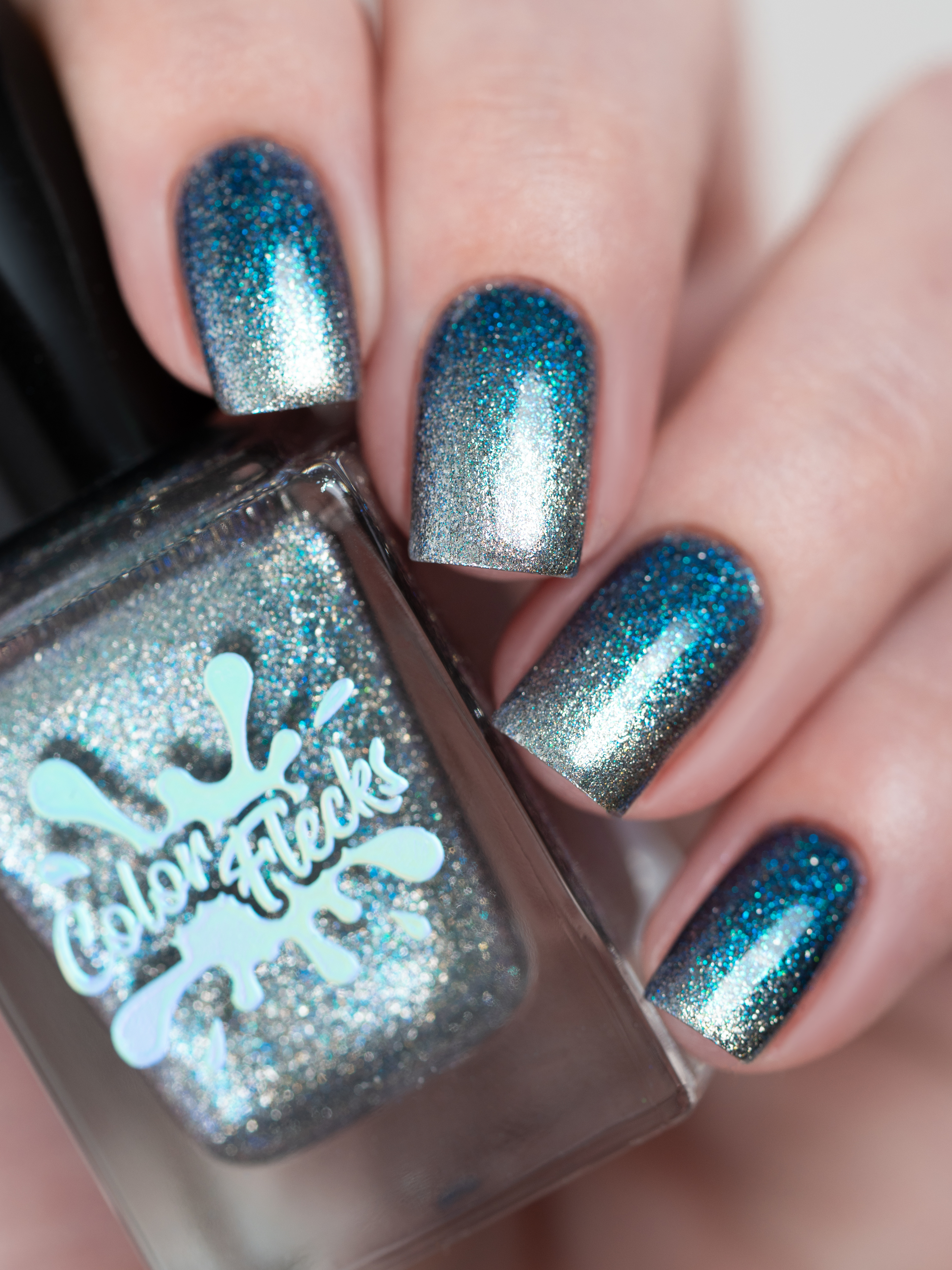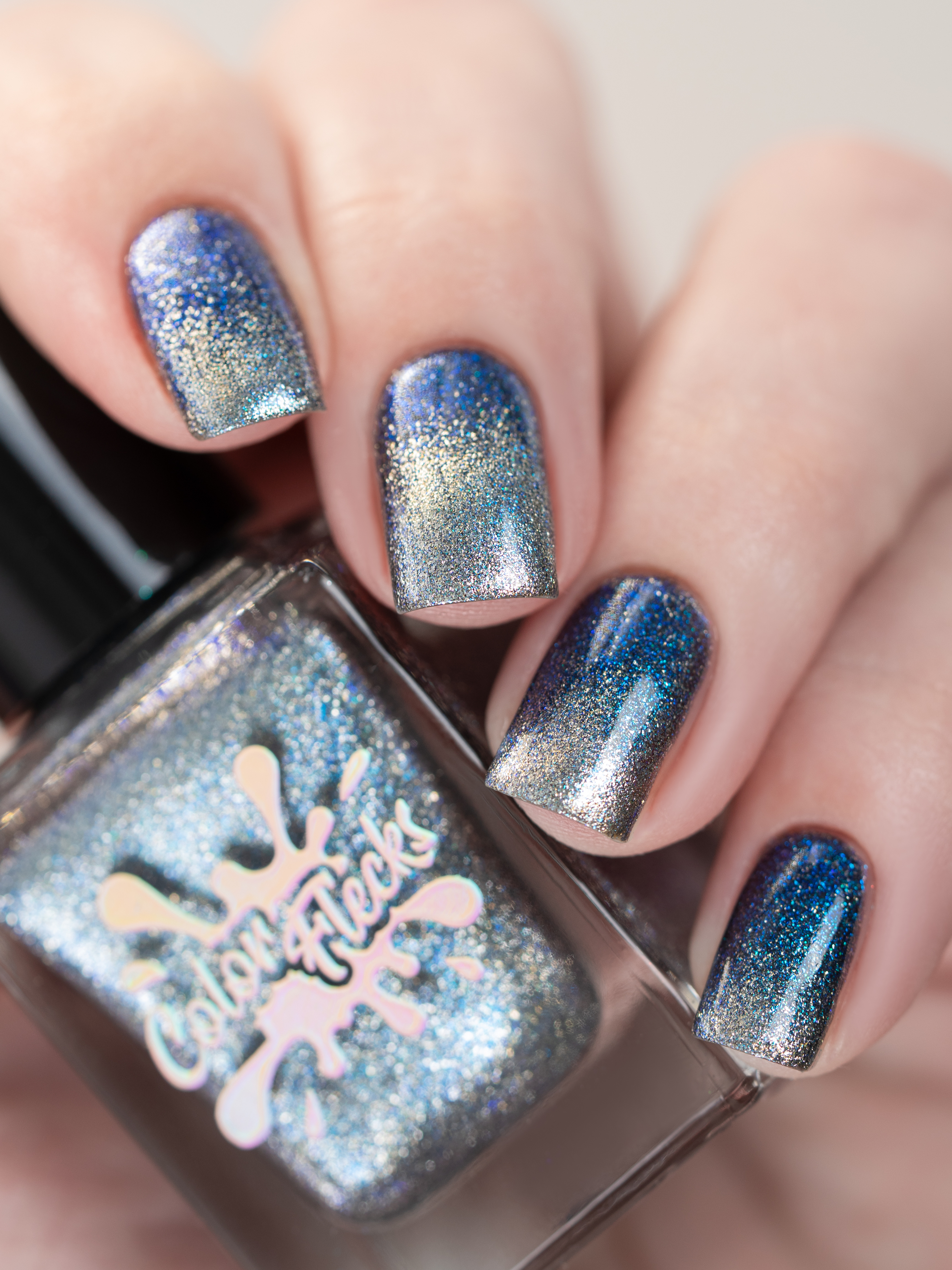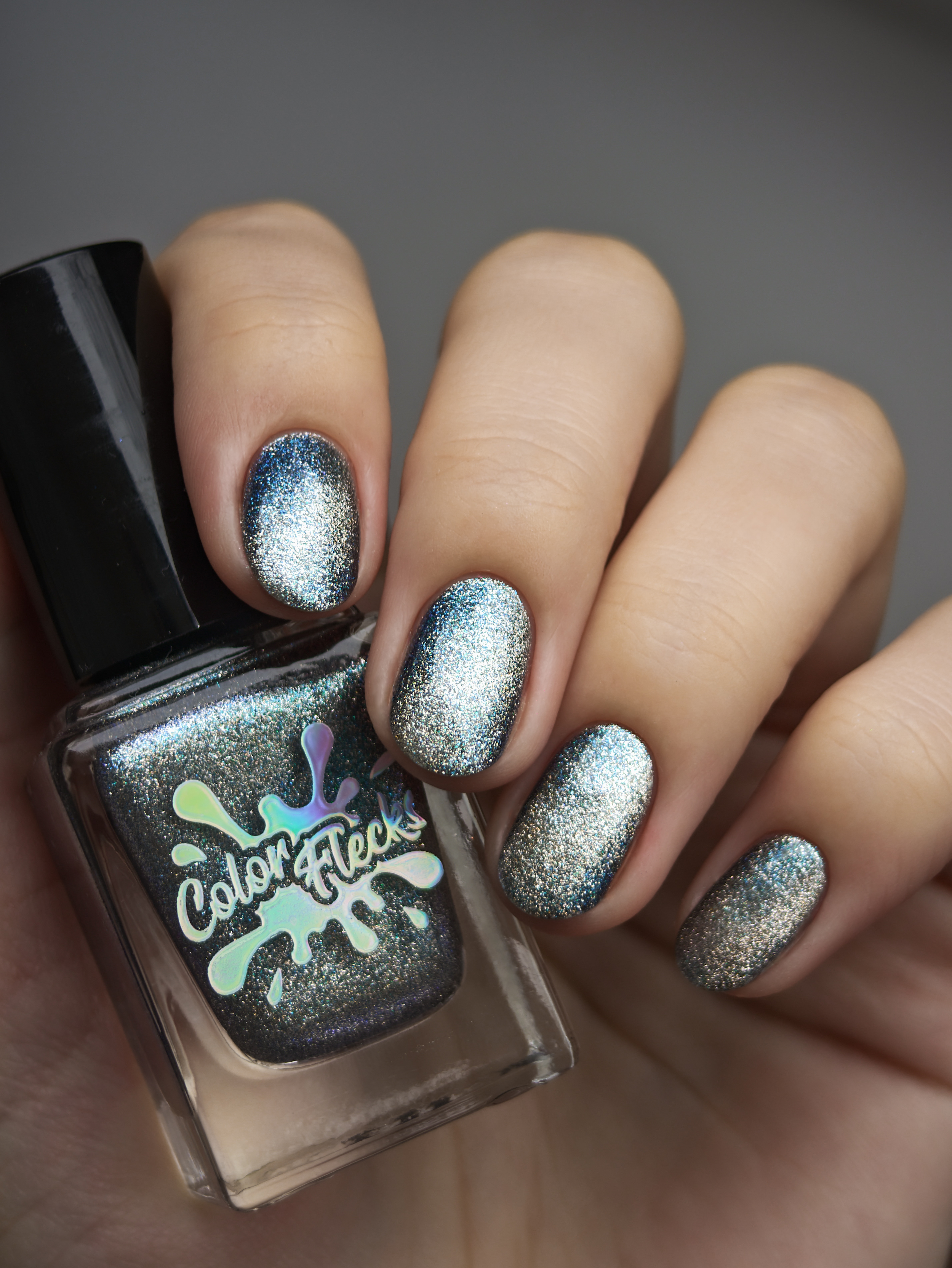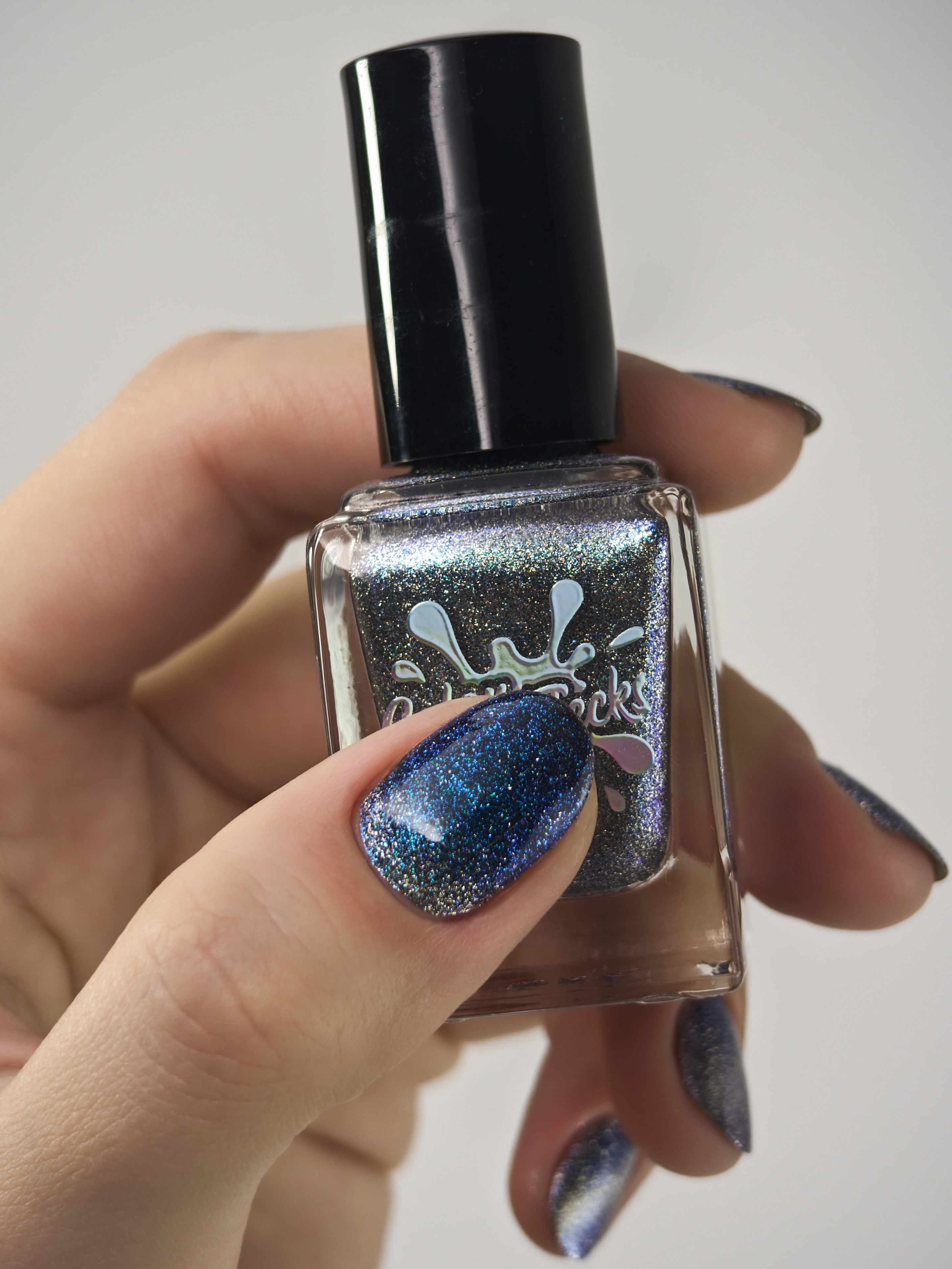 Крупный искристый серебряный магнит и сине-голубой шиммер в черной базе