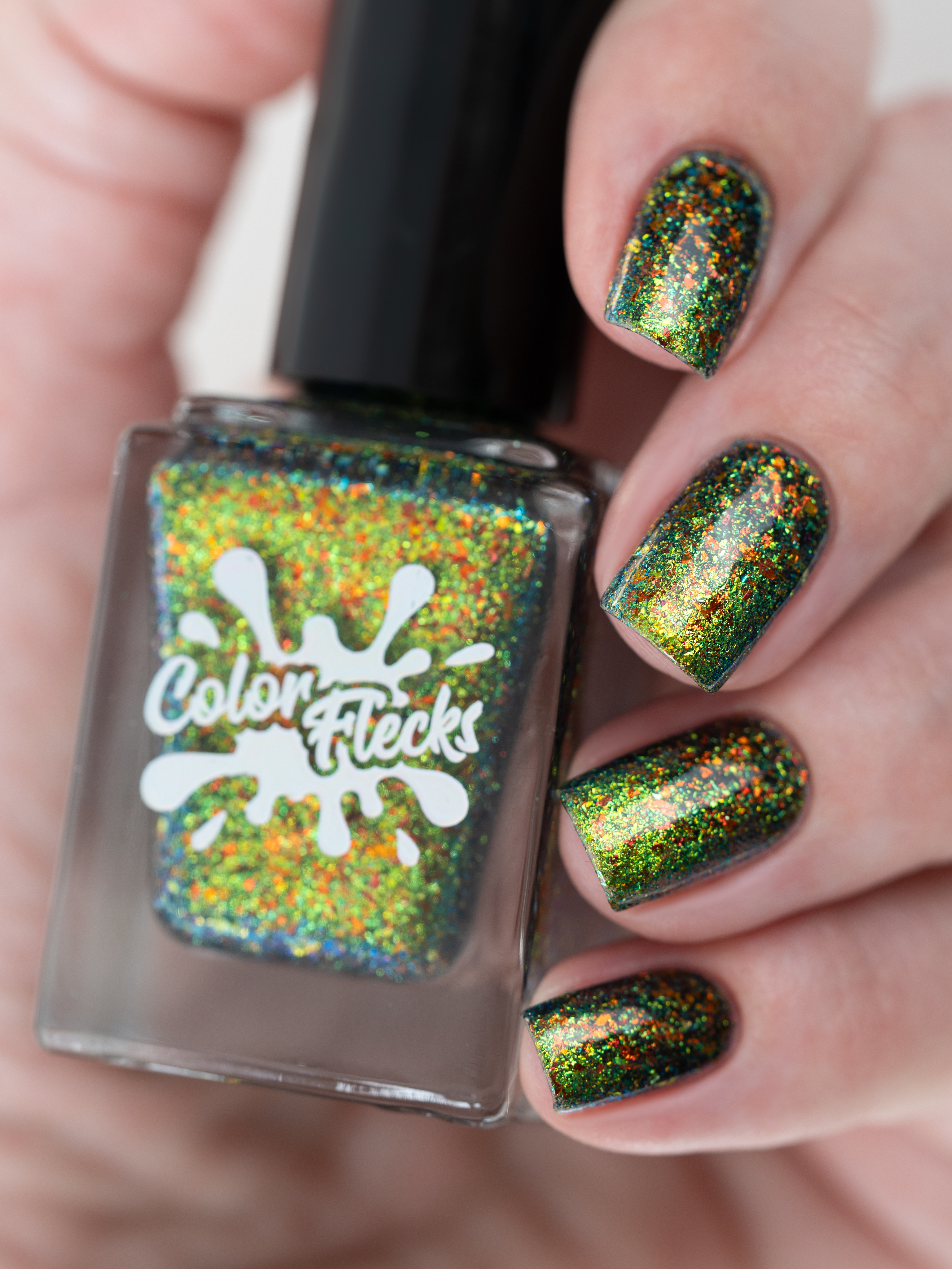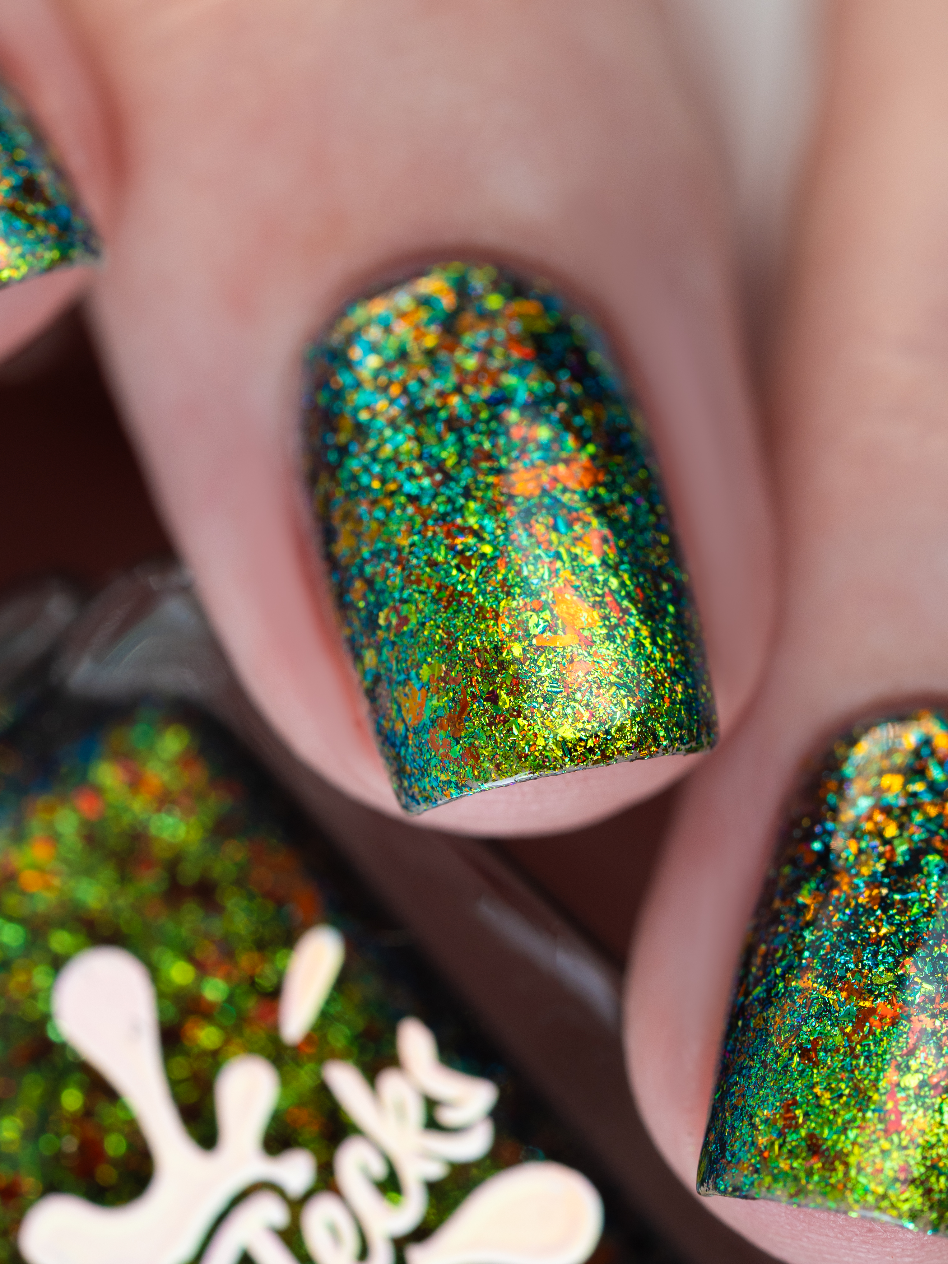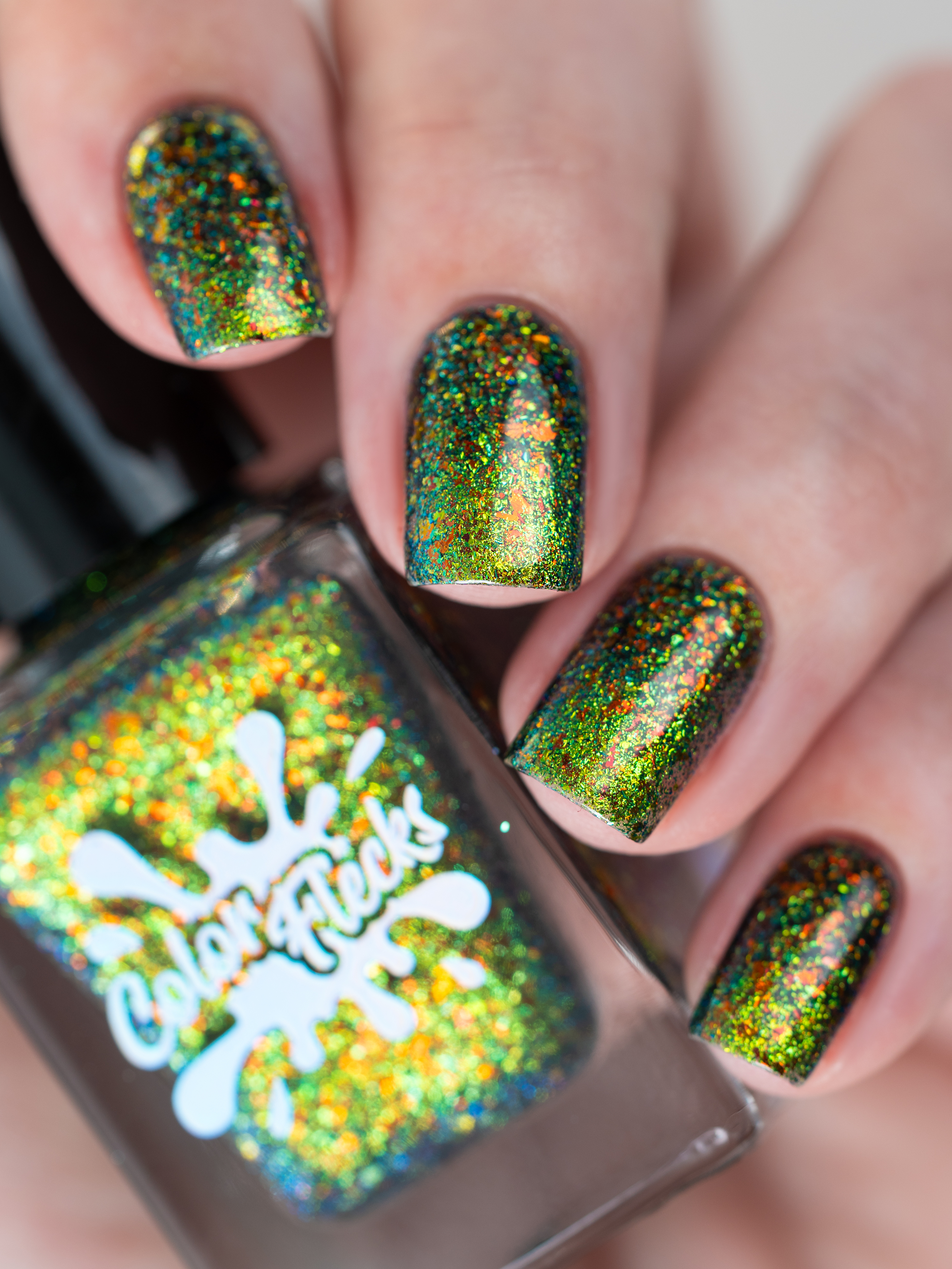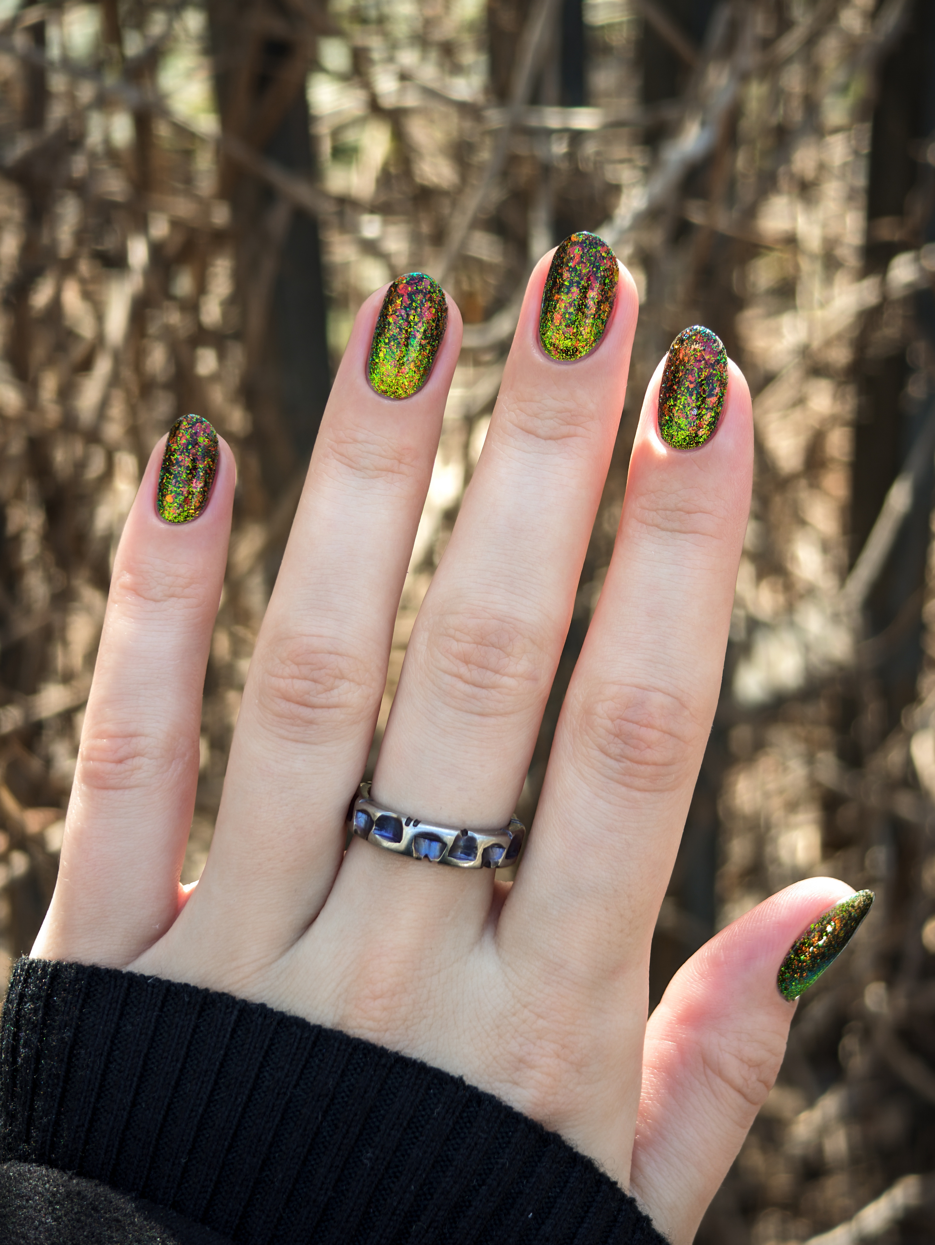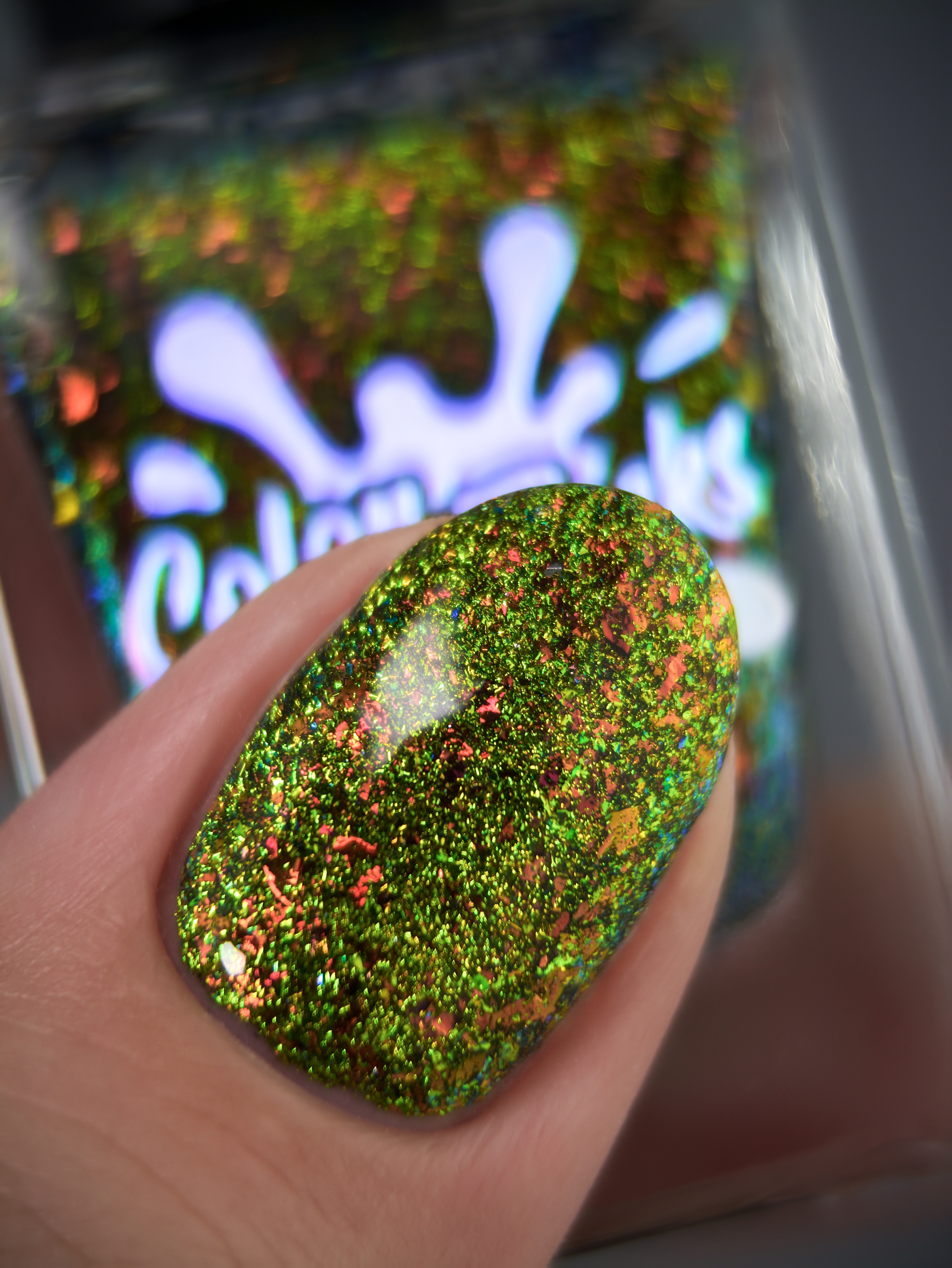 Салатово-зелено-голубые магнитные хлопья и красно-оранжево-золотая слюда