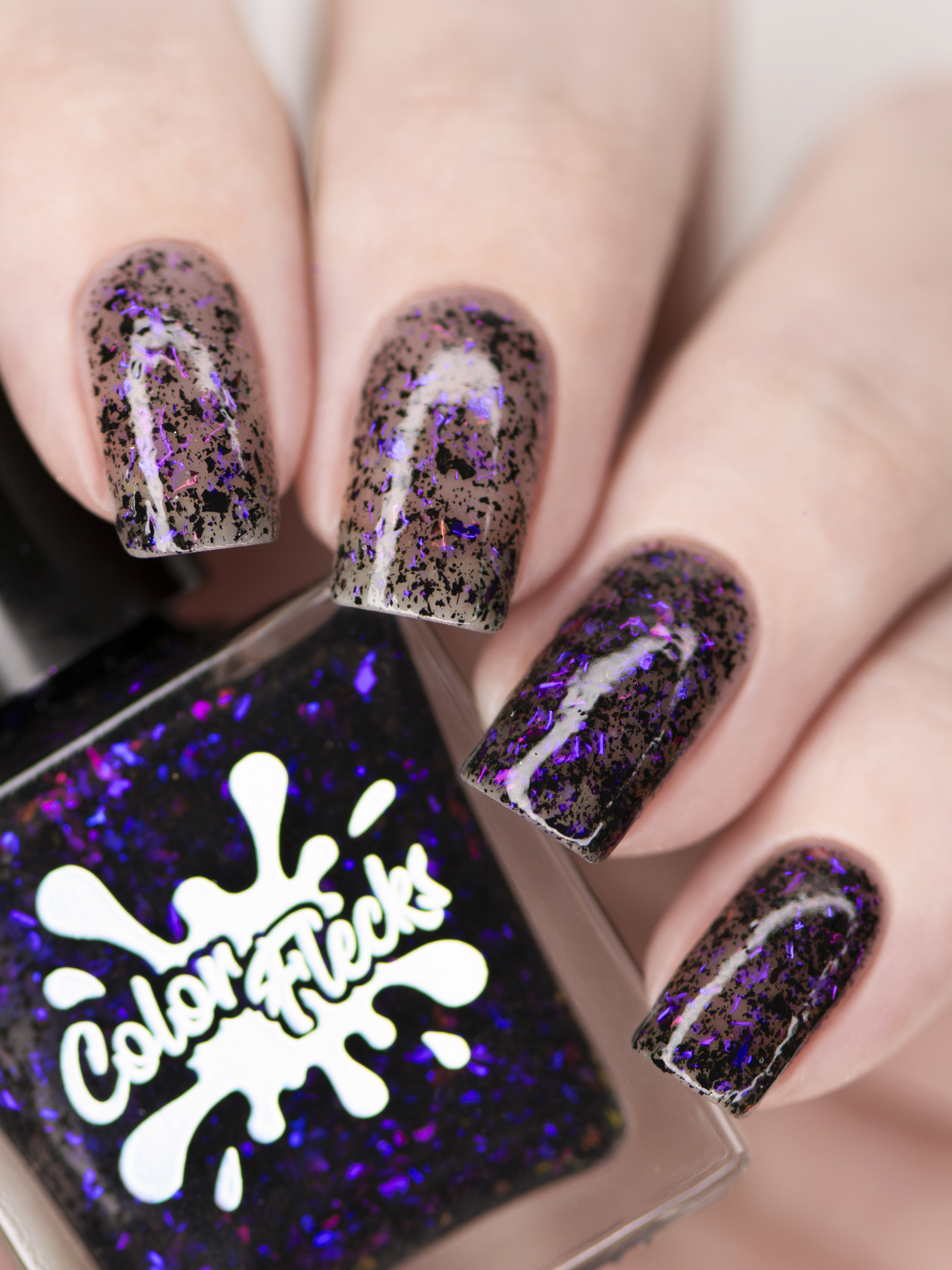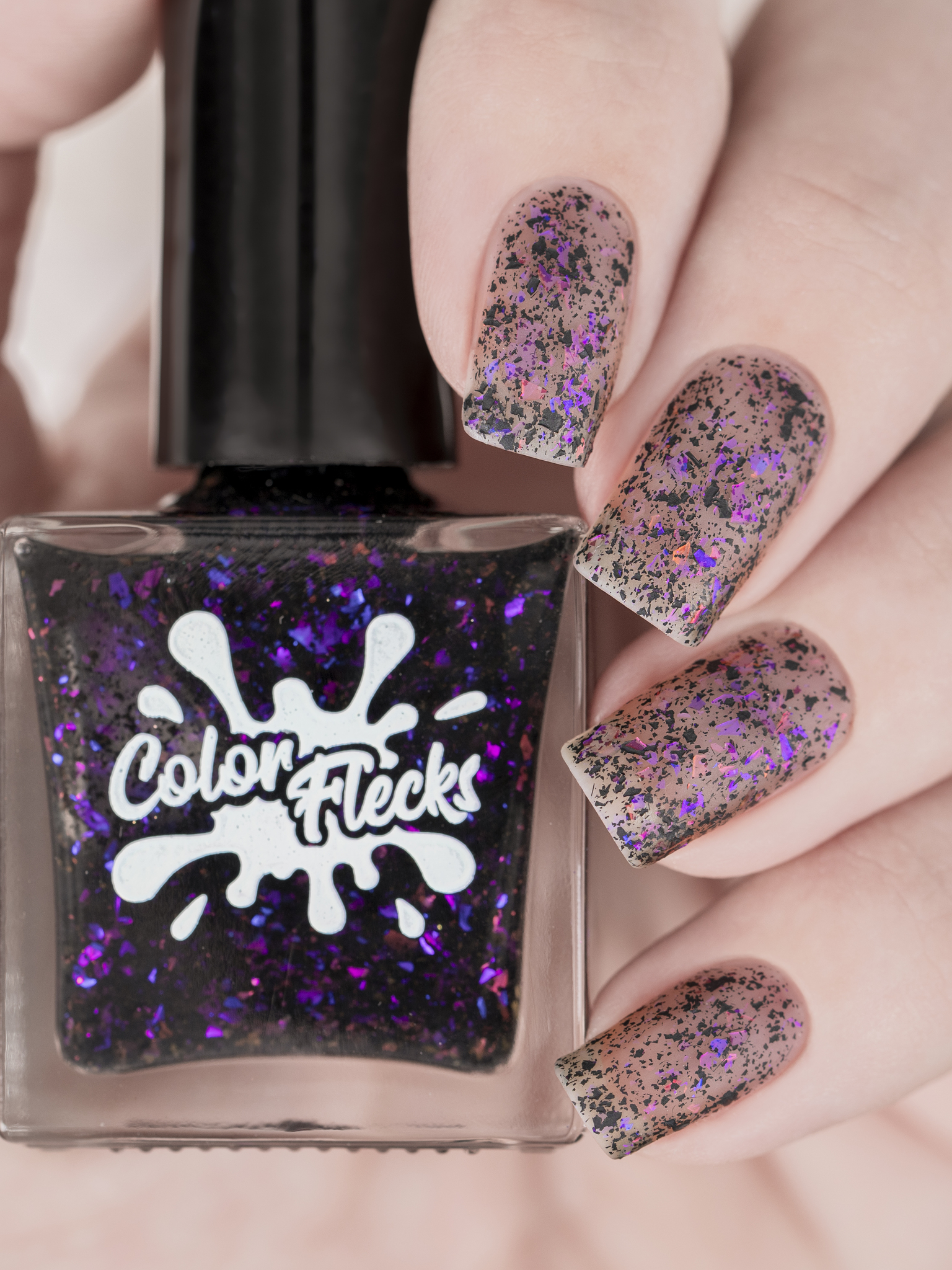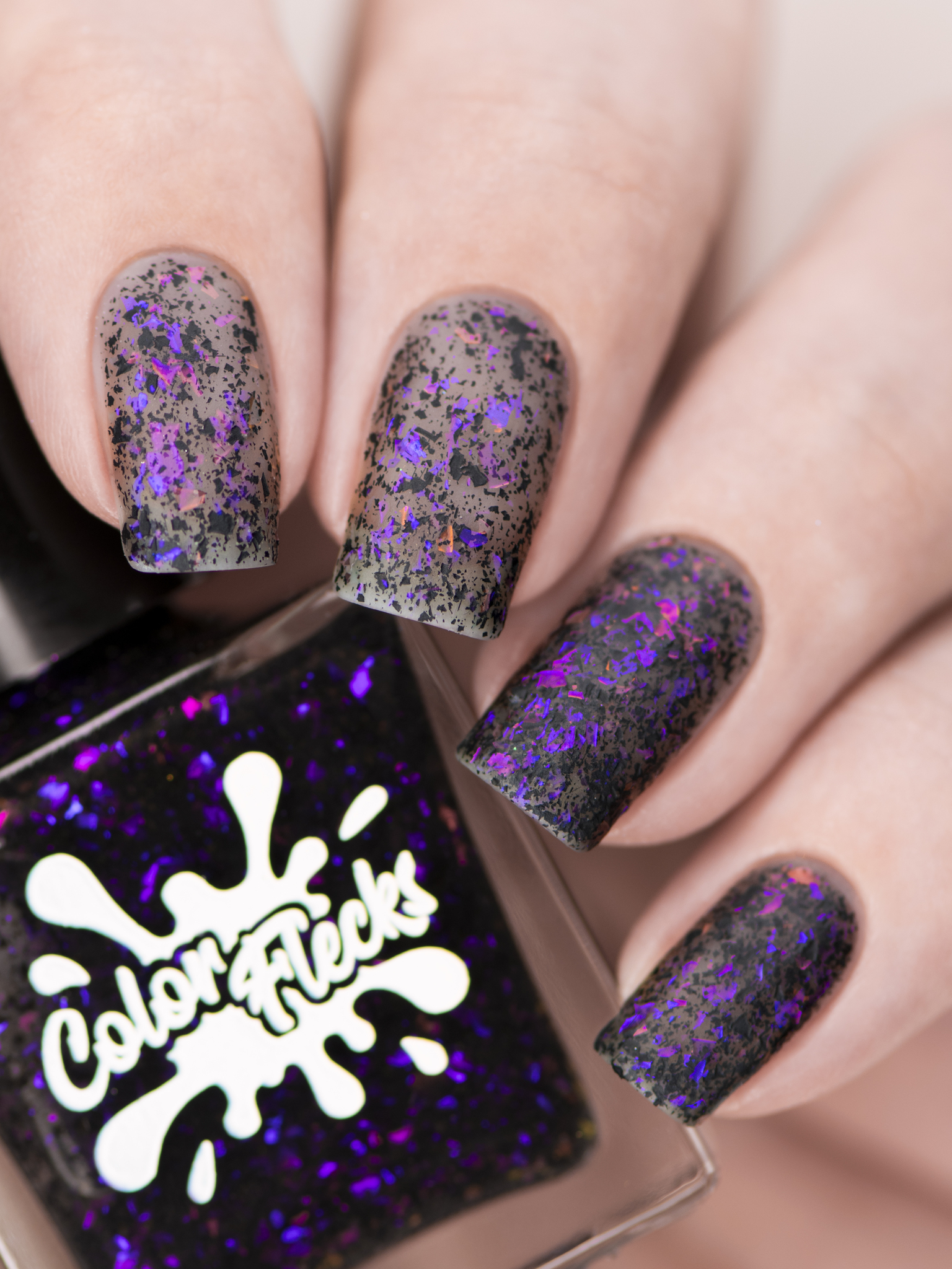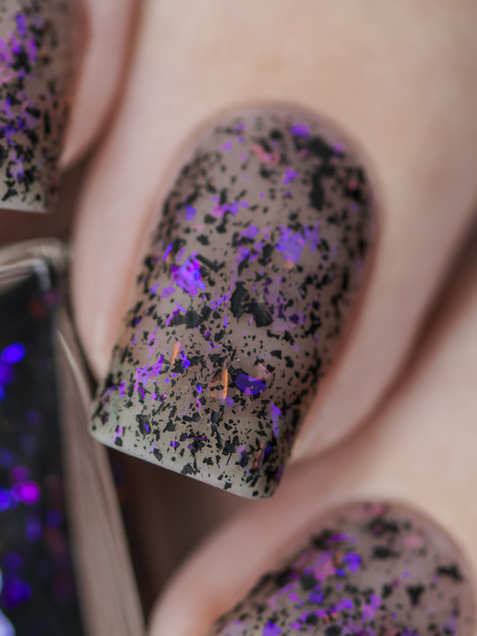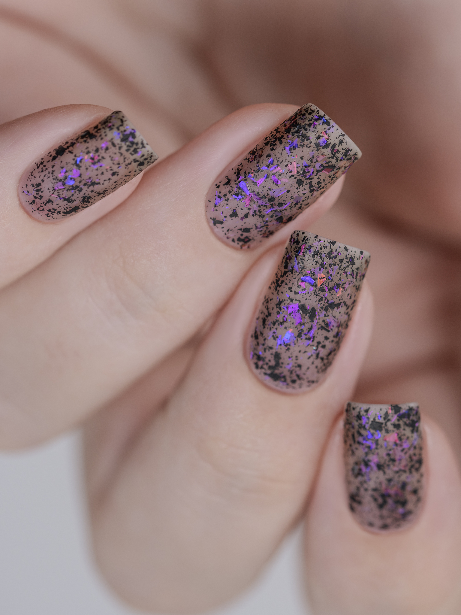 Черная металлизированная и мультихромная фиолетово-розово-красная слюда в слегка подкрашенной черным матовой базе