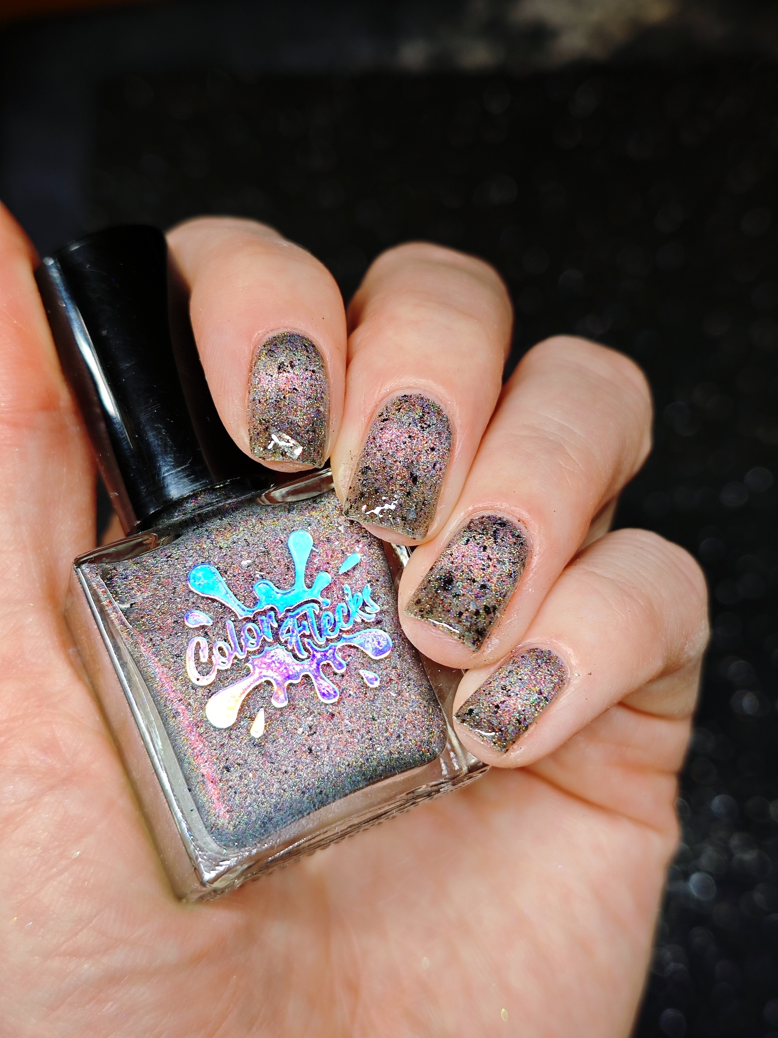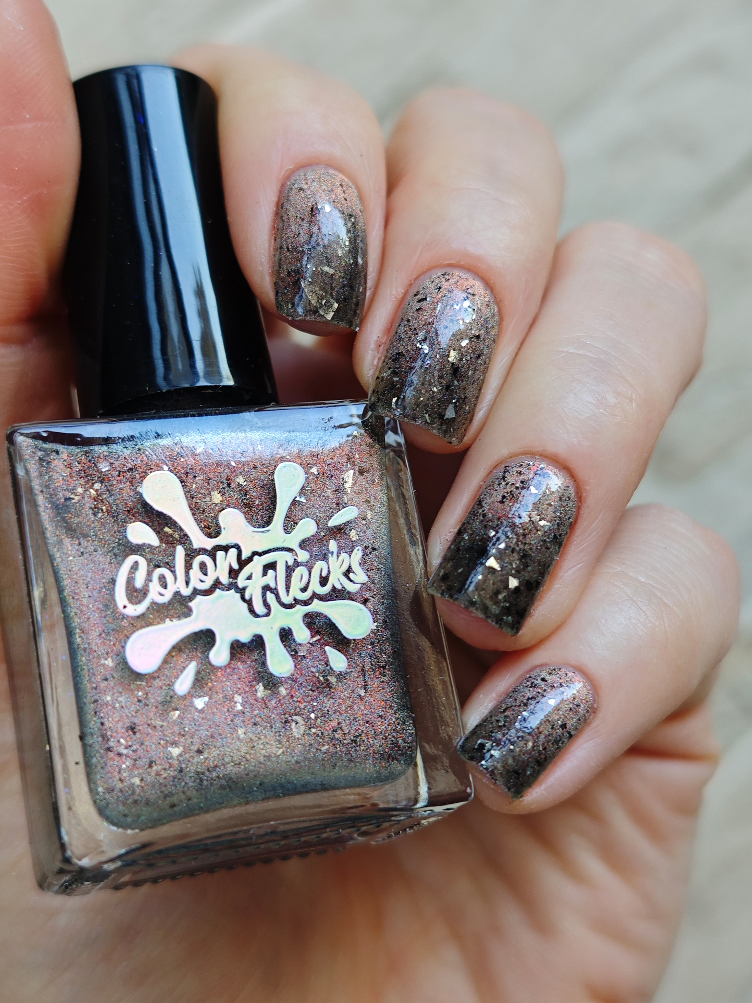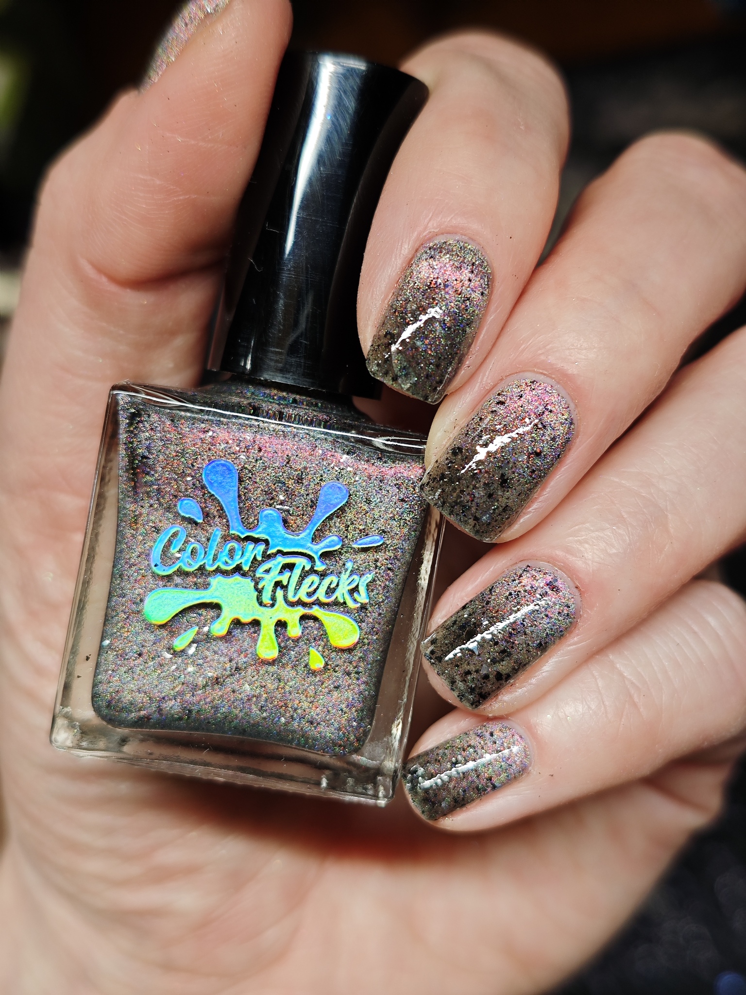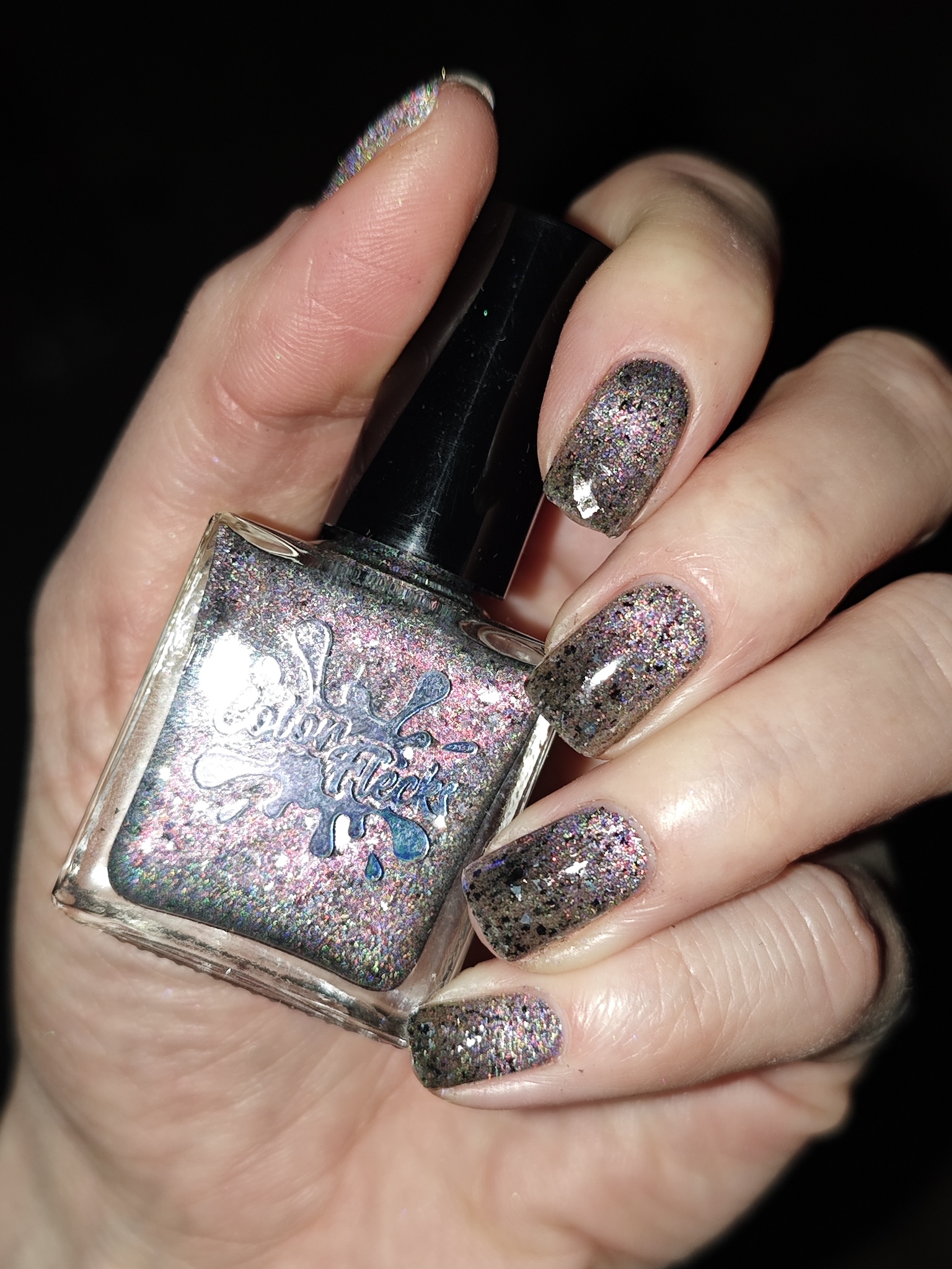 Голографический и оранжево-желтый магниты с черной металлизированной и серебристой слюдой в прозрачной базе.
