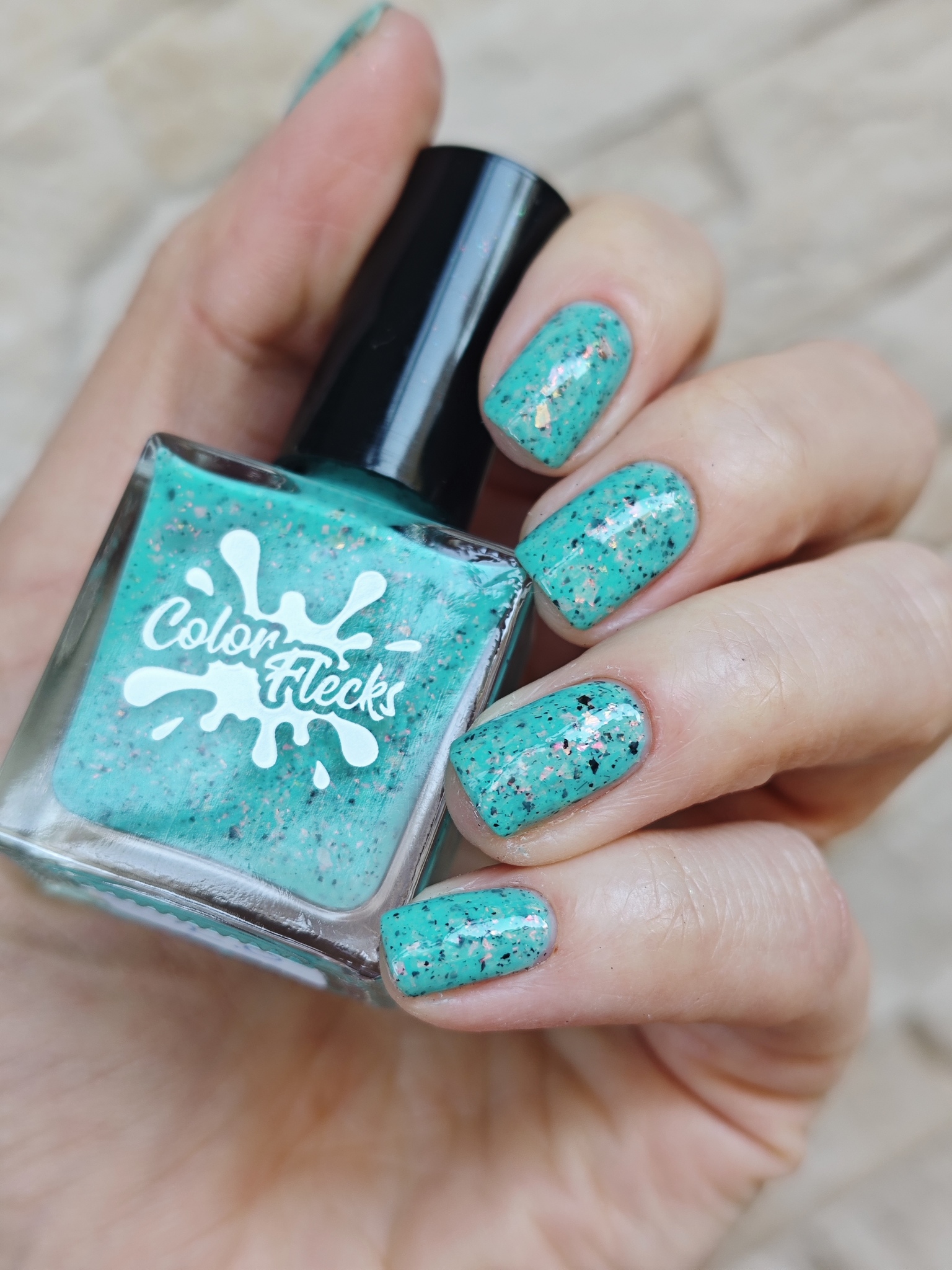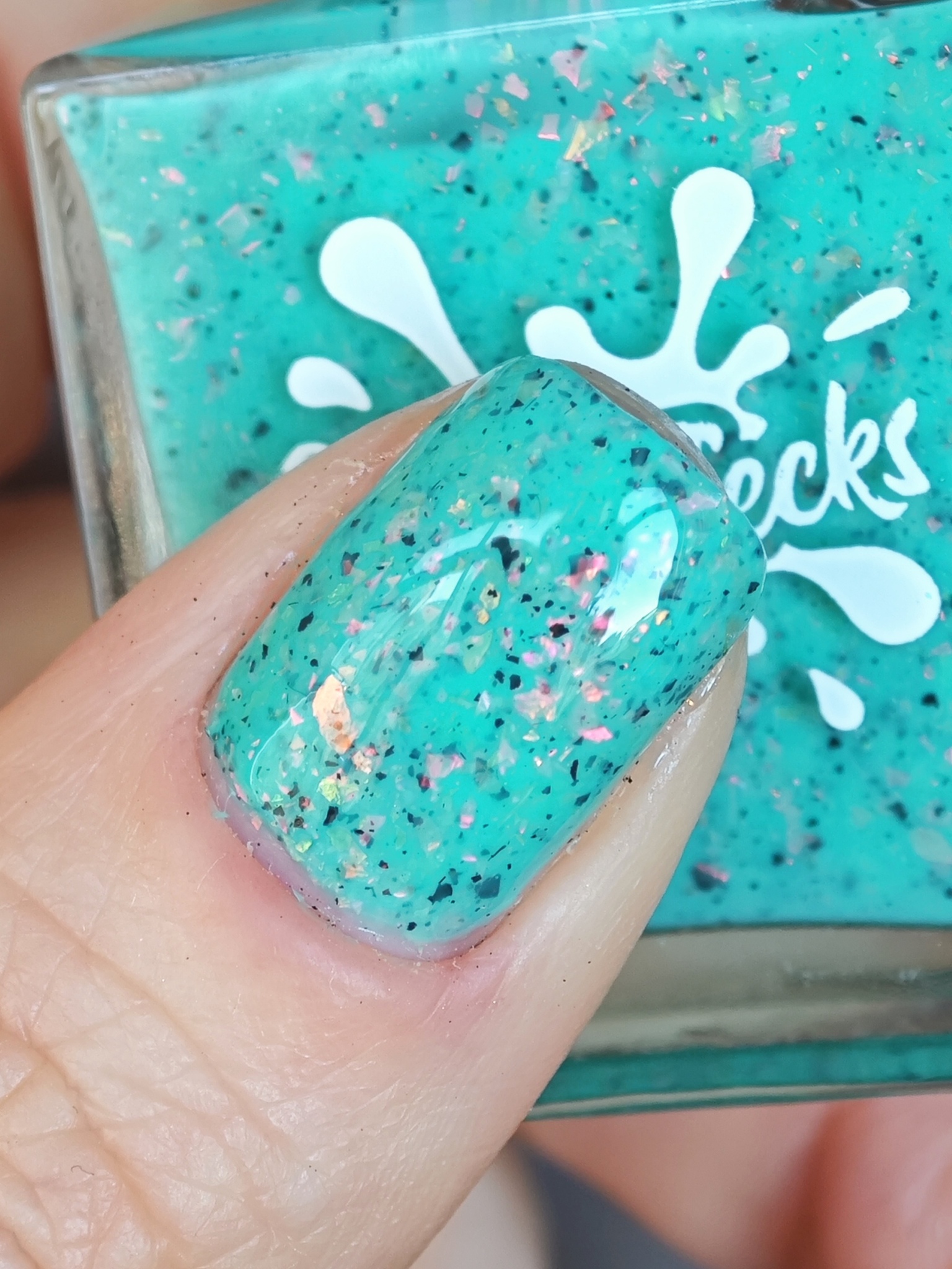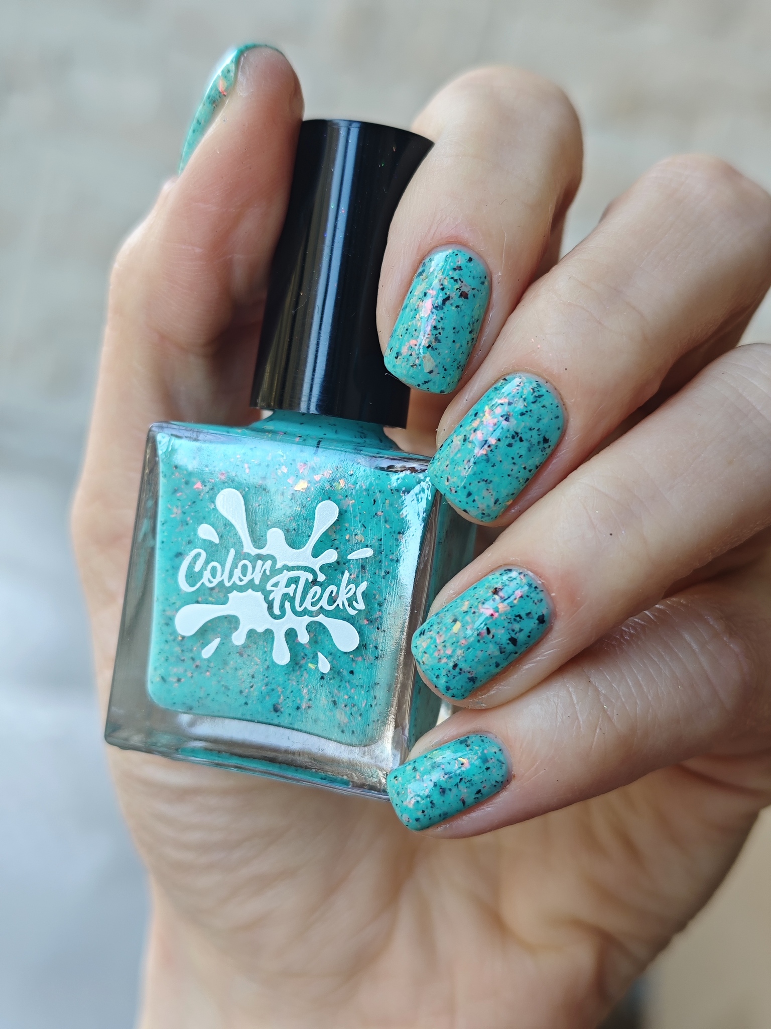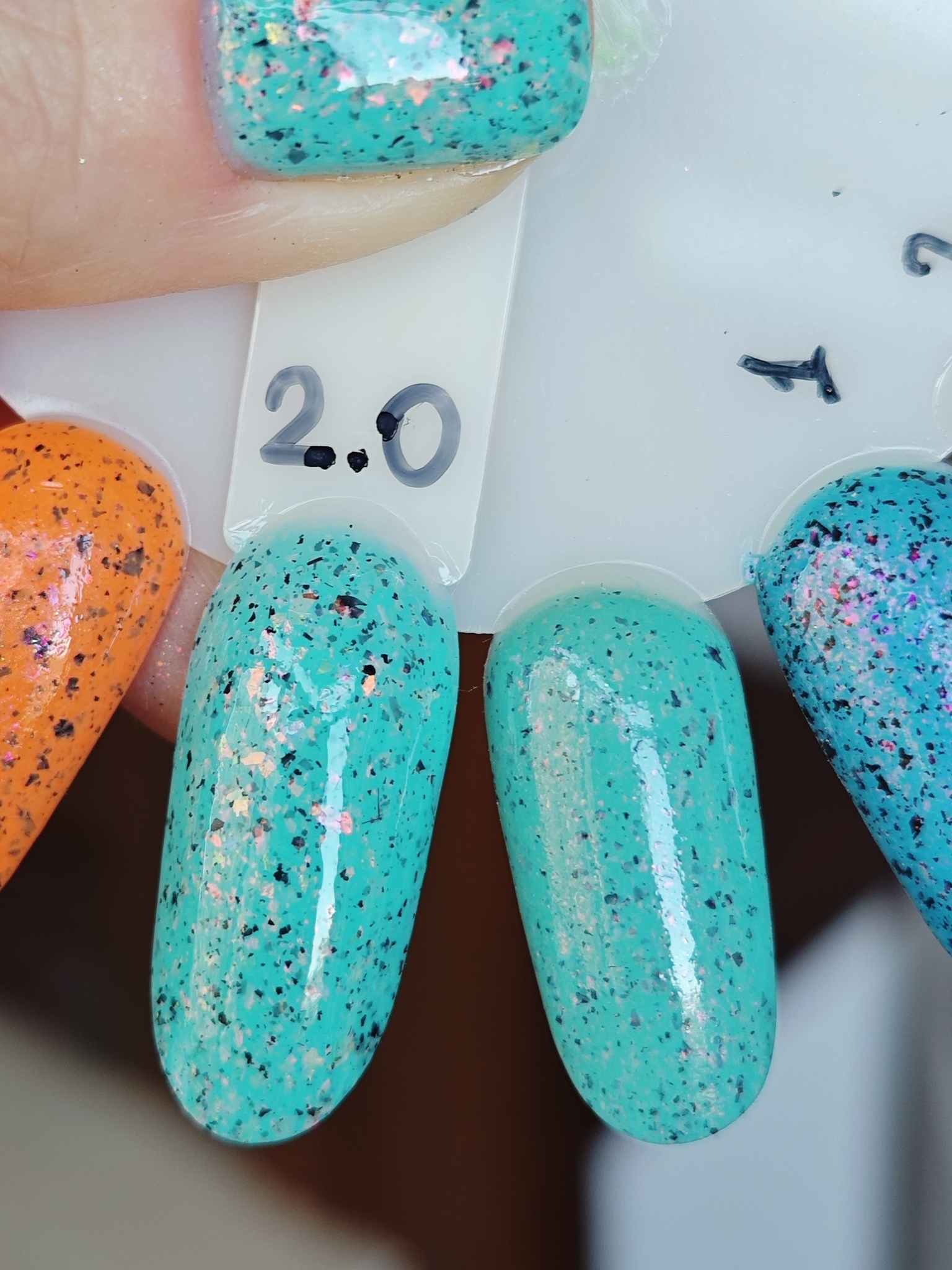 Бирюзово-голубой пастельный неон с желто-оранжево-розовой слюдой и черной поталью