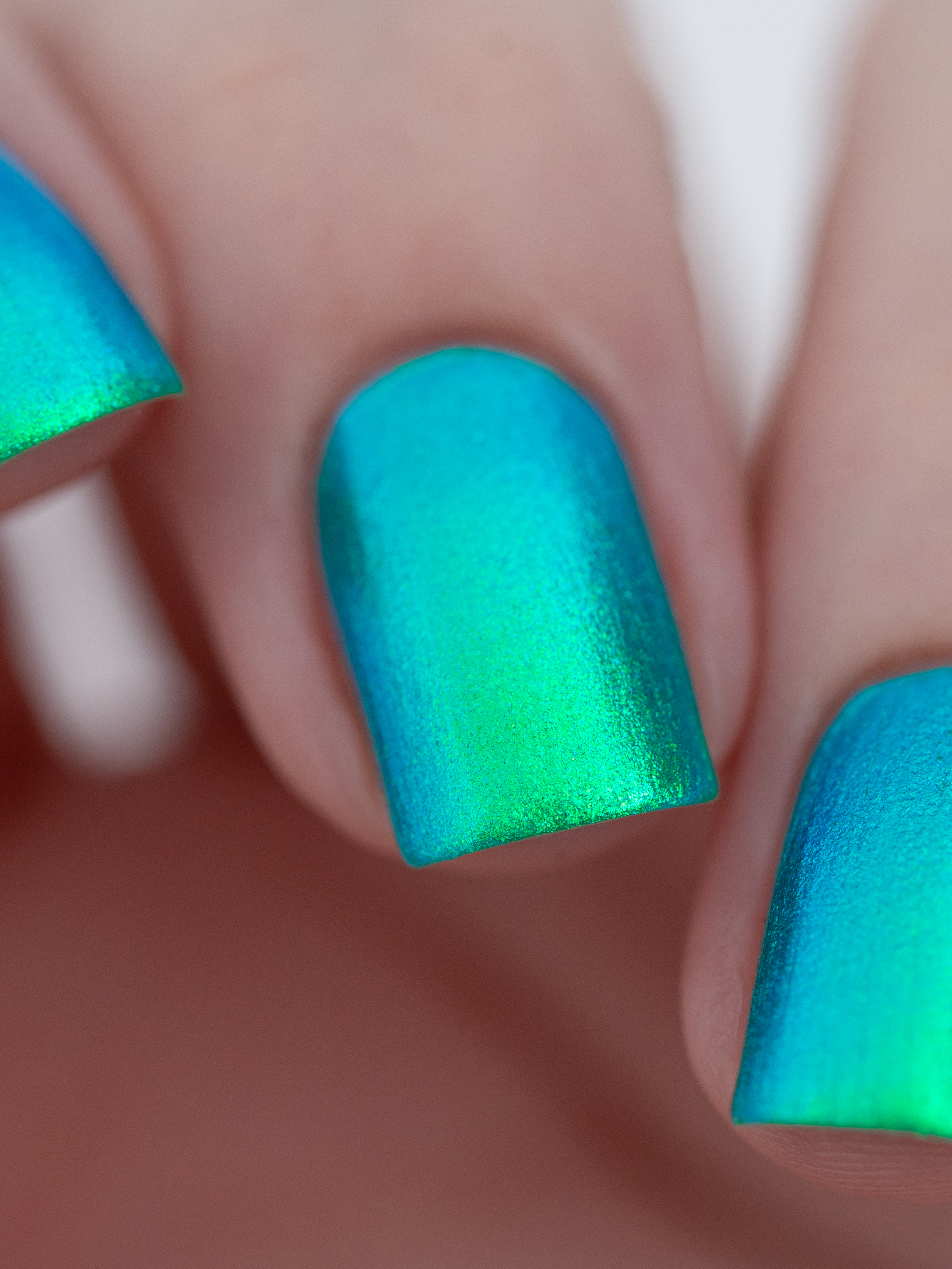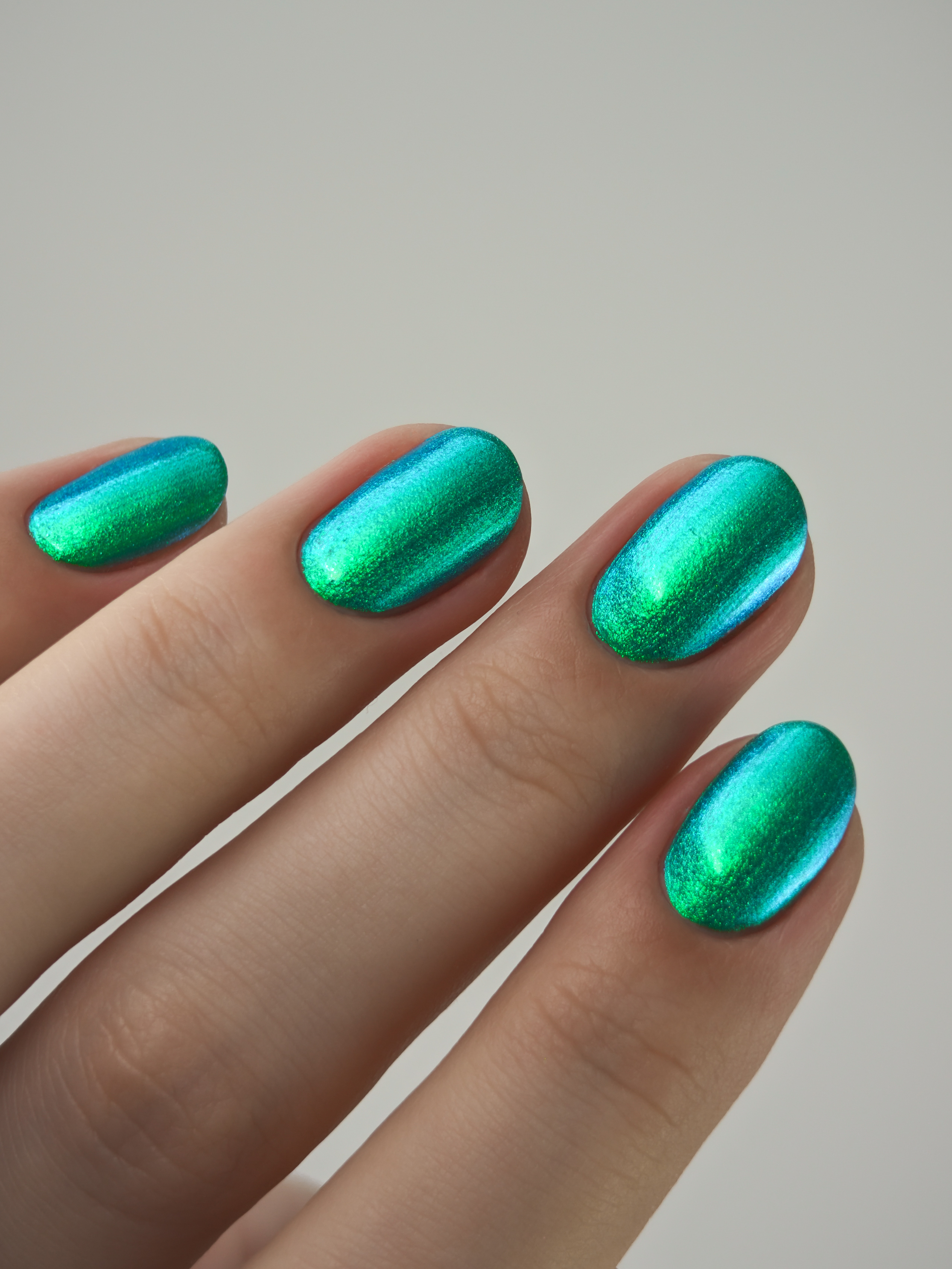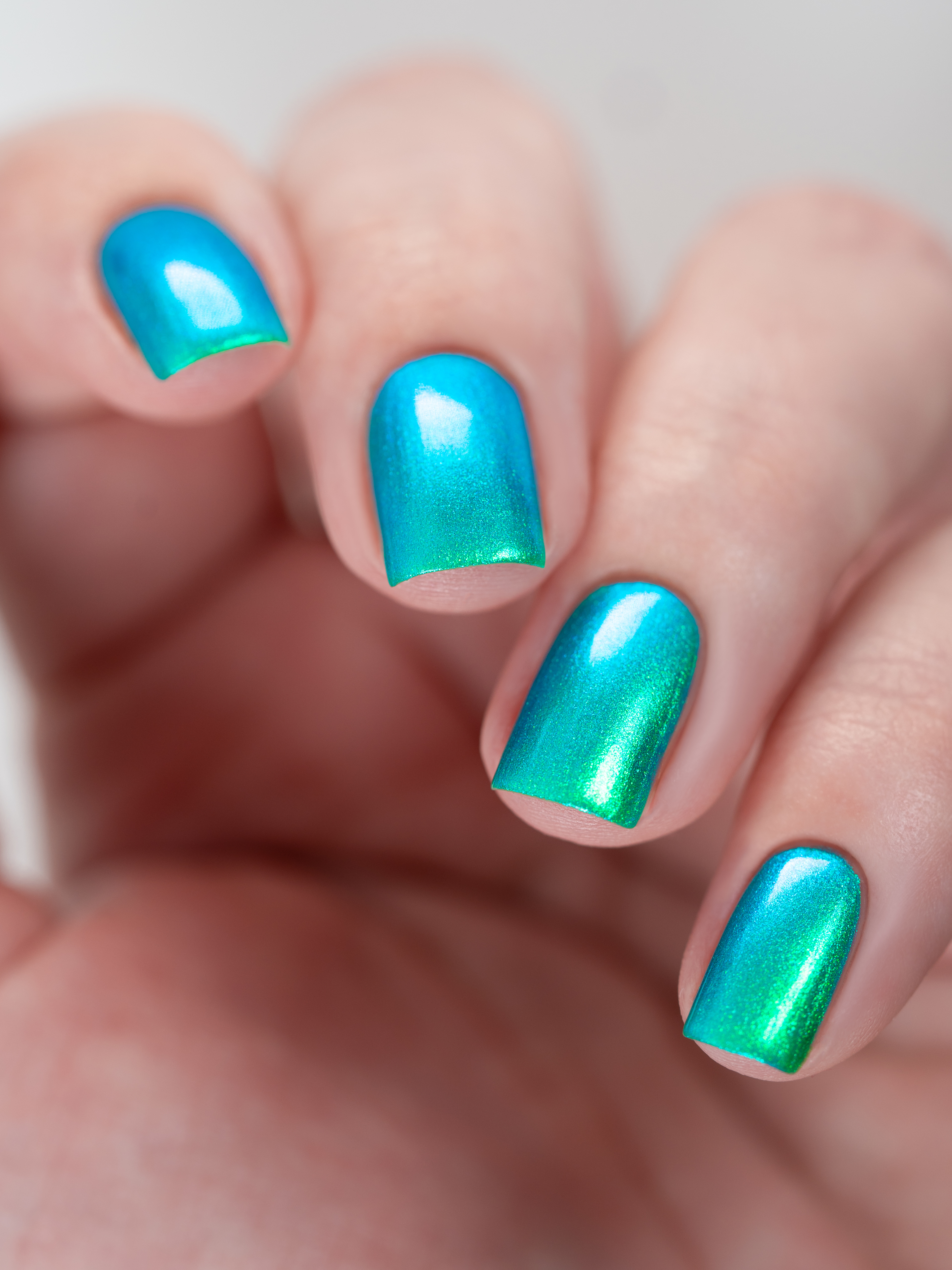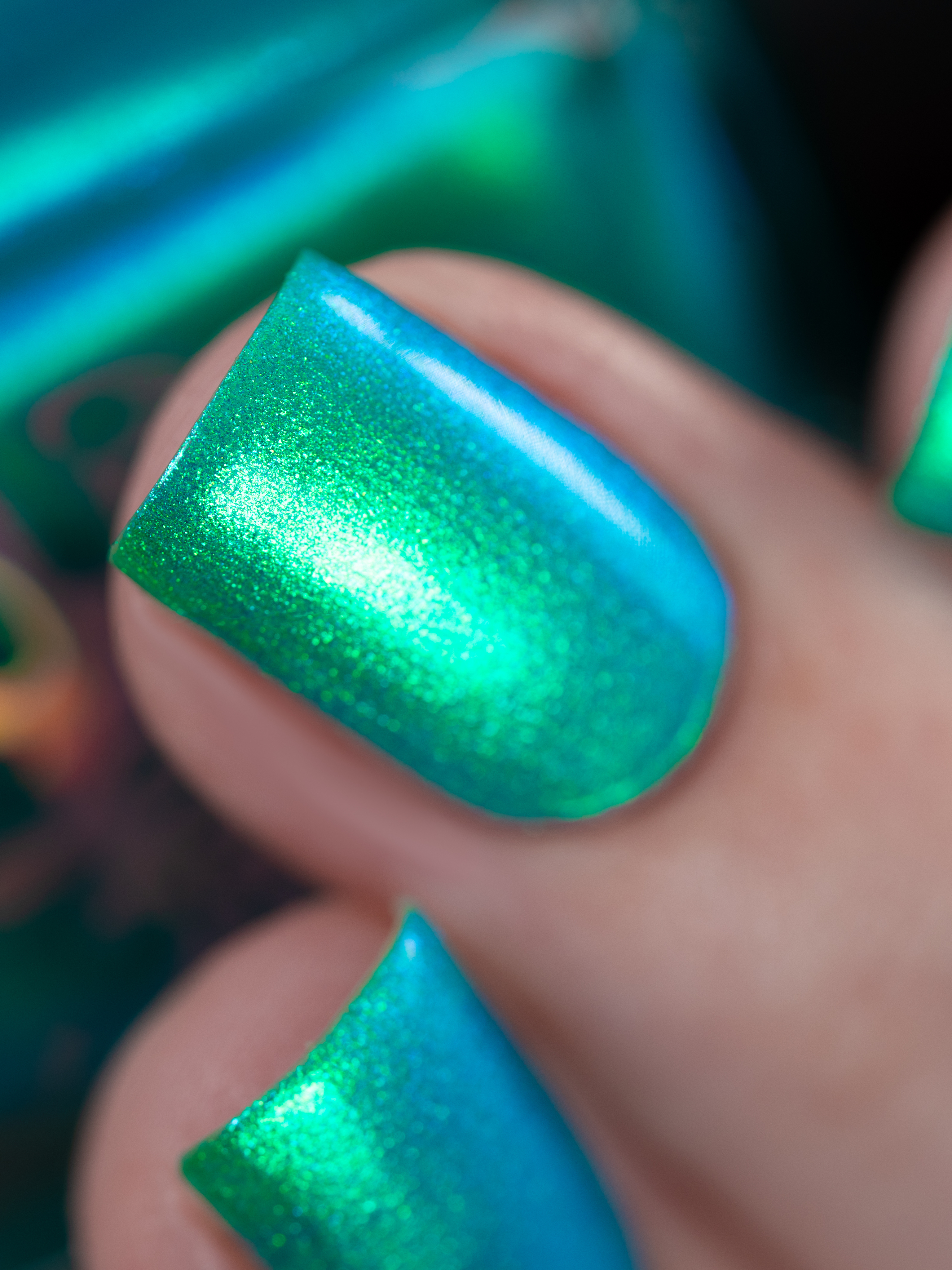 Множество яркого зелено-синего шиммера в полупрозрачной зелёной базе