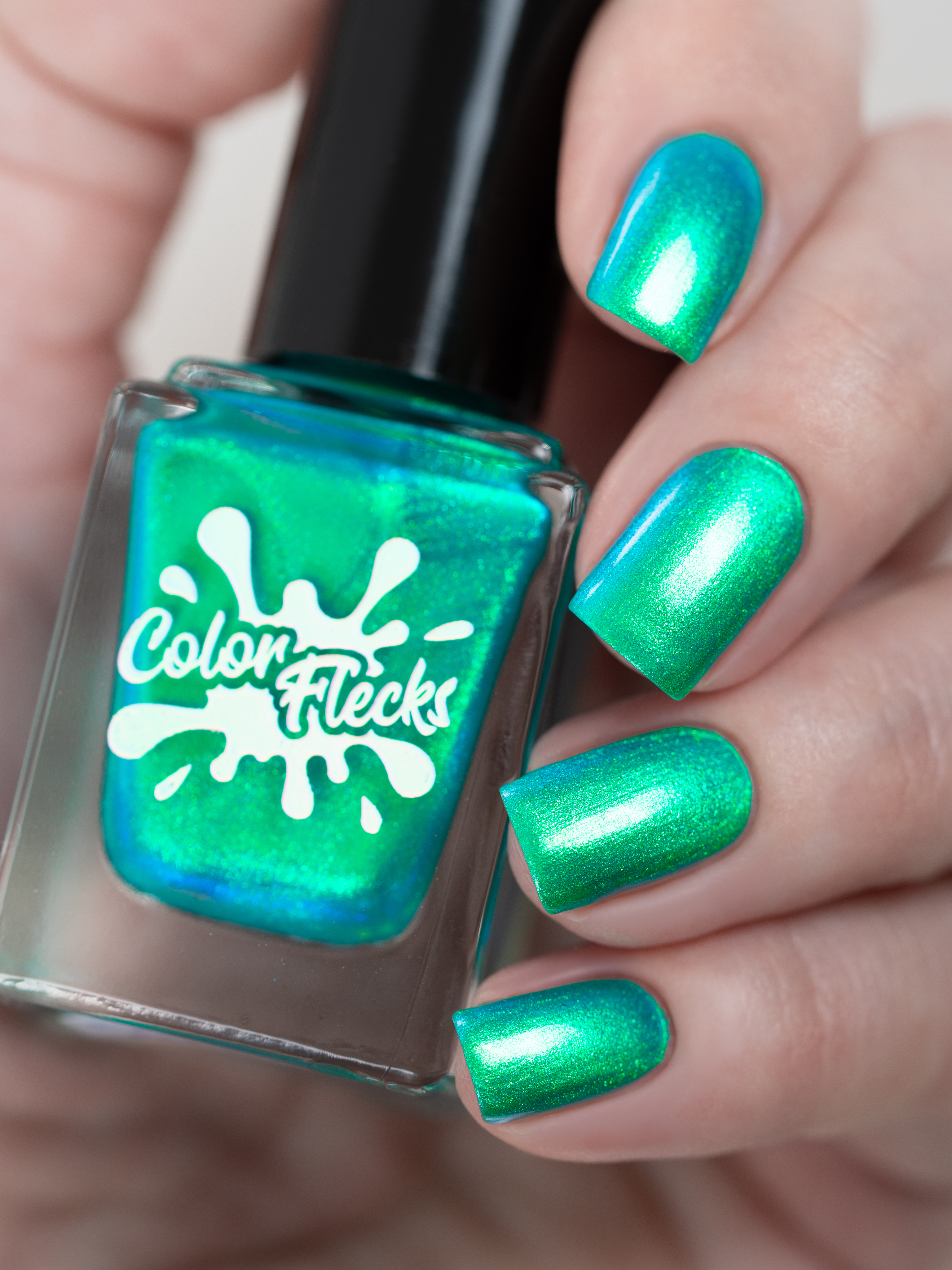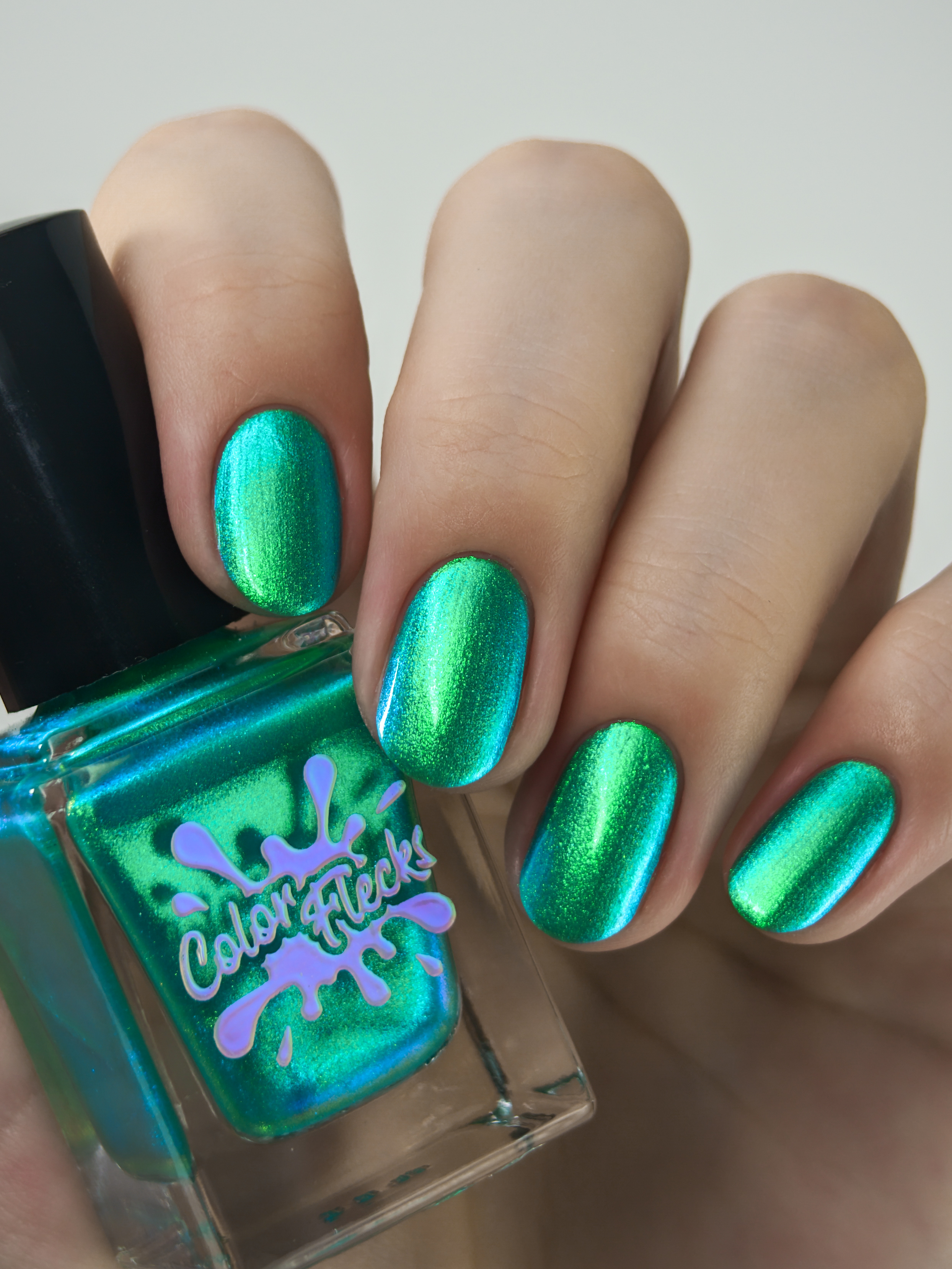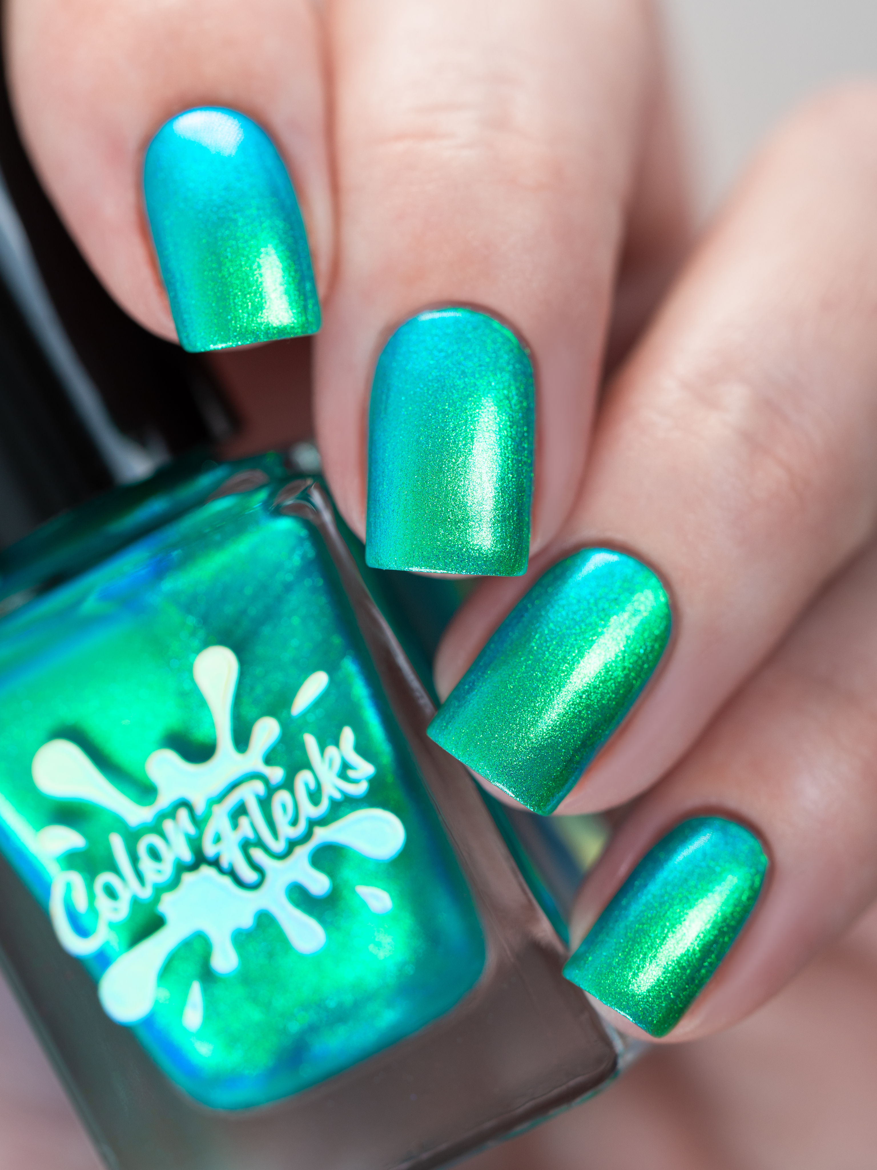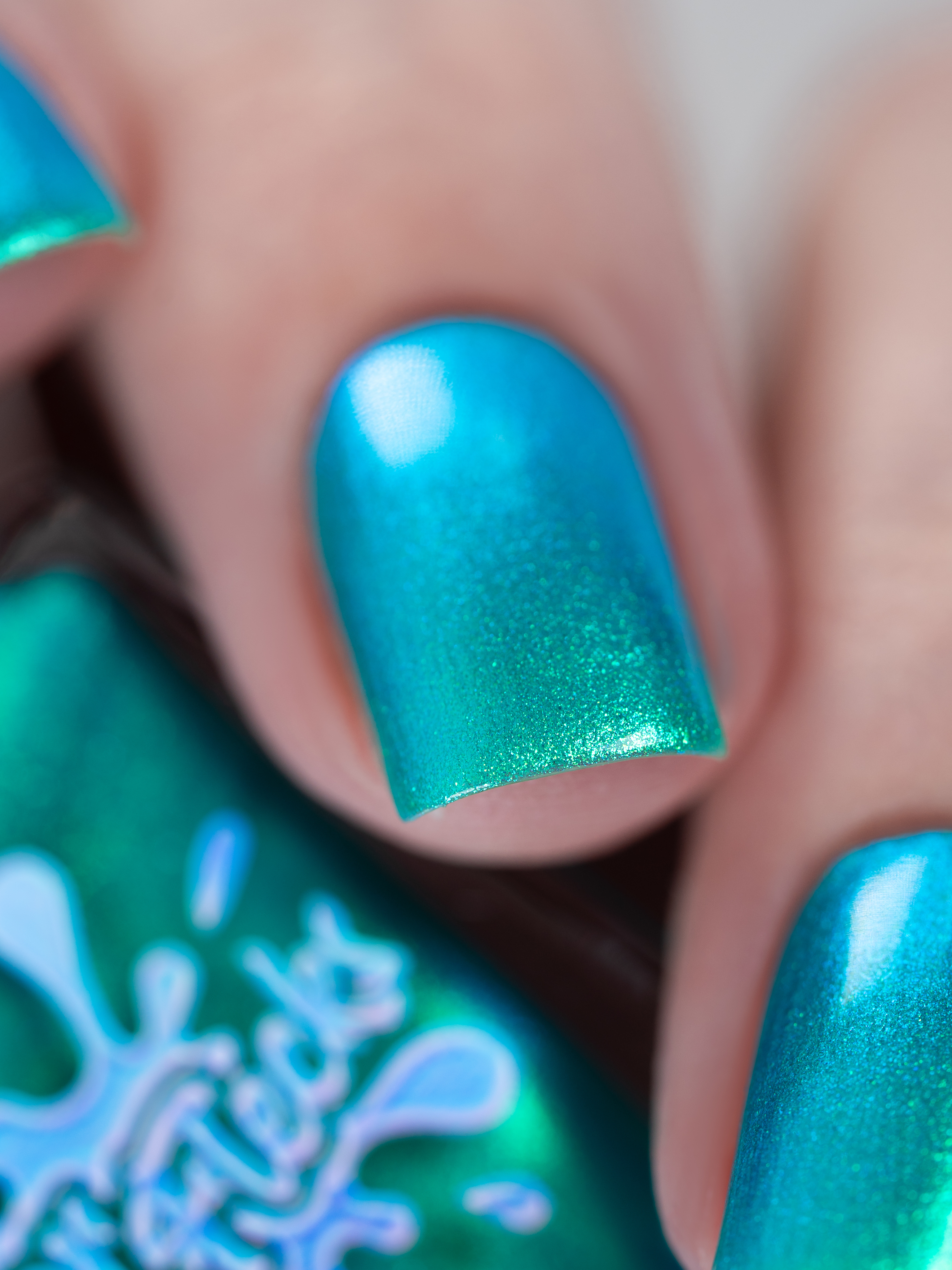 Множество яркого зелено-синего шиммера в полупрозрачной зелёной базе