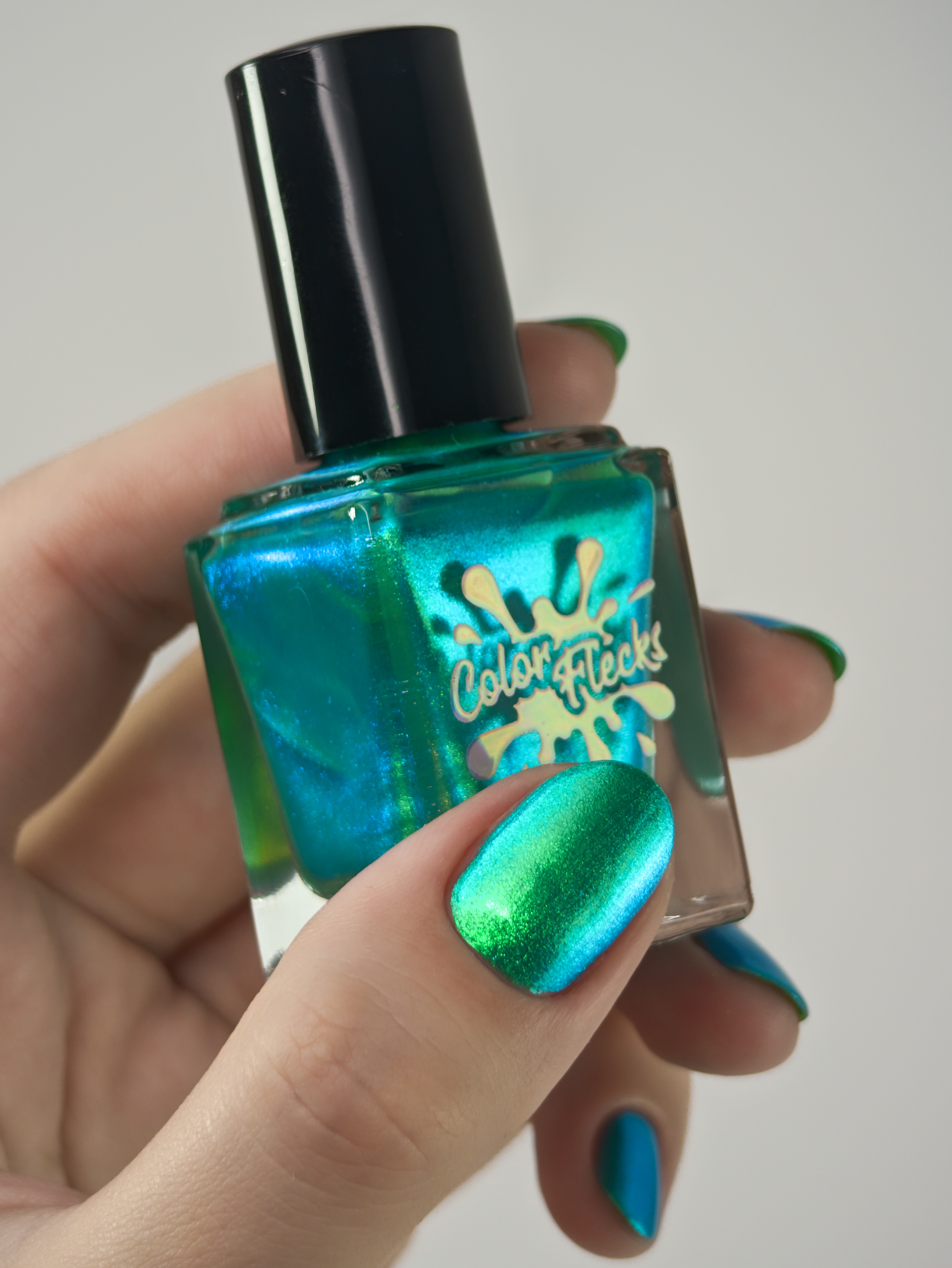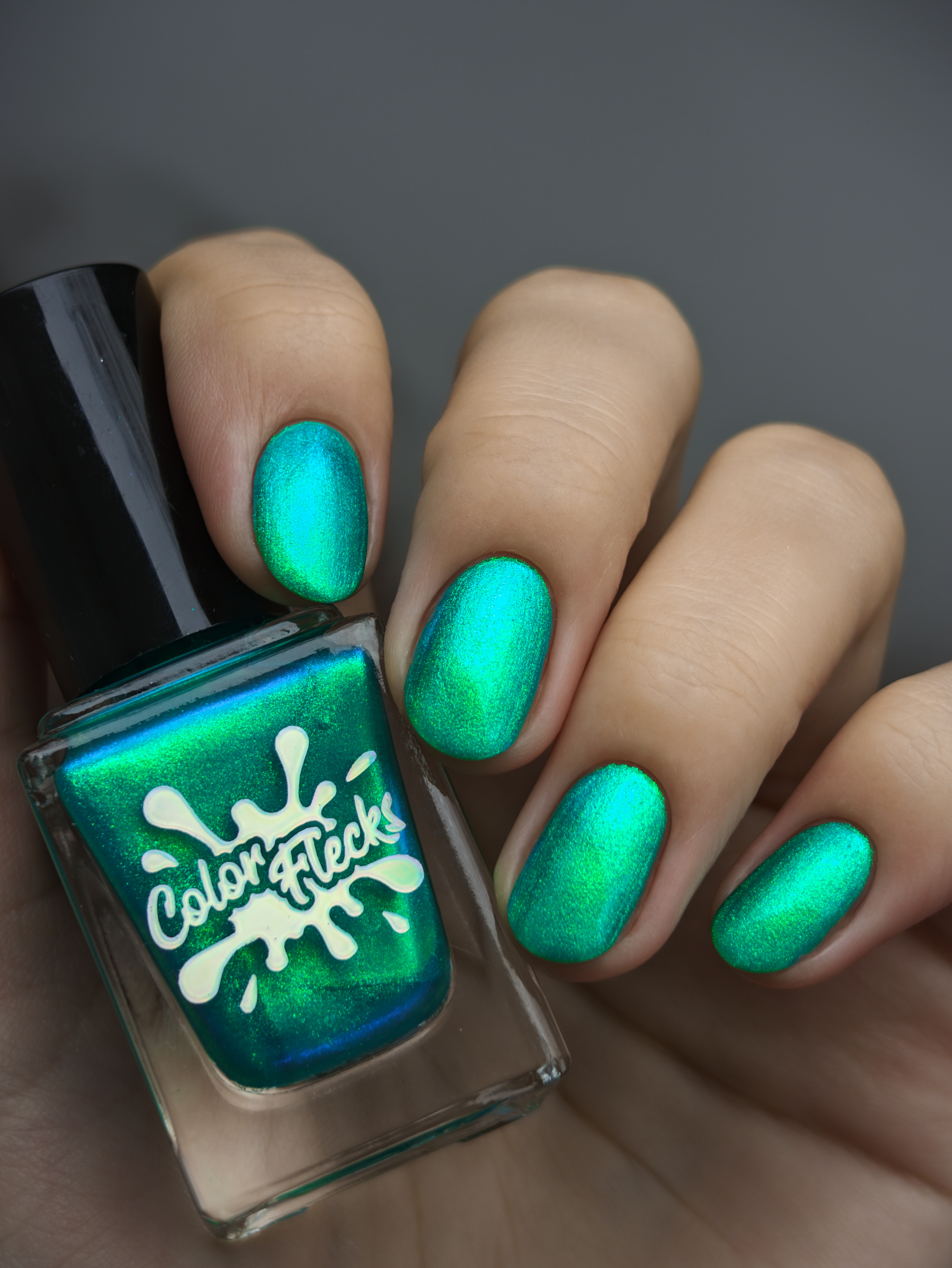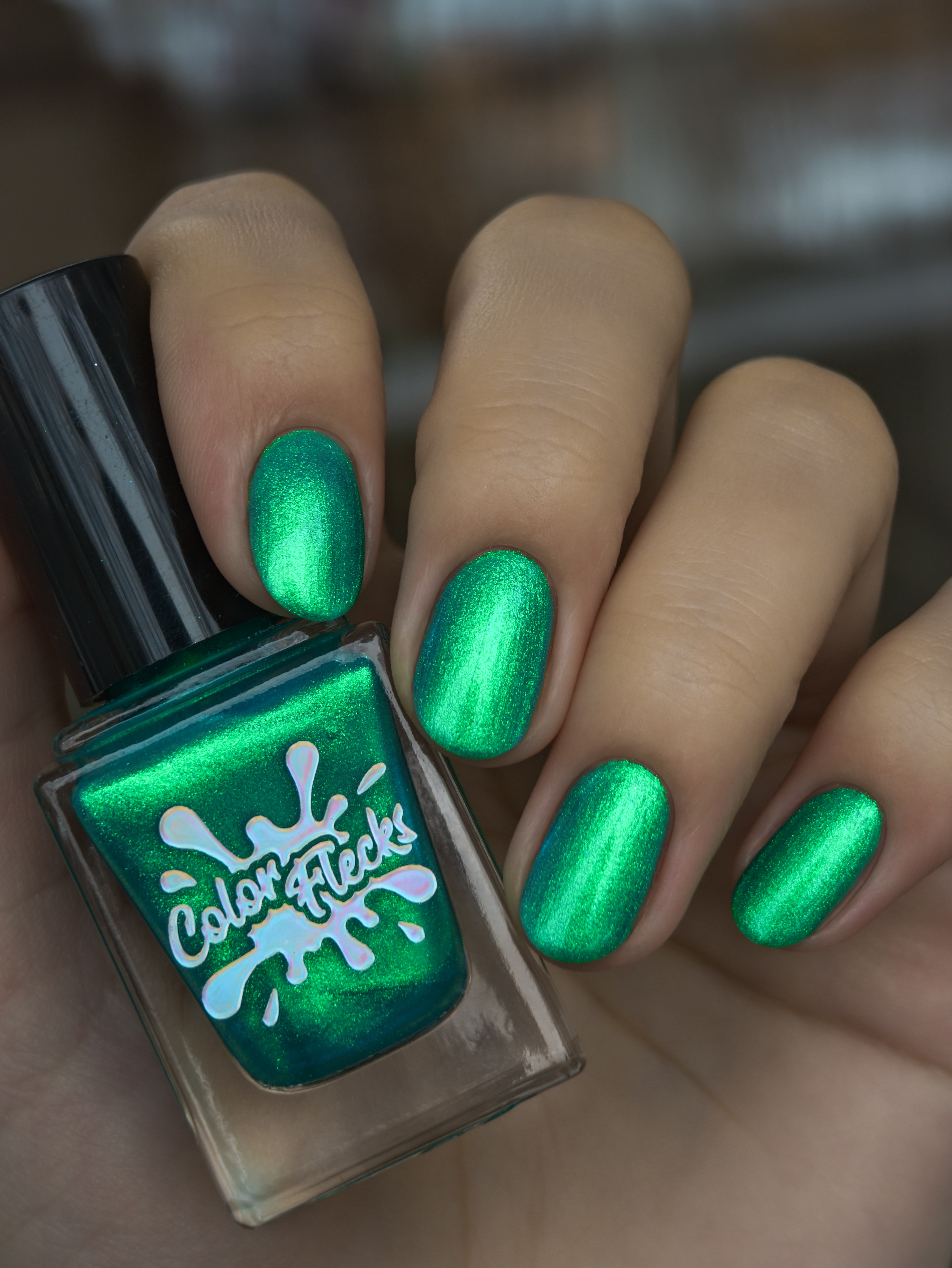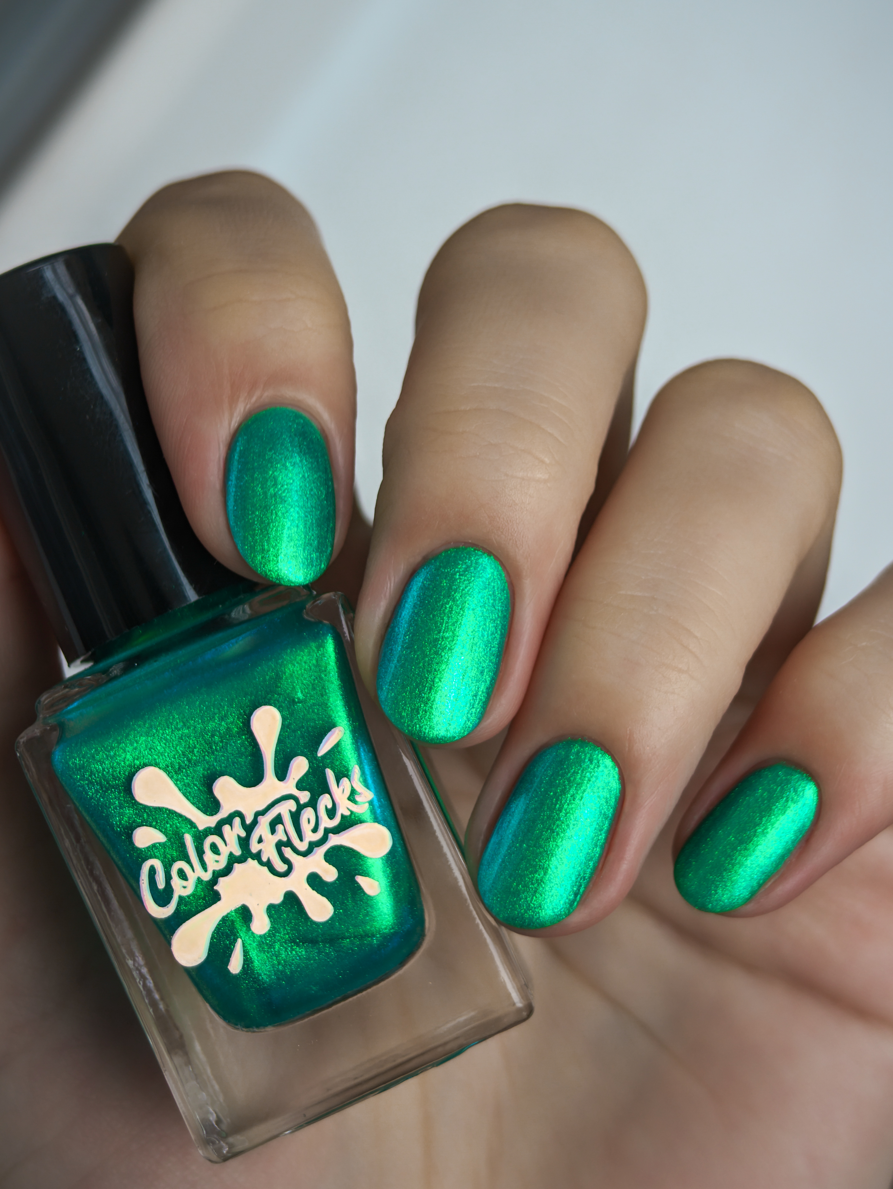 Множество яркого зелено-синего шиммера в полупрозрачной зелёной базе