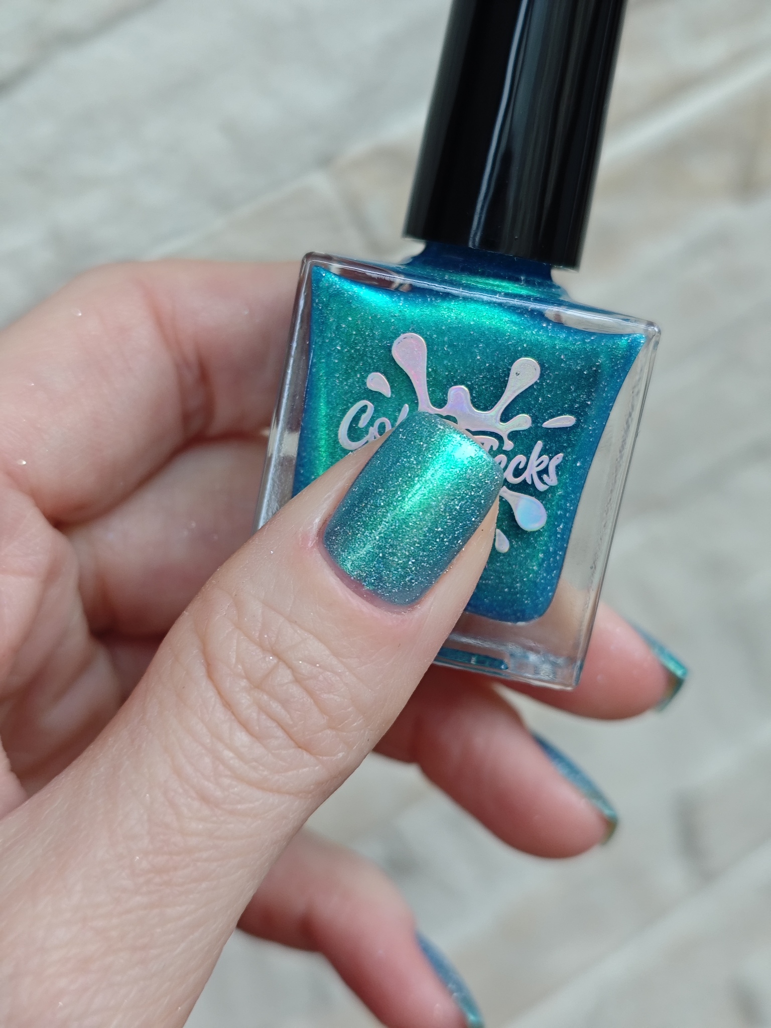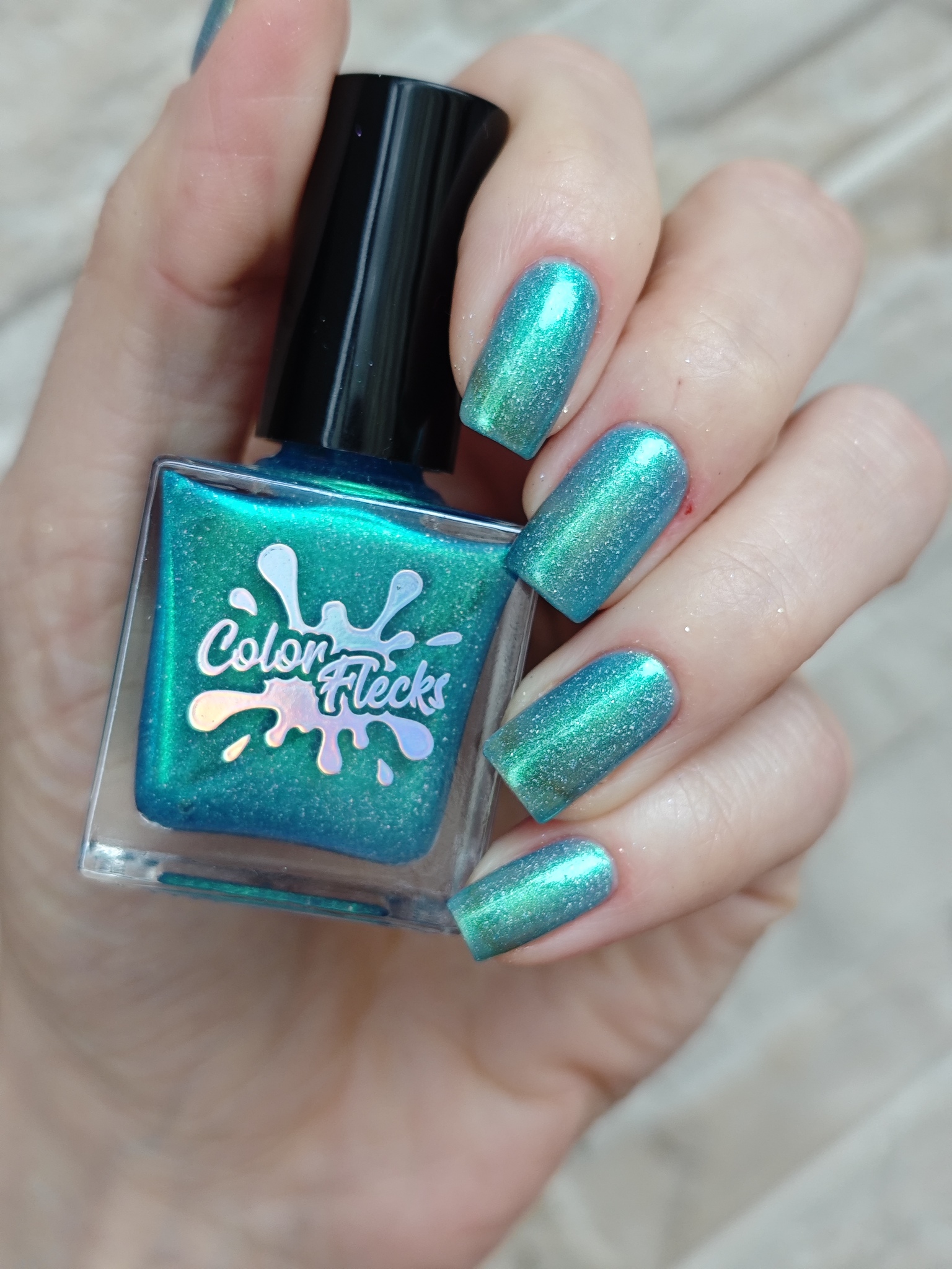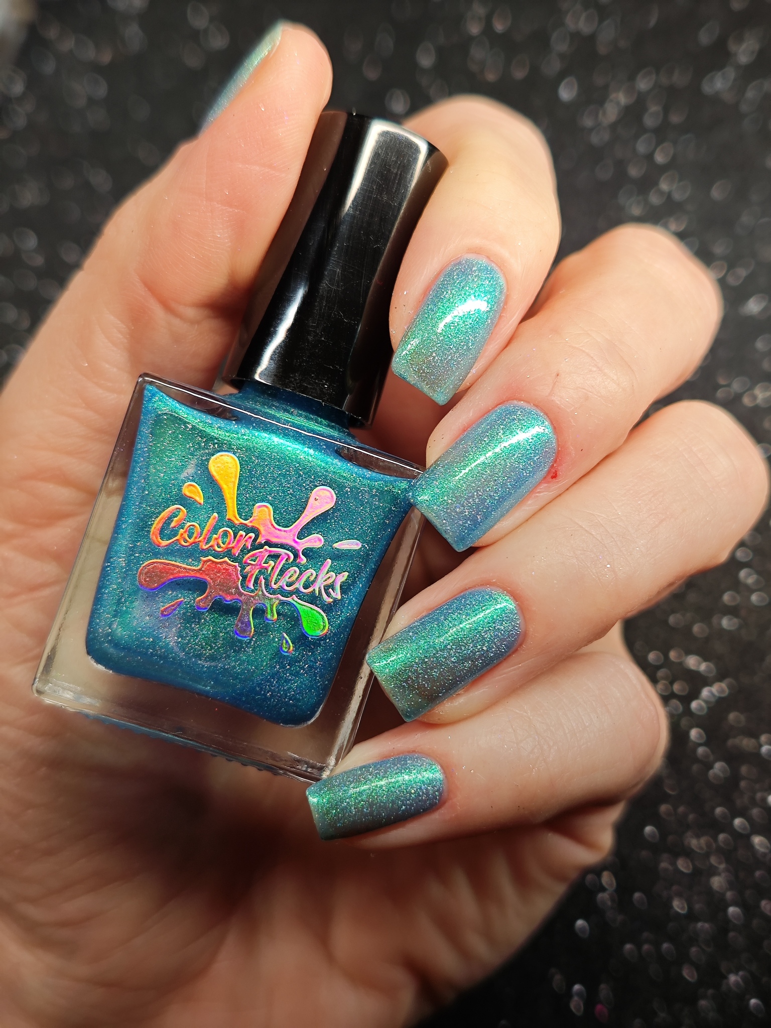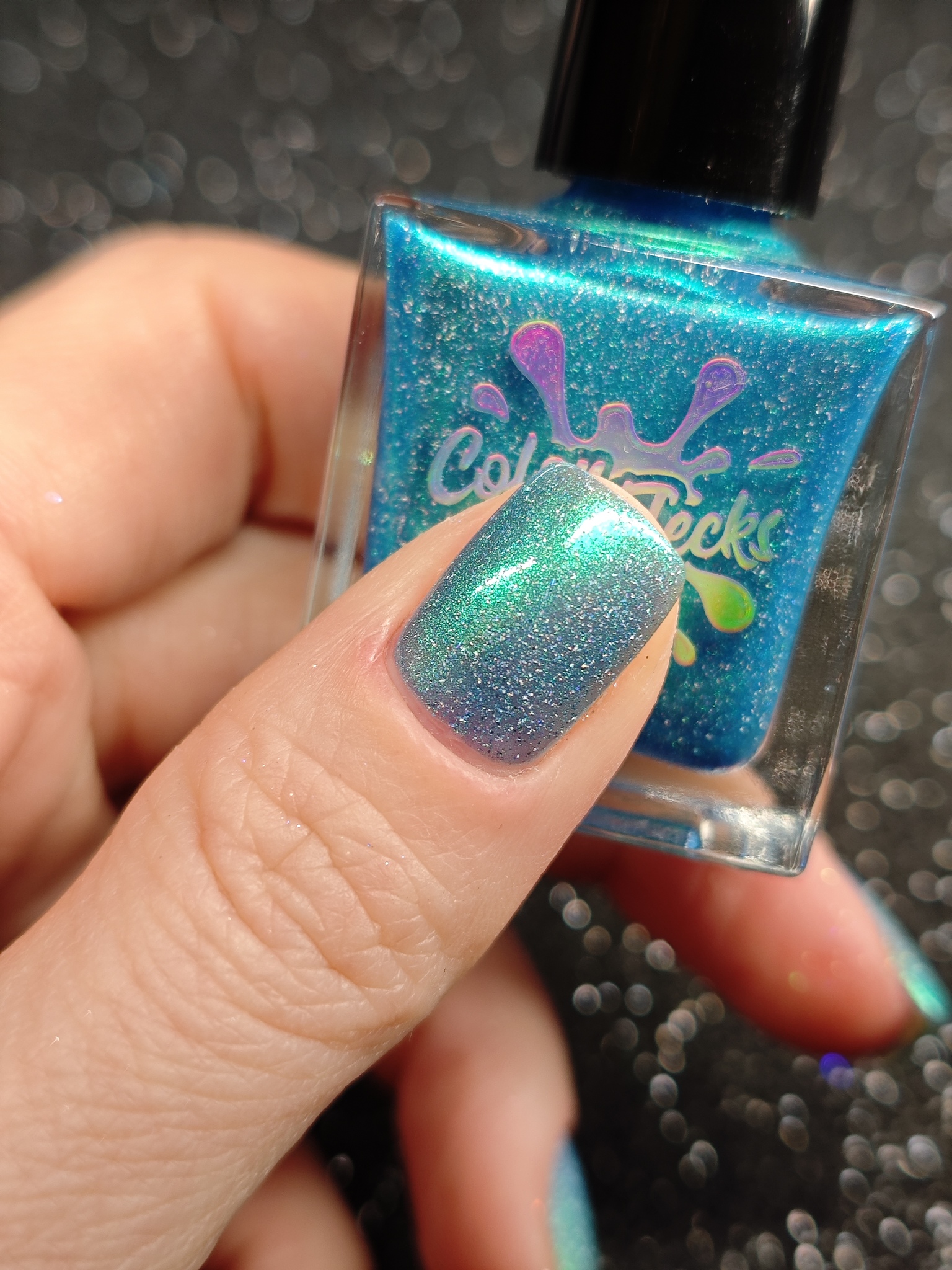 Синее желе с зелёным шиммером и голографическими частицами