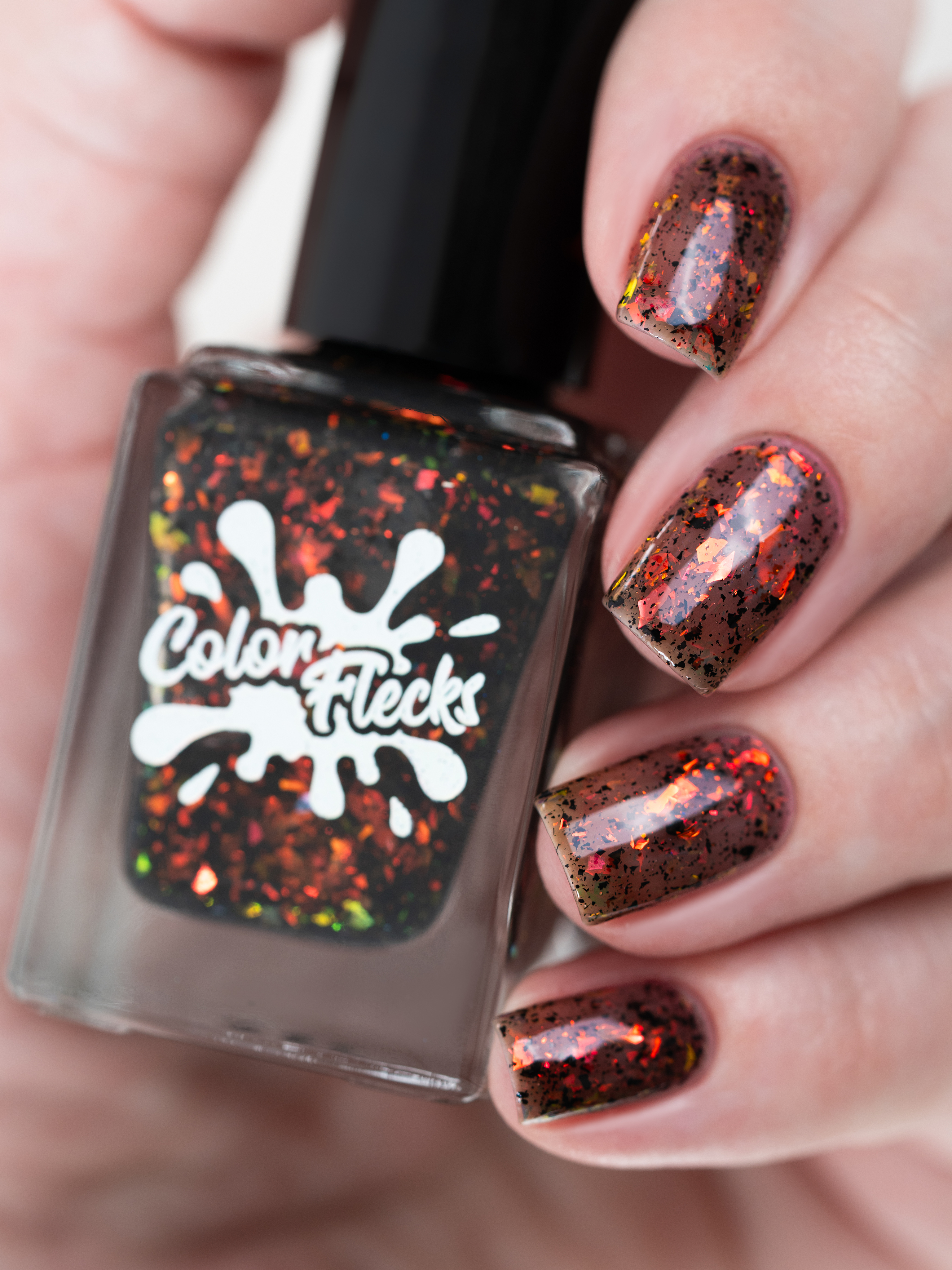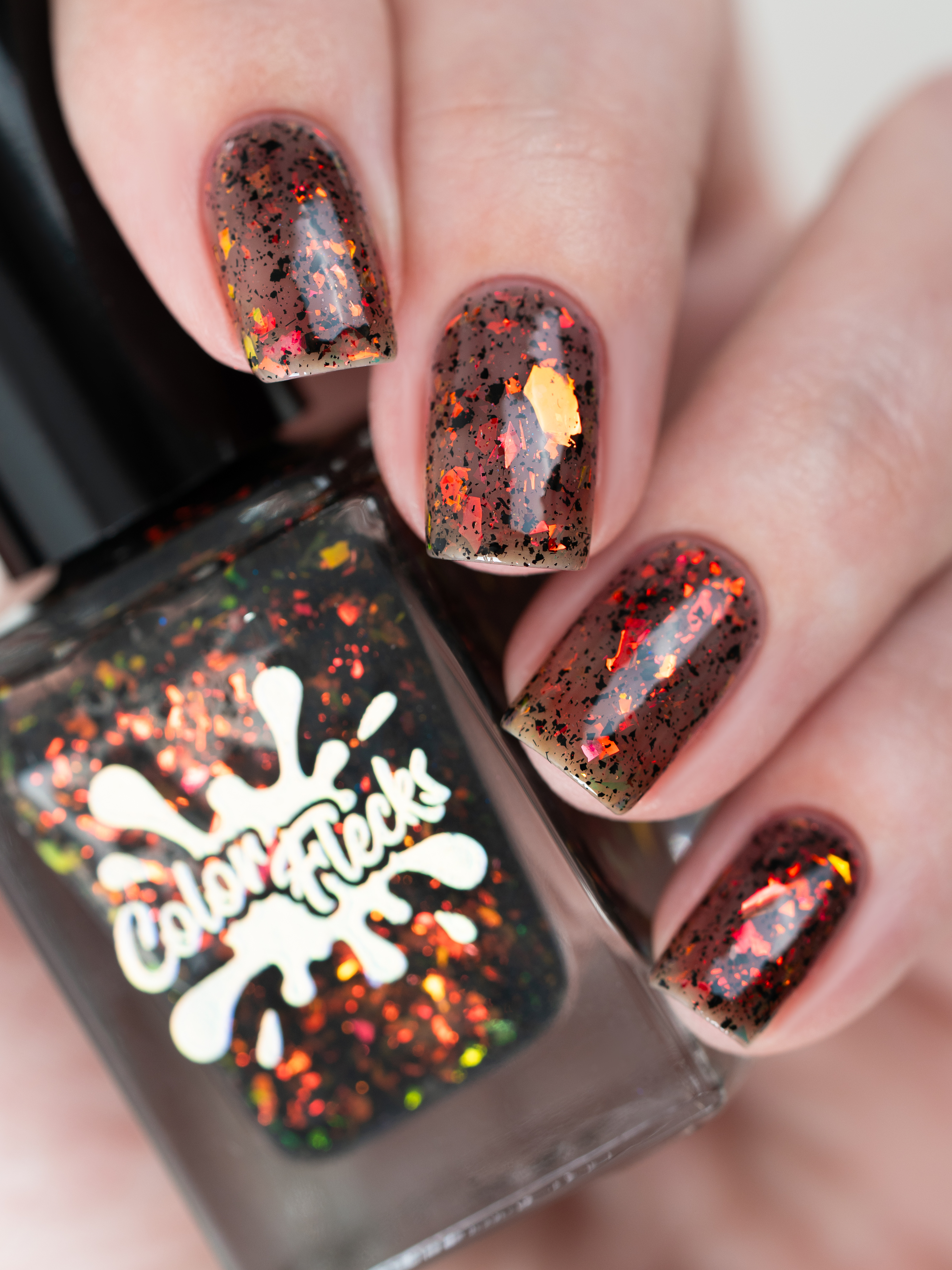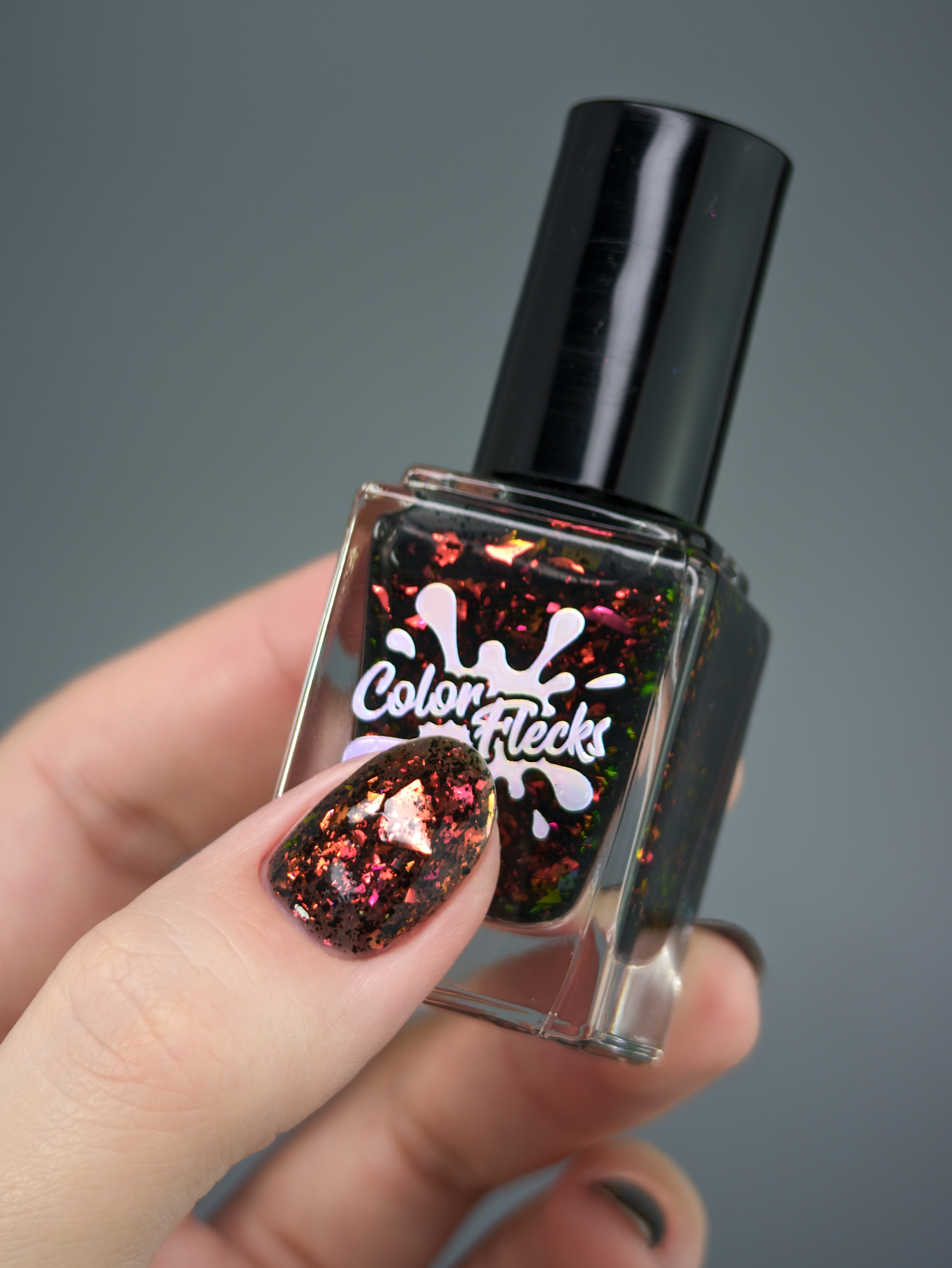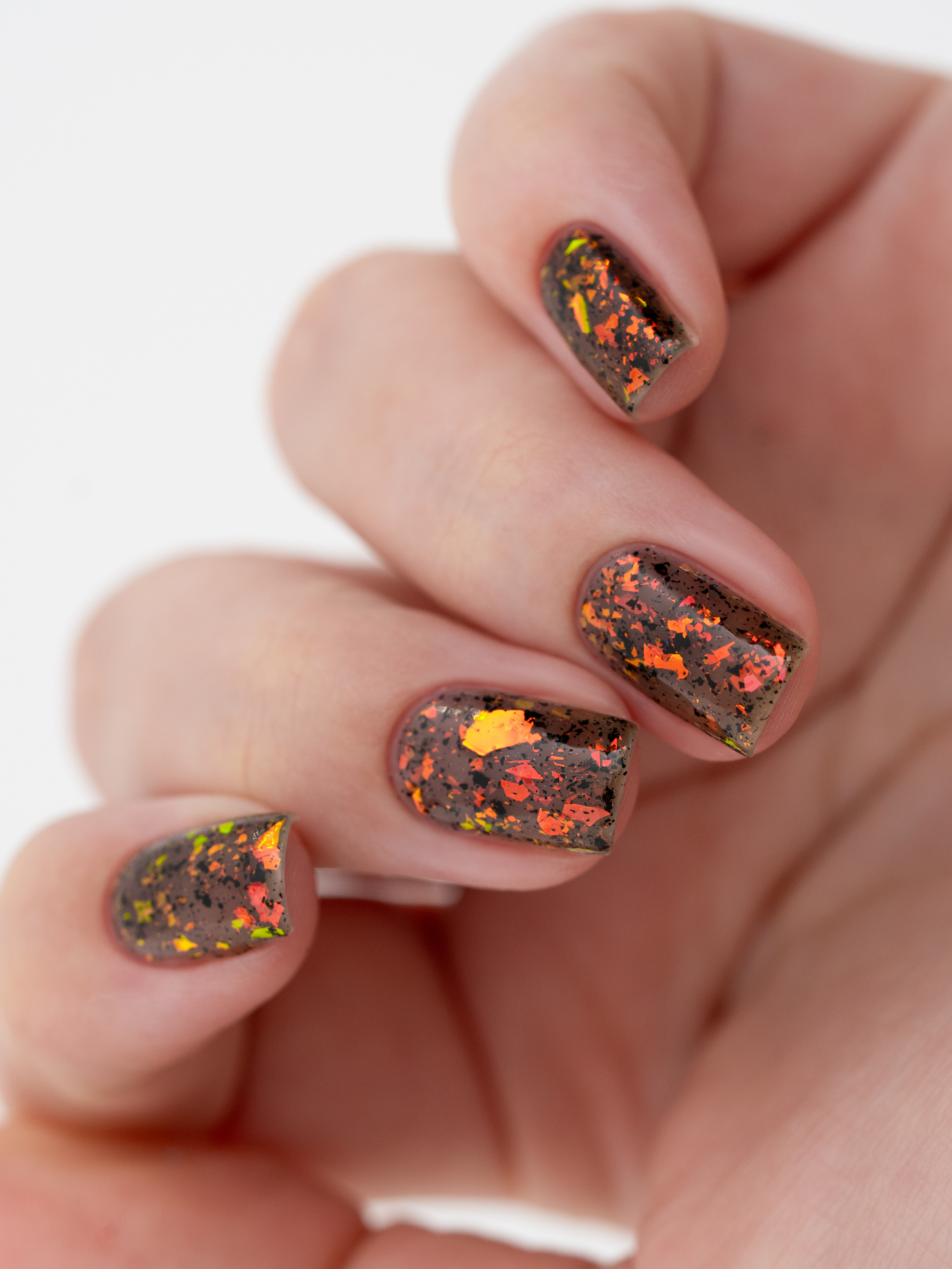 Красно-оранжево-салатовая и черная металлизированная слюда в неплотной черной базе.